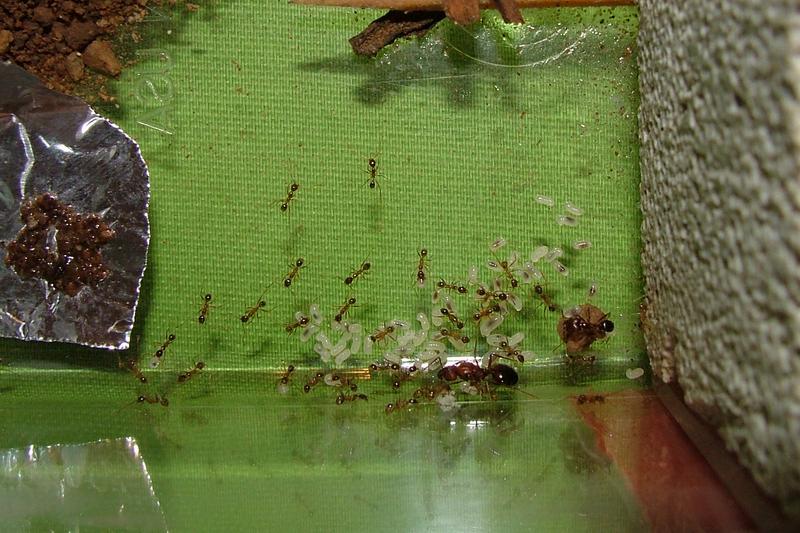 Nahrung wird sehr gut angenommen, Brut ist reichlich da und wird, wenn es wärmer wird, kurz unter die Erdoberfläche hochgetragen. Die Brut ist in allen Entwicklungsstadien.