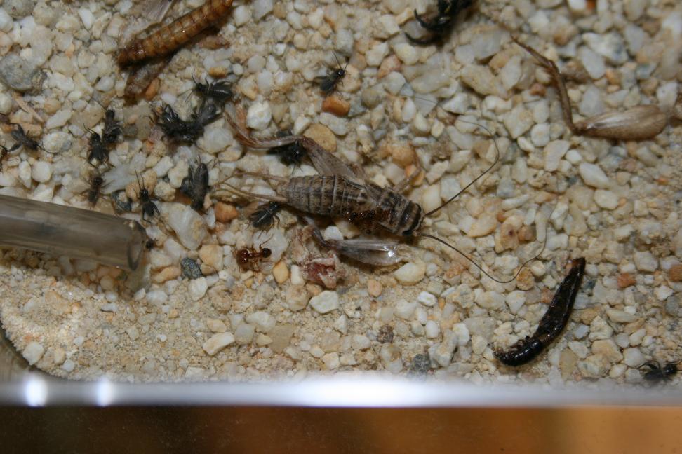 Auch bei anfangs wenig Soldaten werden diese sehr schnell zu Nahrungsaufnahme aus dem Nest geholt.
