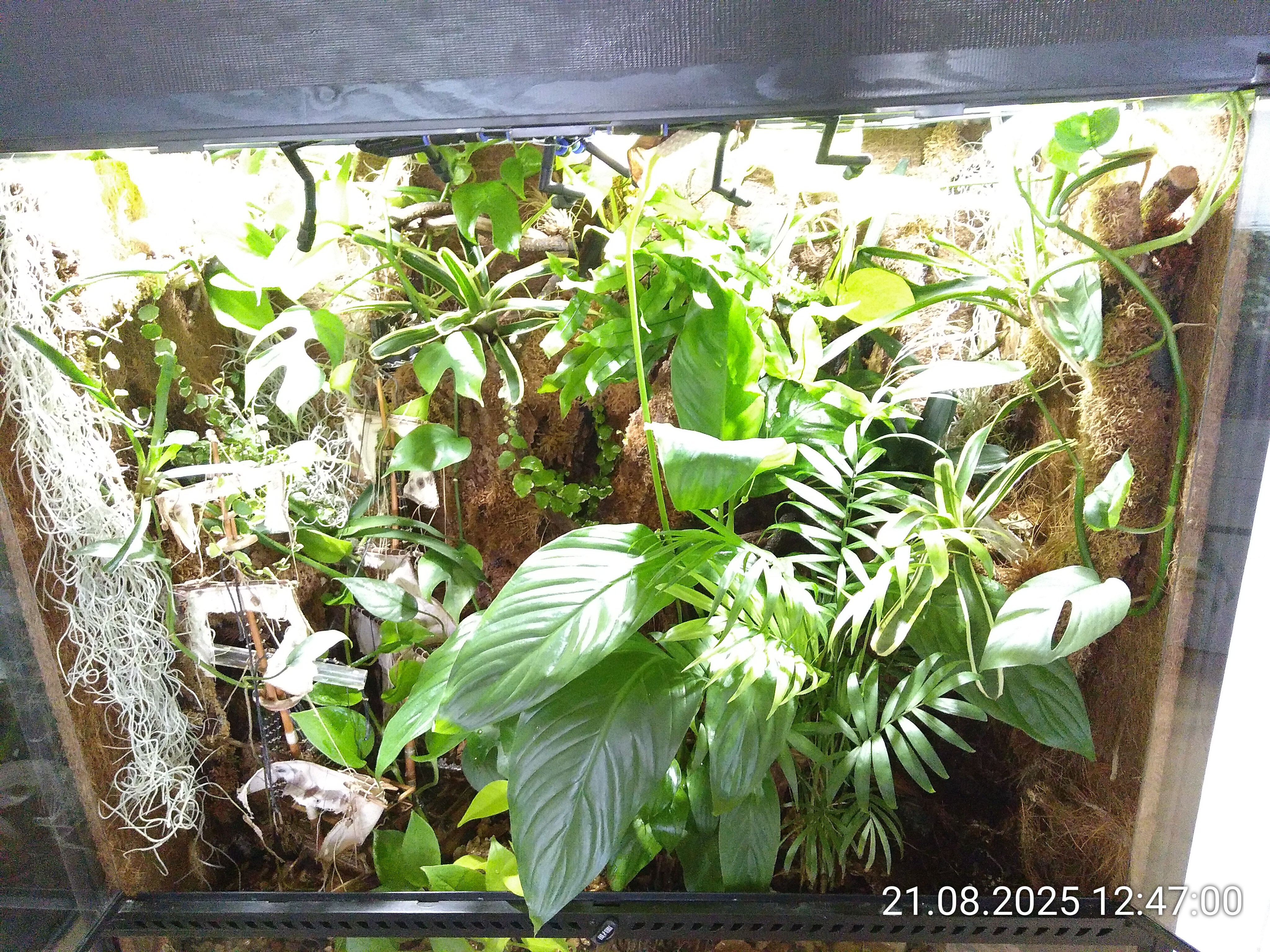 Echt krass im Vergleich zu heute und so schön. Wie ihr wisst, sind im laufe der Zeit viele Pflanzen eingegangen. Einige haben sich aber etabliert und kämpfen mittlerweile den Kampf ums Licht. Vor allem die Einblatt muss ich manchmal zurückschneiden. Ihre großen Blätter nehmen den anderen zu viel Licht weg. Ansonsten versuche ich, möglichst wenig einzugreifen. Das ist schließlich ein Urwald.