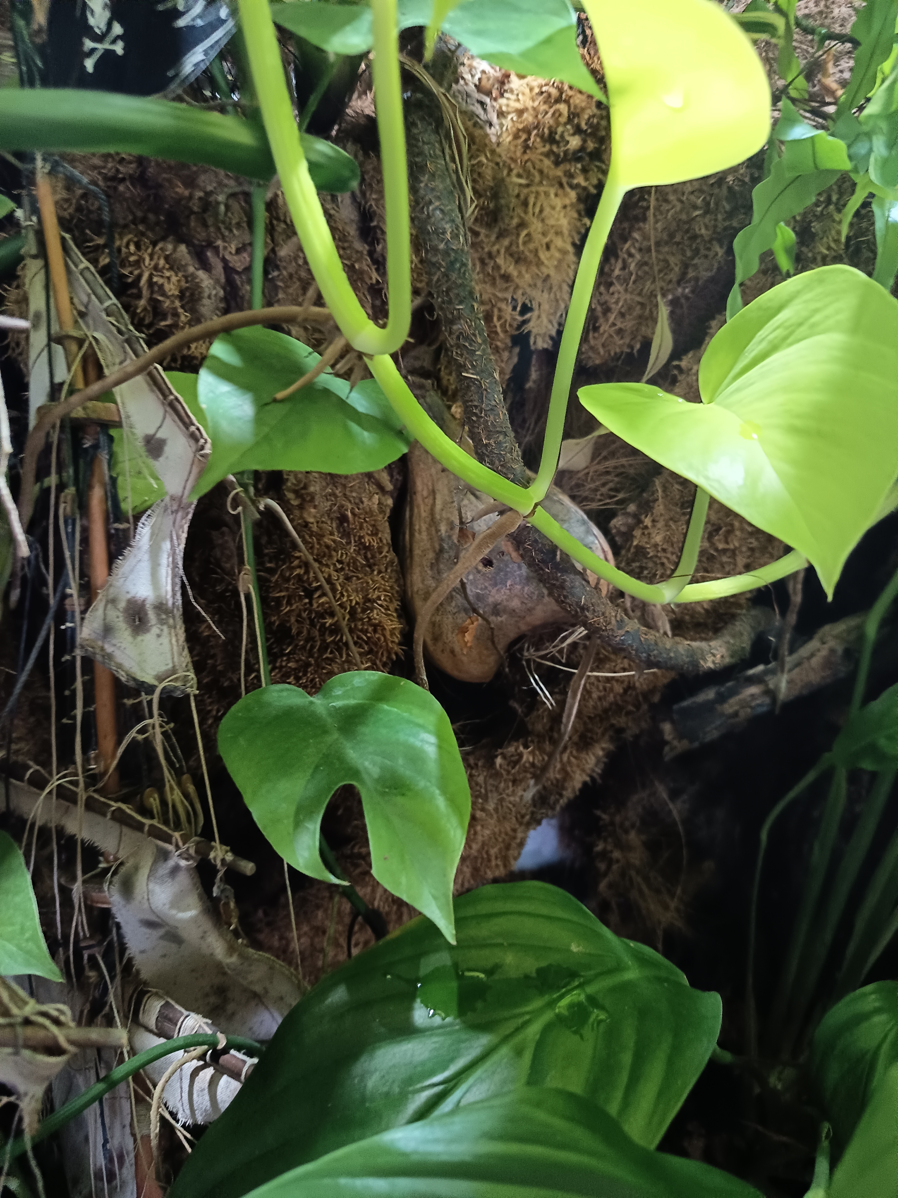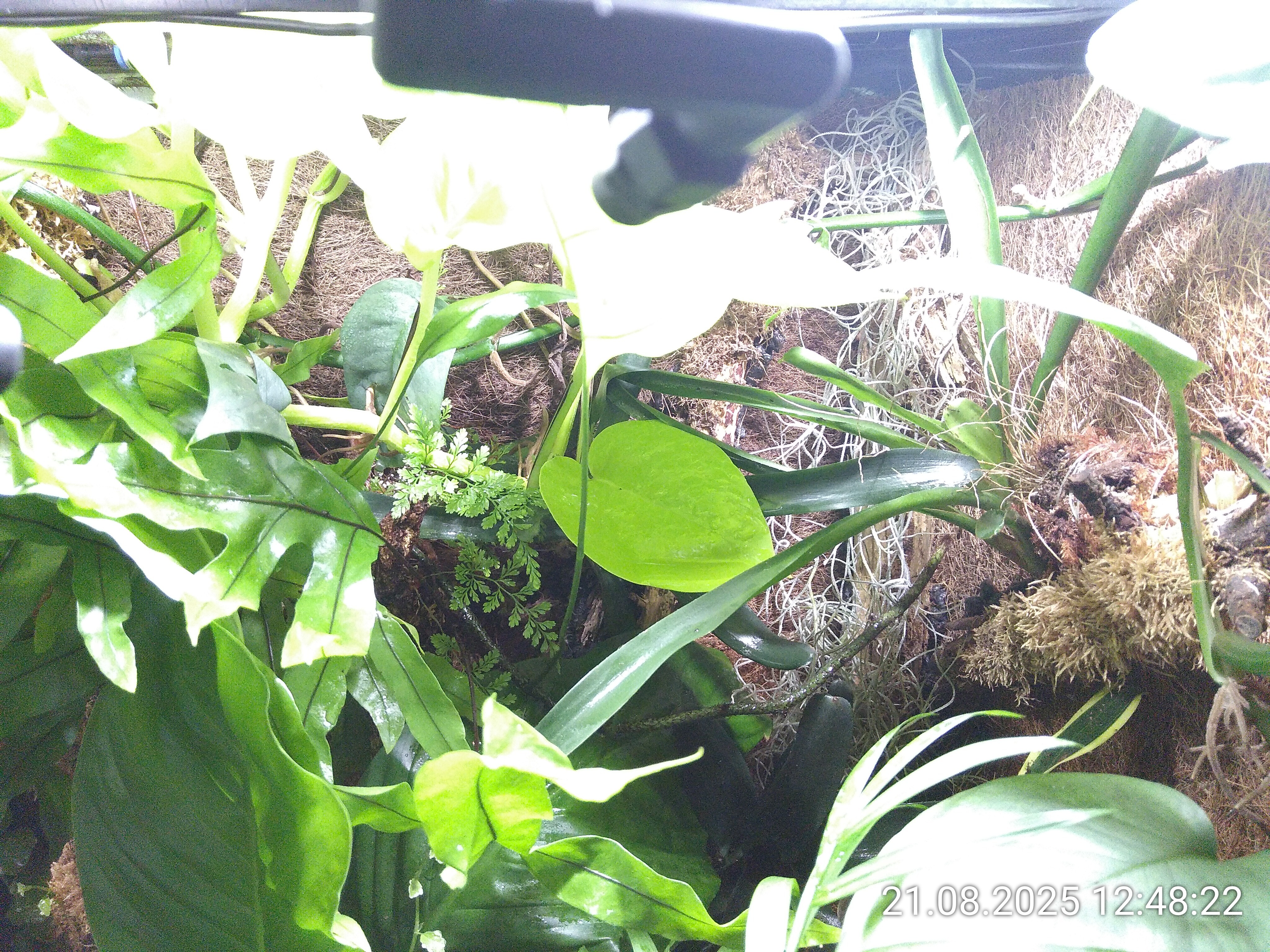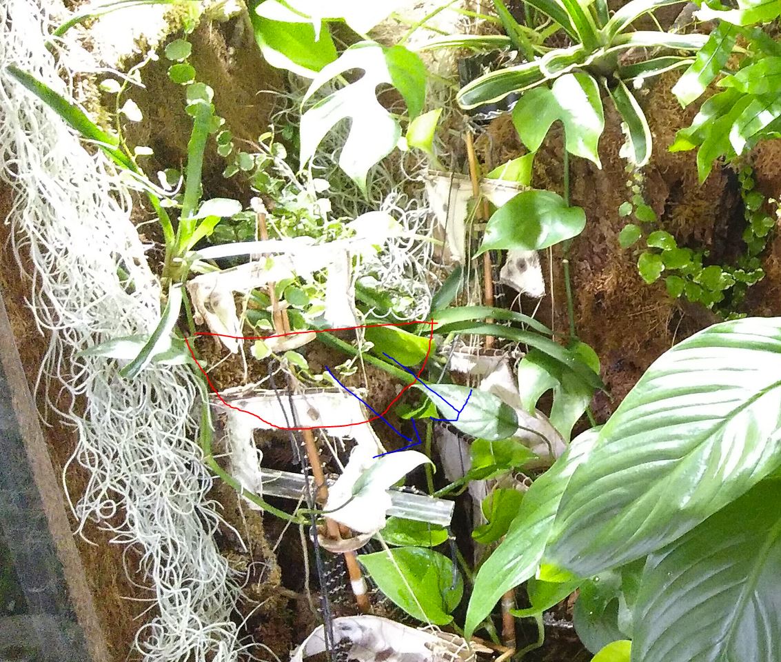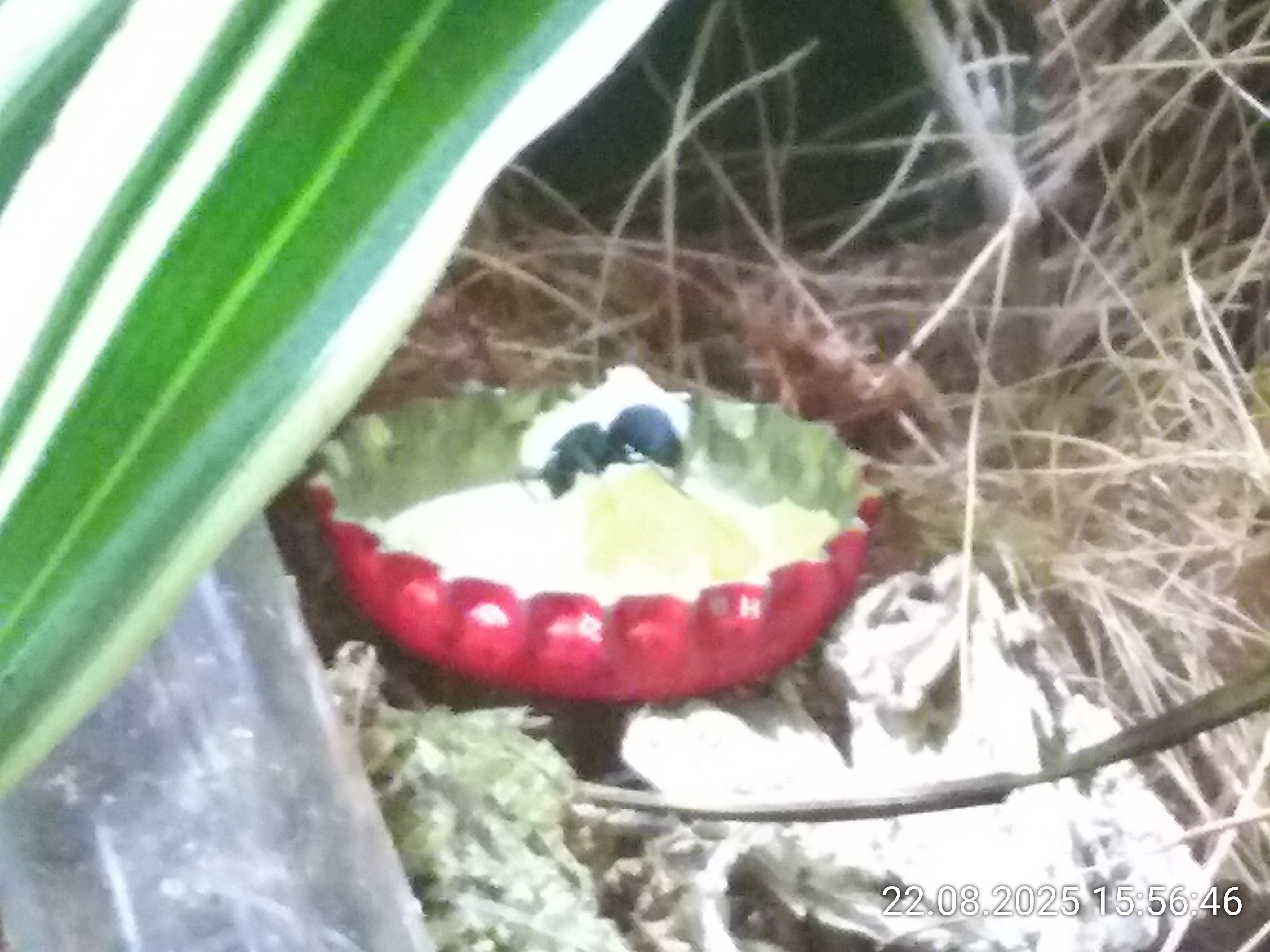 Das lief bisher richtig gut. Ich konnte auch schon mehrmals beobachten, dass sie sich Baumaterial ins Nest geholt haben. Erdklumpen und kleine Perlite(?)-Kugeln aus Blumenerde. DIe Wasserversorgung ist auch gelöst. Ich habe schon eine aus einer Bromelie trinken sehen. Ein schönes Bild :)