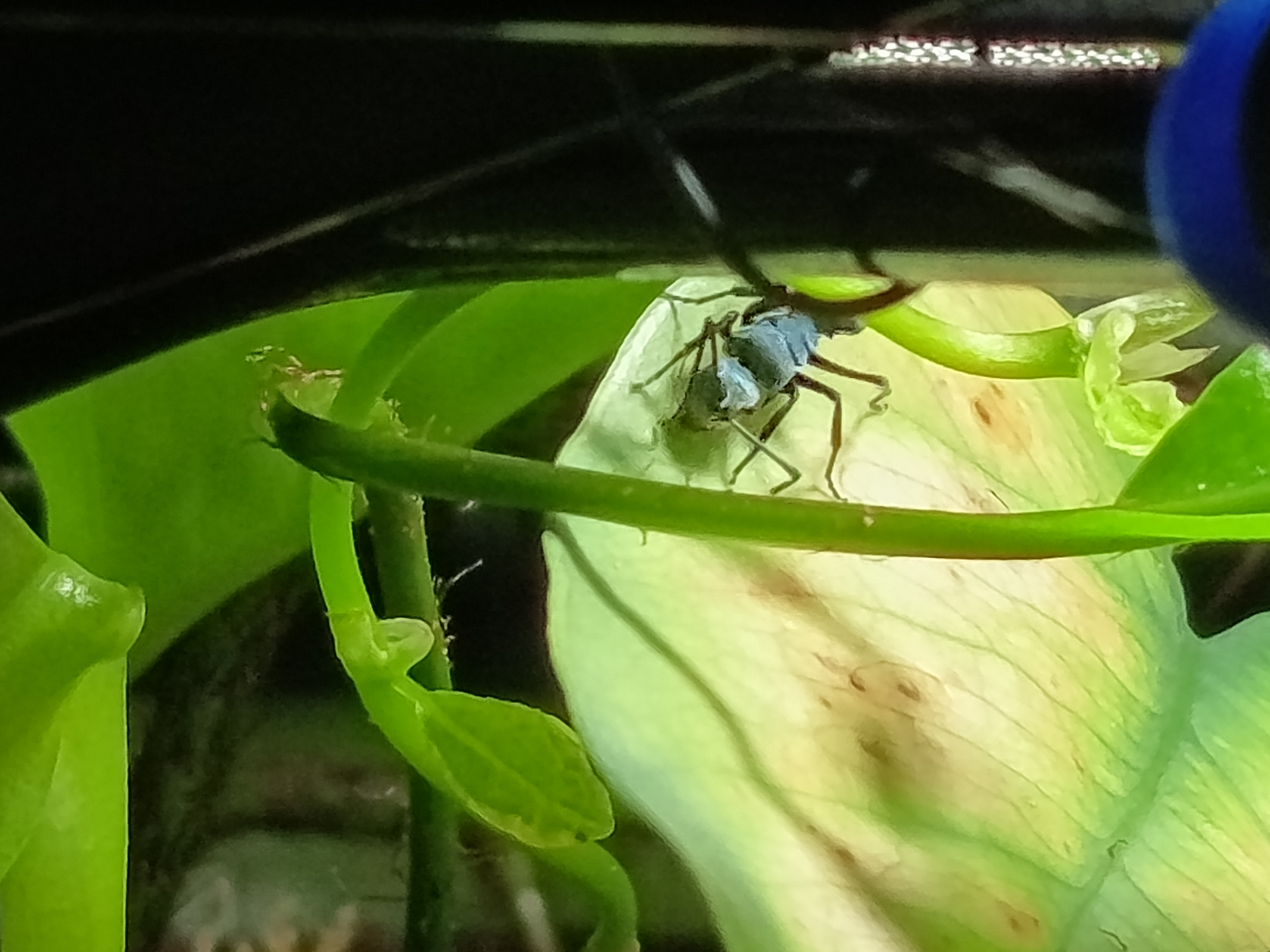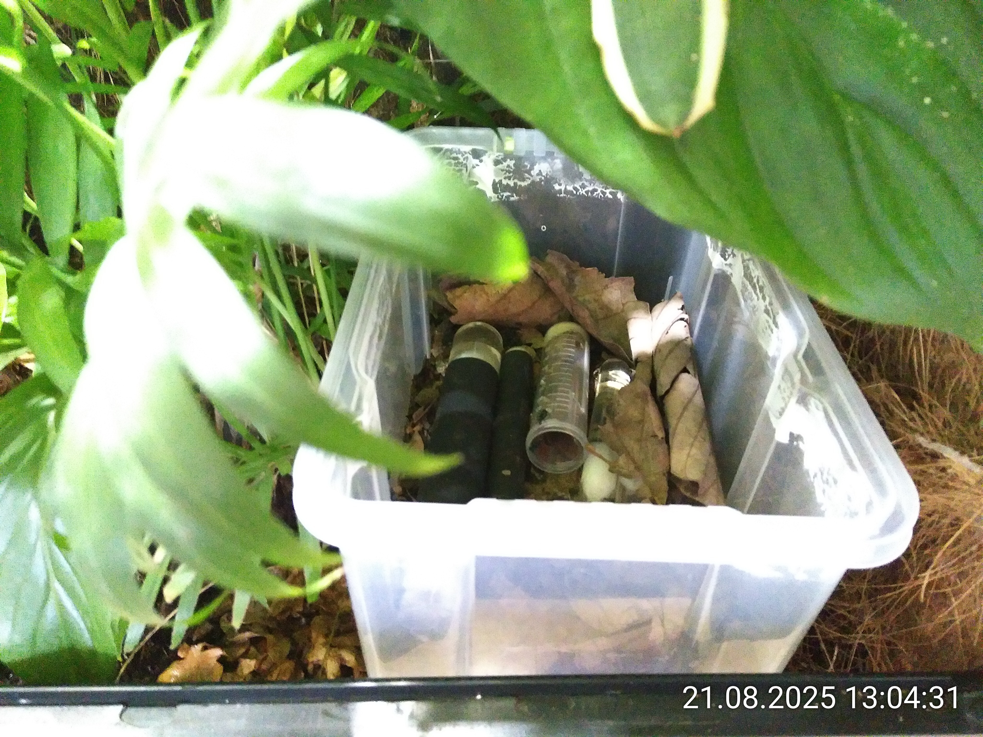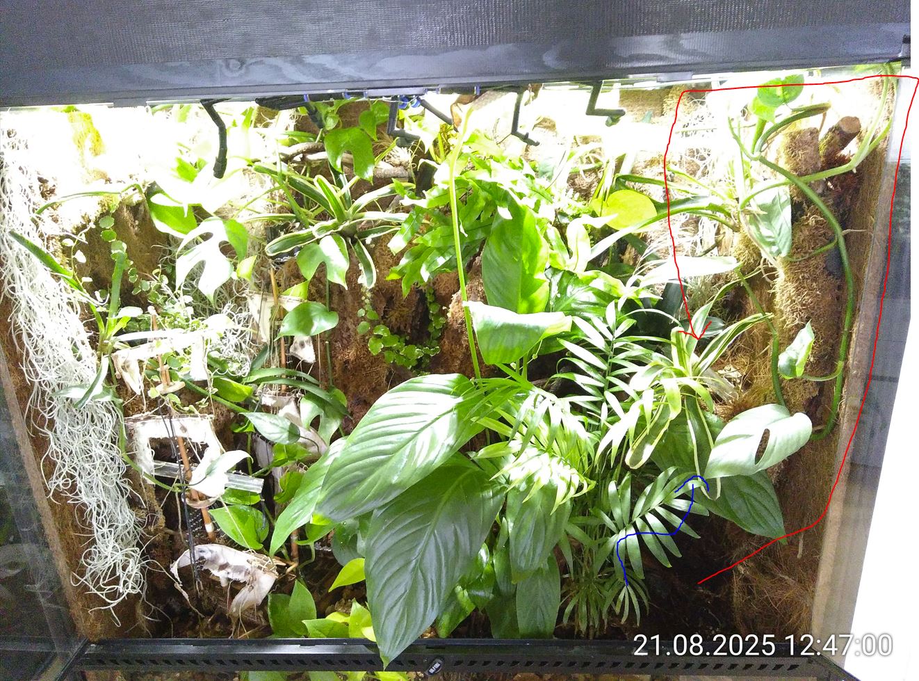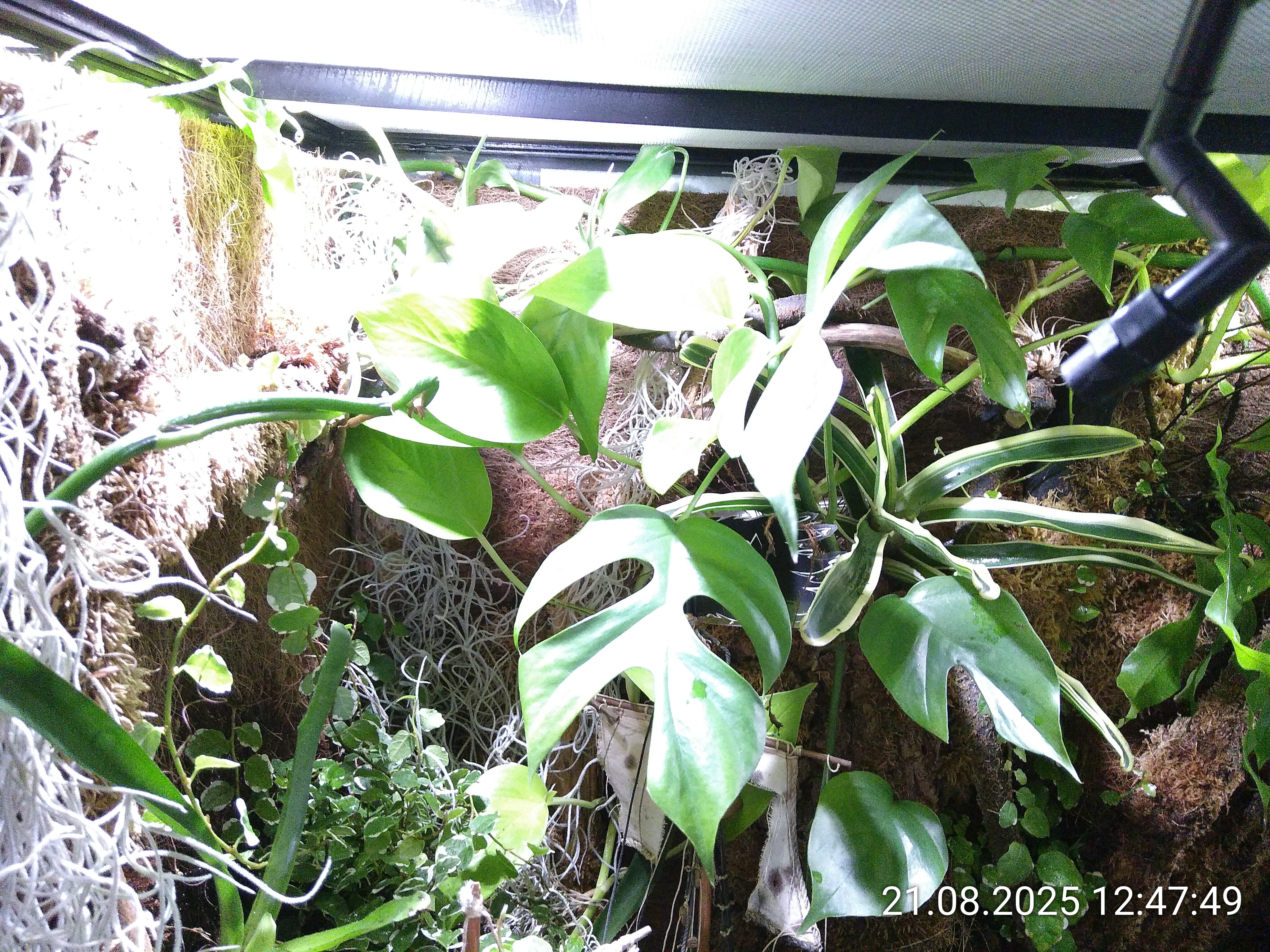 Das lief bisher richtig gut. Ich konnte auch schon mehrmals beobachten, dass sie sich Baumaterial ins Nest geholt haben. Erdklumpen und kleine Perlite(?)-Kugeln aus Blumenerde. DIe Wasserversorgung ist auch gelöst. Ich habe schon eine aus einer Bromelie trinken sehen. Ein schönes Bild :)