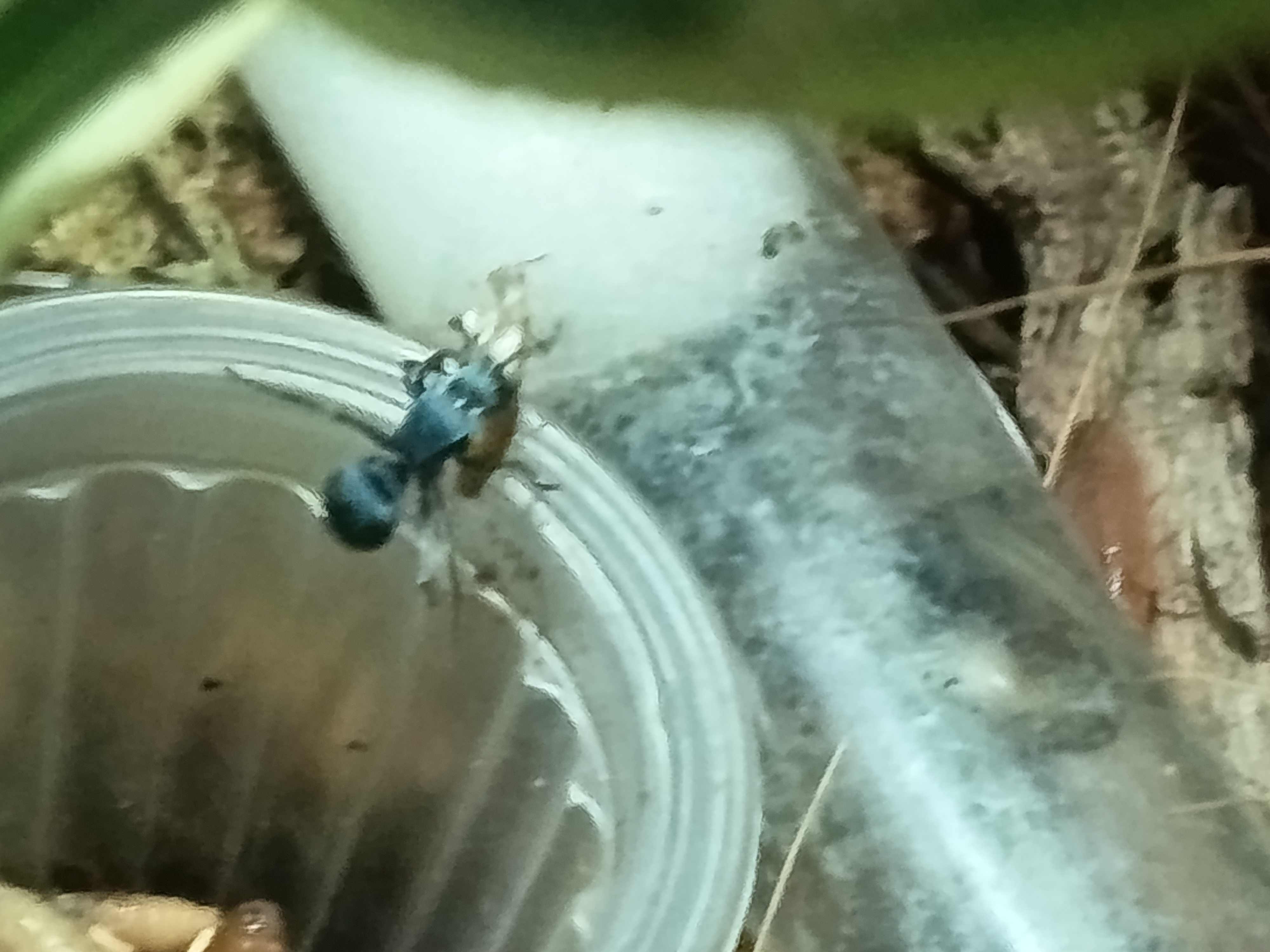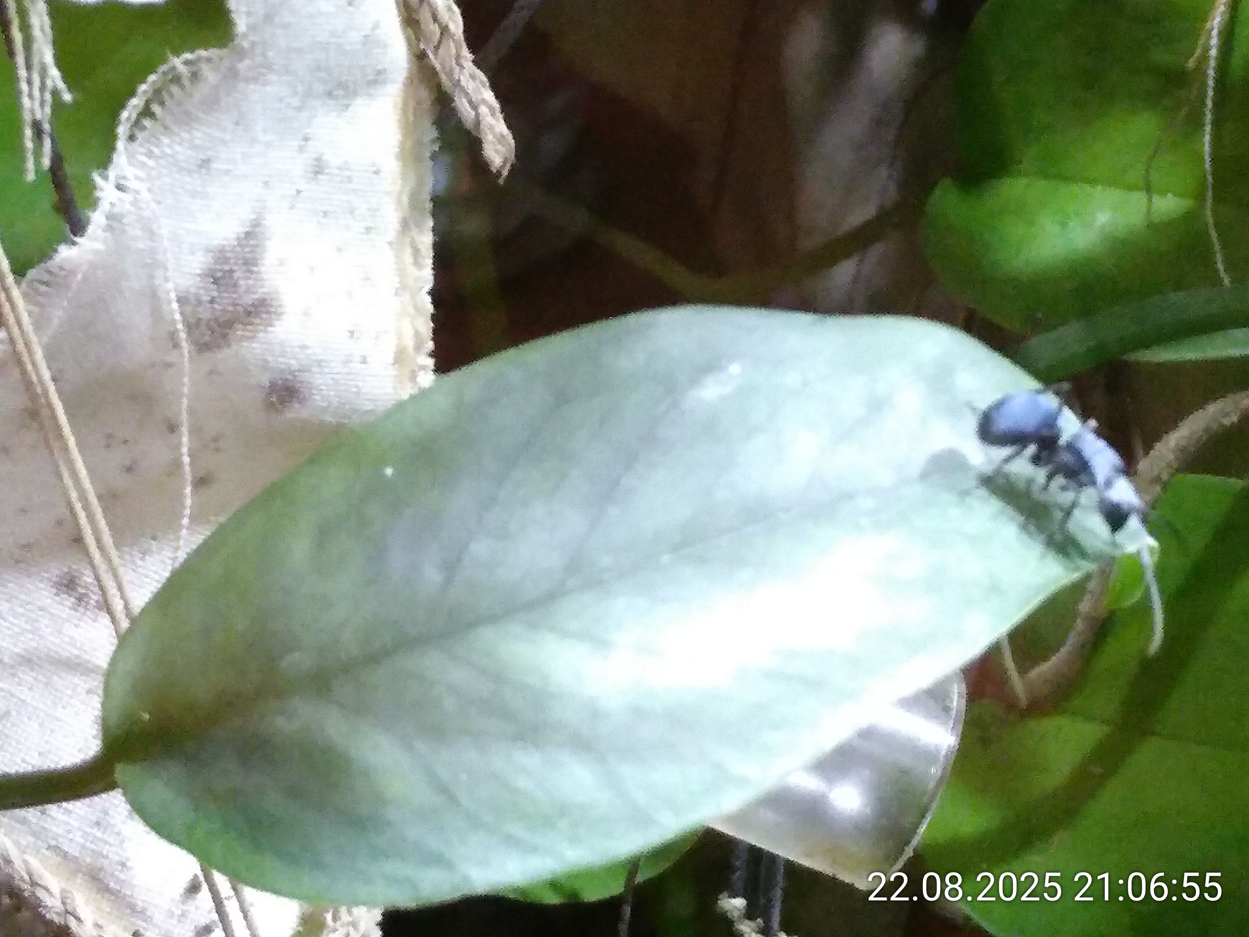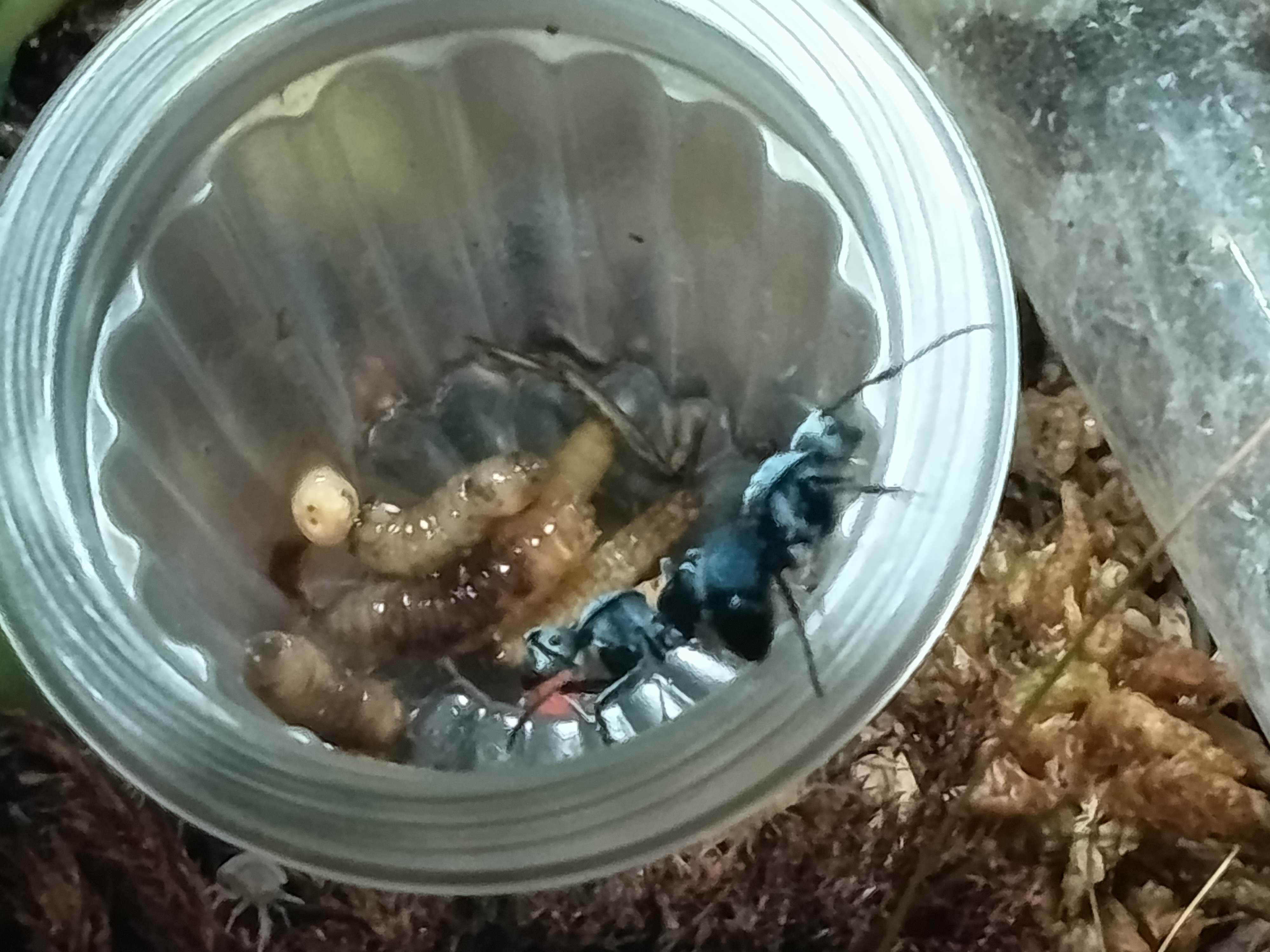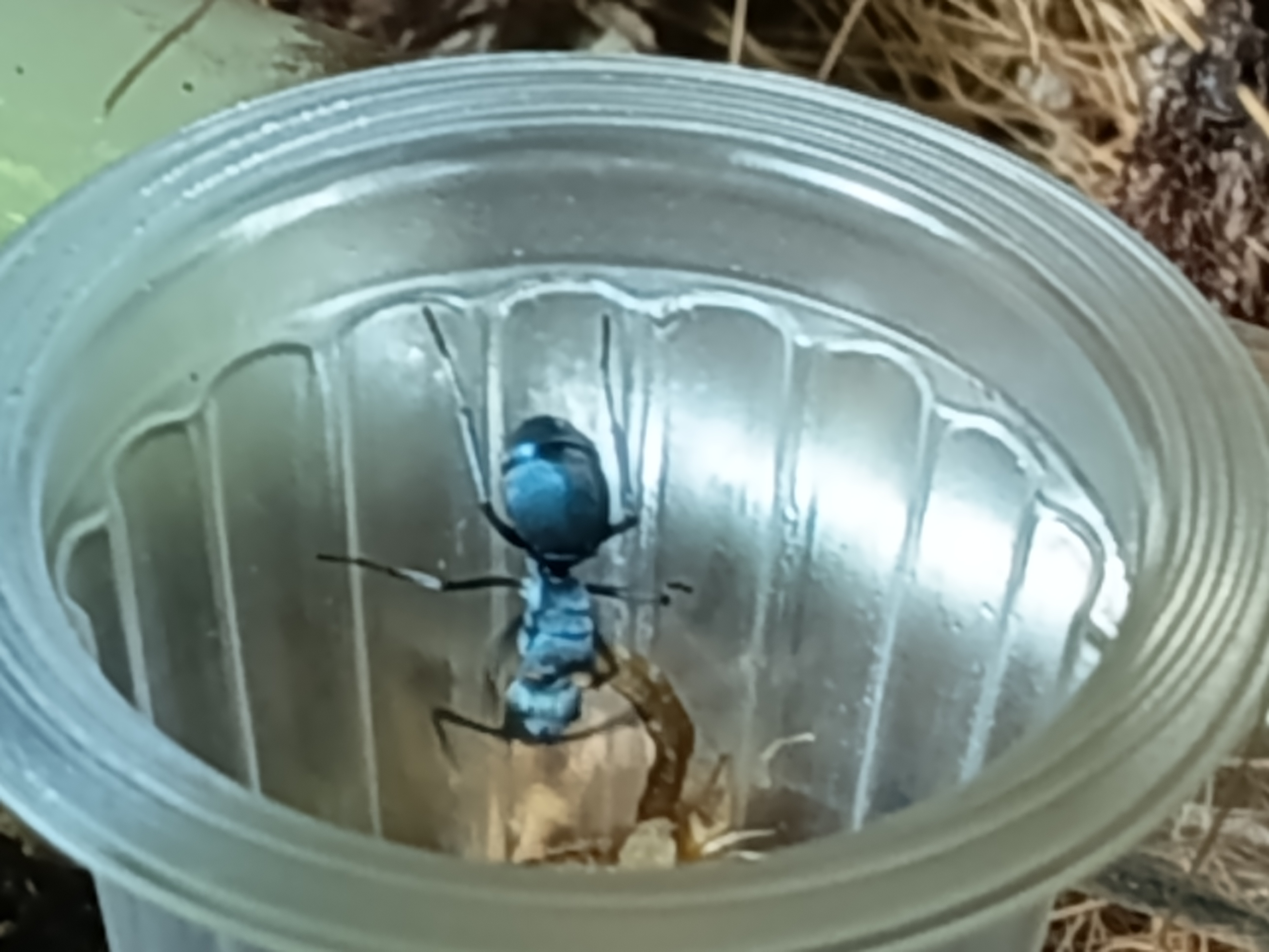 Kurze Exkursion: Von dieser Art ist bisher wenig bekannt. Ich begebe mich also auch auf wissenschaftliches Neuland. Übrigens zusammen mit Ants Canada, der seit einer Woche auch "legendary blue ants" hat. Er hat wohl die erste "Entdeckung" gemacht. Sie nisten bei ihm in einer Höhle im Holz.