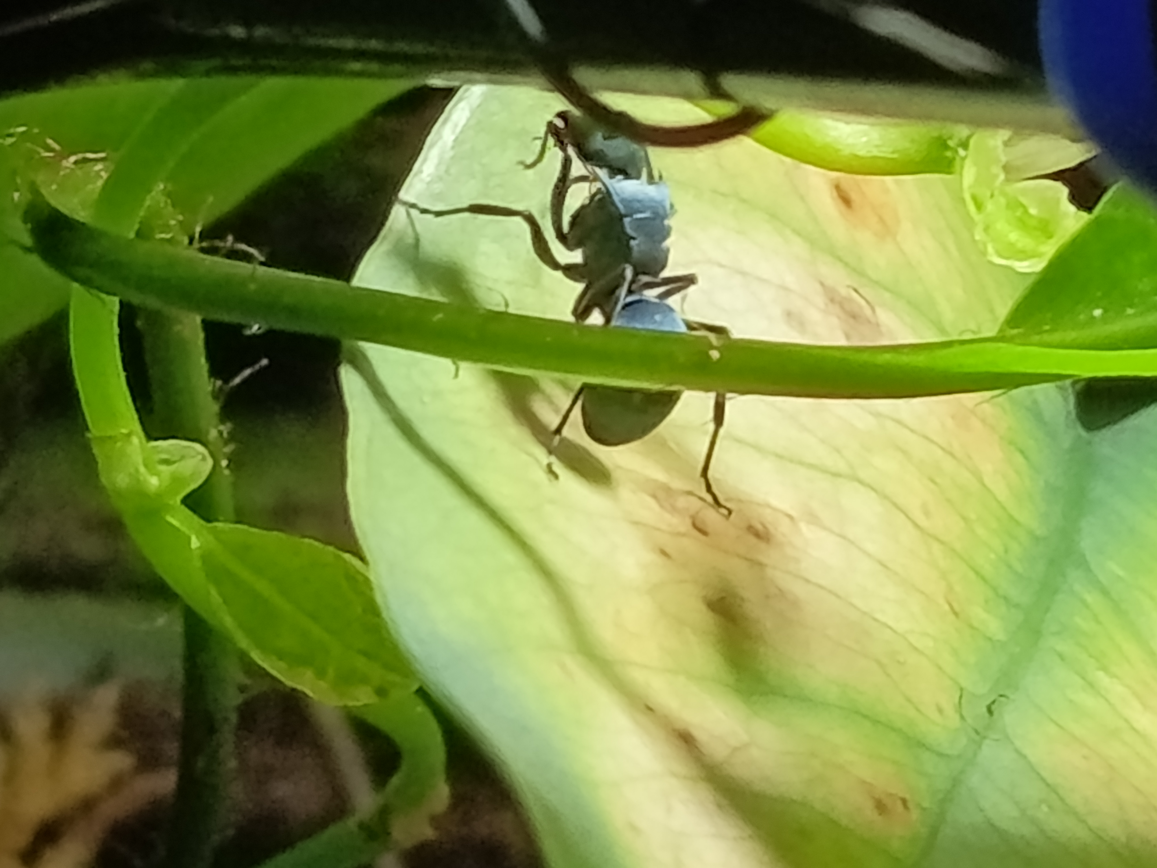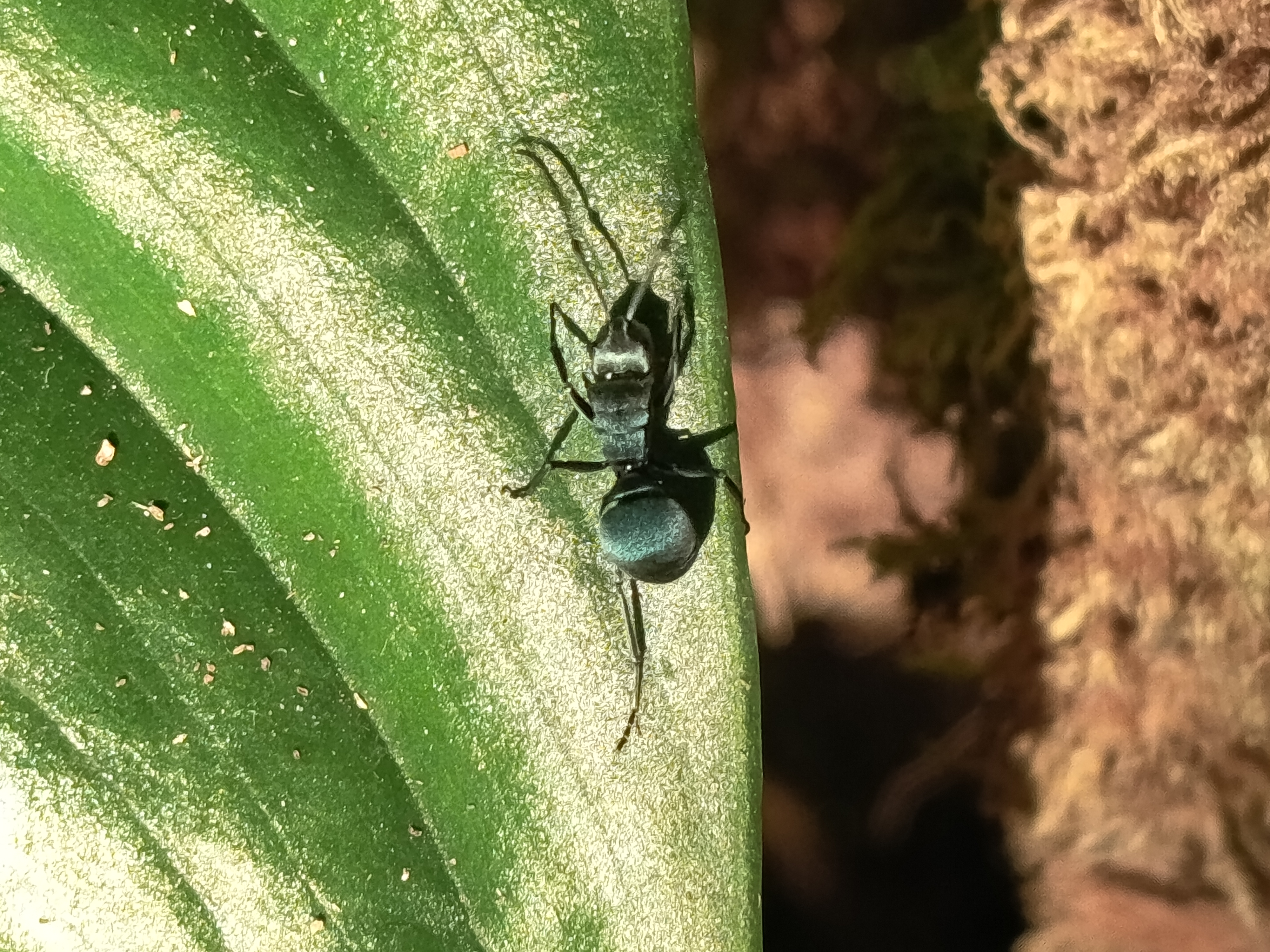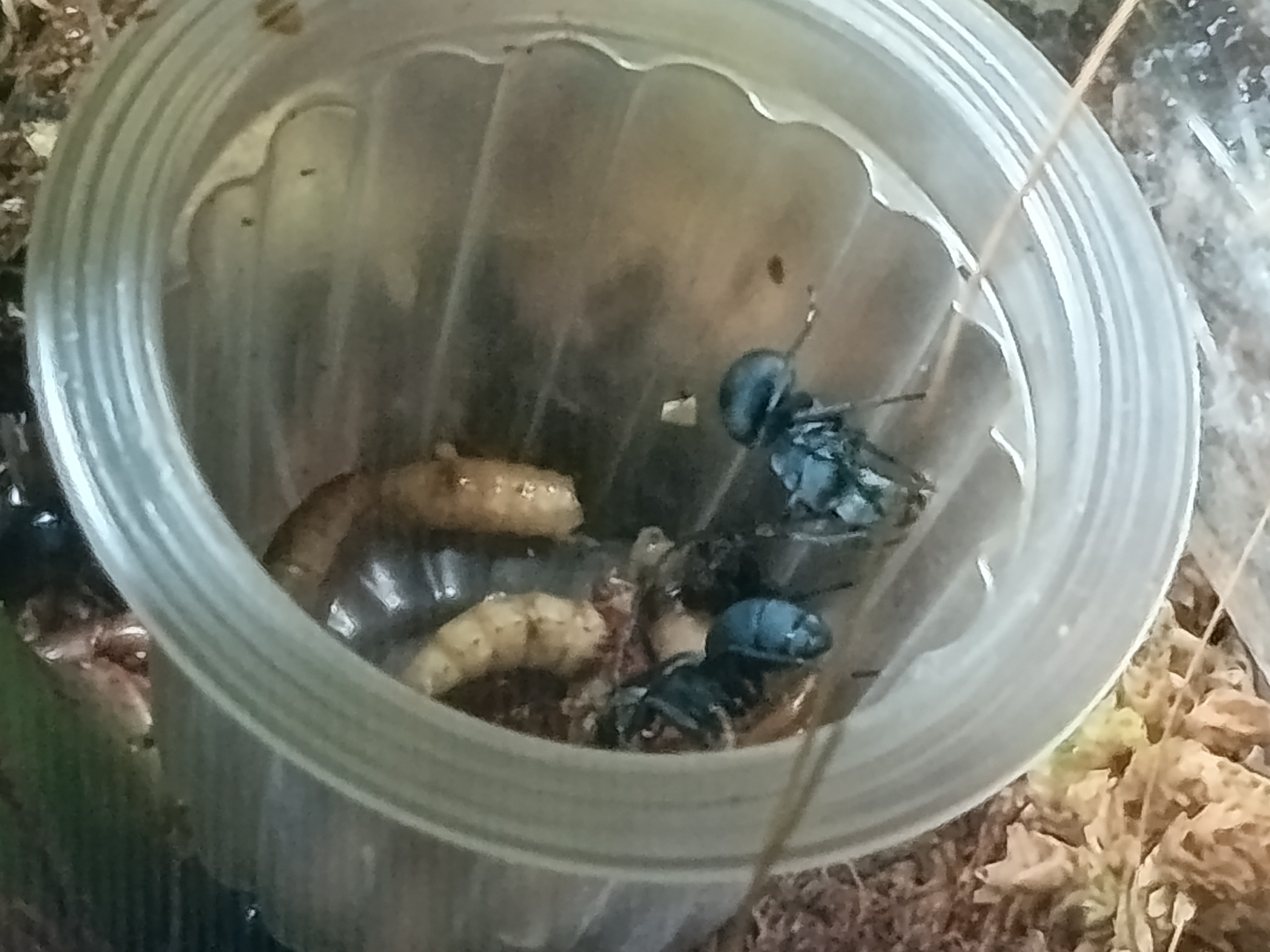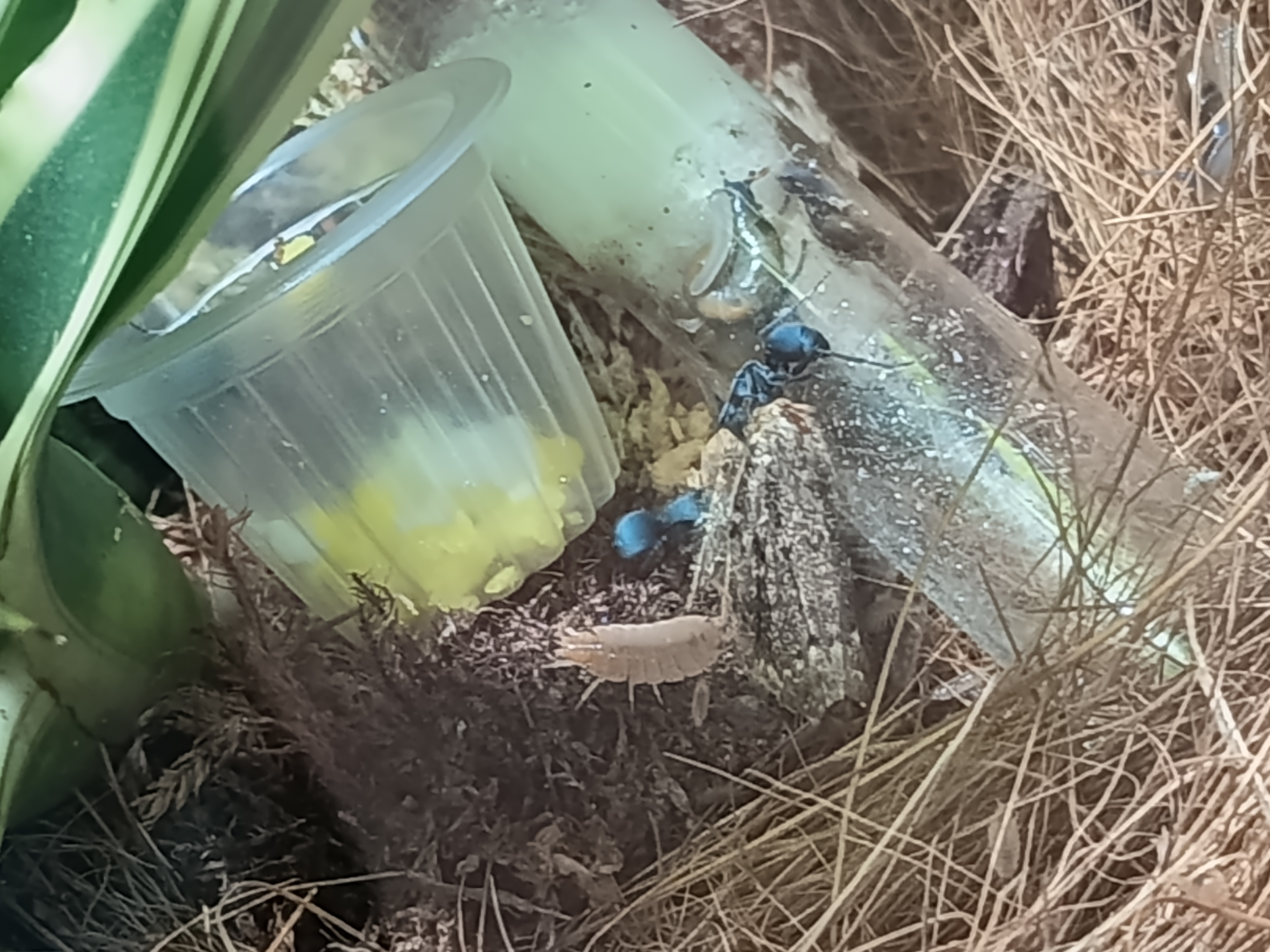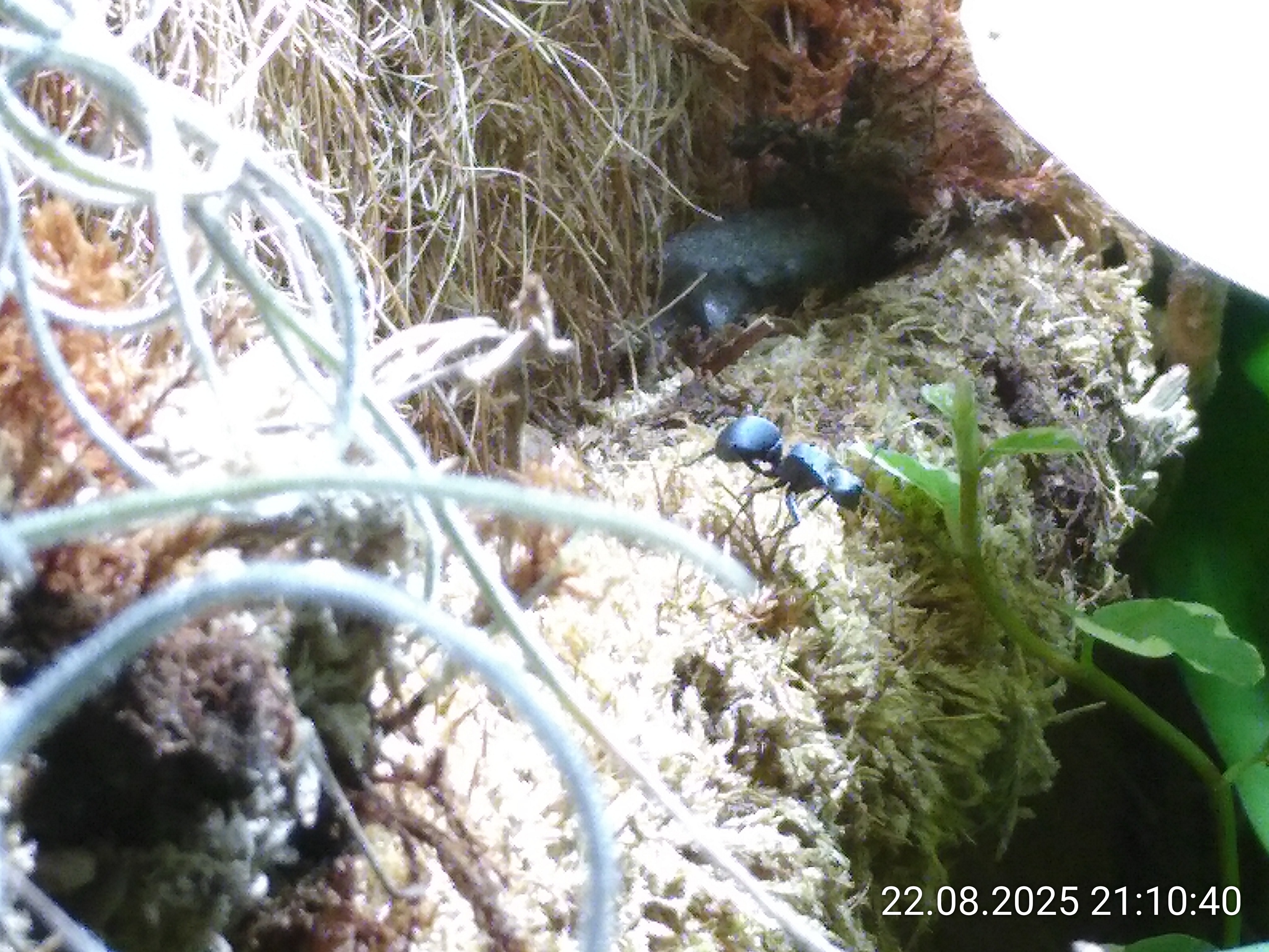 Kurze Exkursion: Von dieser Art ist bisher wenig bekannt. Ich begebe mich also auch auf wissenschaftliches Neuland. Übrigens zusammen mit Ants Canada, der seit einer Woche auch "legendary blue ants" hat. Er hat wohl die erste "Entdeckung" gemacht. Sie nisten bei ihm in einer Höhle im Holz.