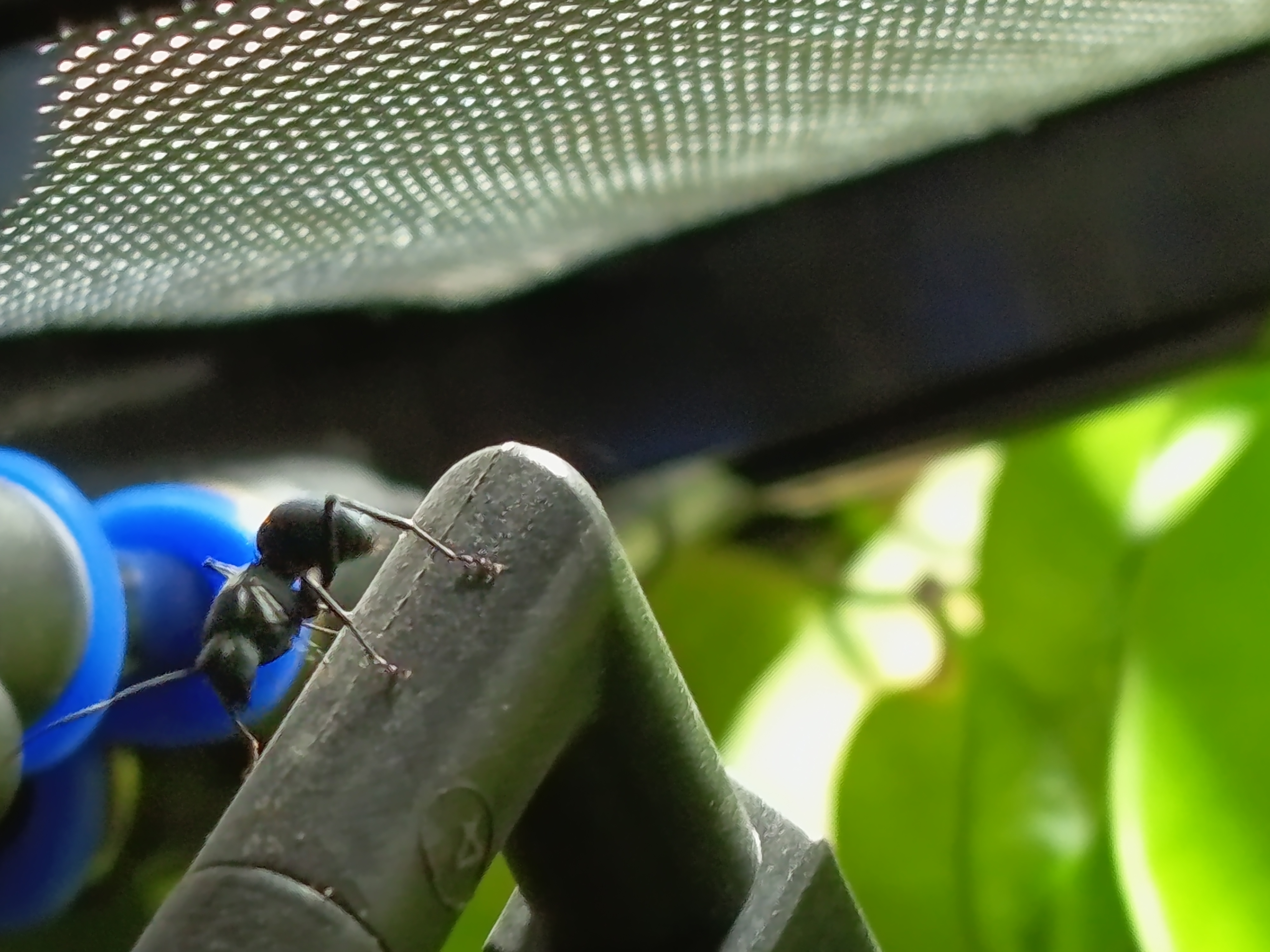 Es fing alles mit einer Bewegung an, die ich am linken Rand auf mittlerer Höhe zwischen Seitenwand und Frontscheibe gesehen habe. Zwei Ameisen.