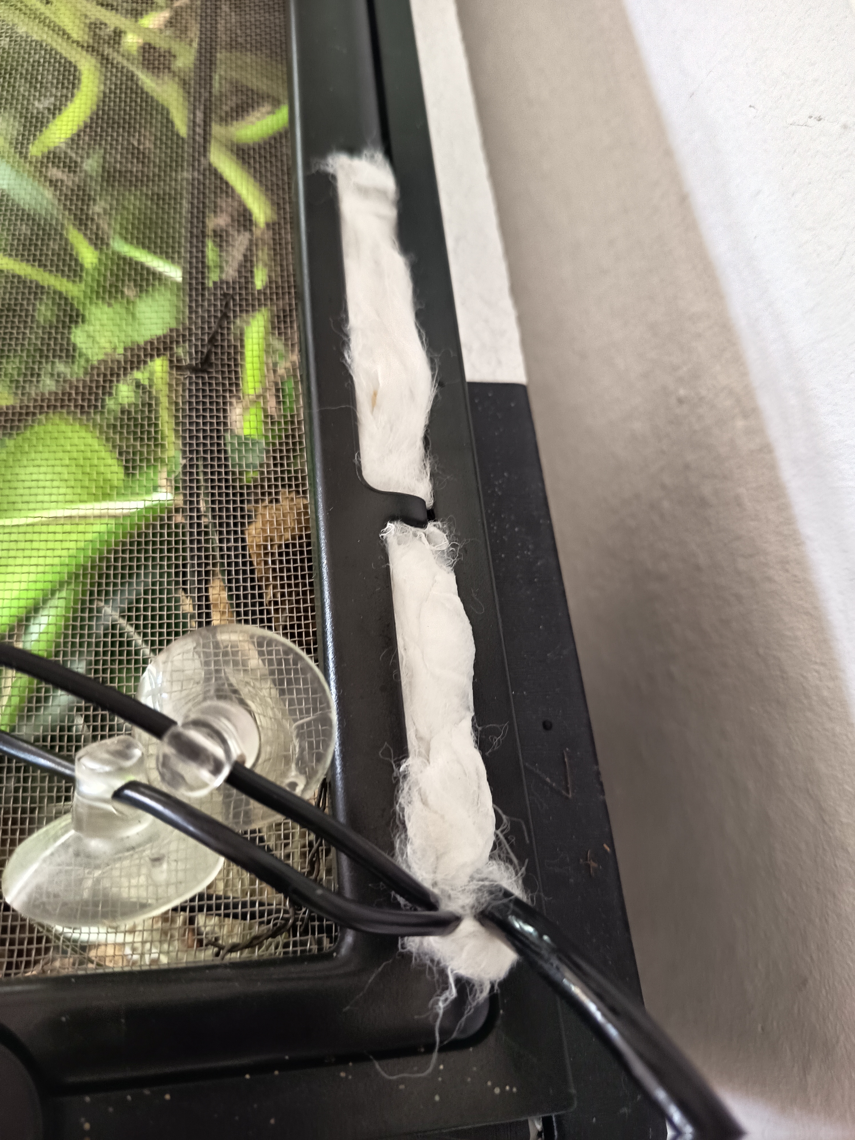 Ich warte jetzt noch ein paar Tage und nehme dann das Tesafilm von den Lüftungsschlitzen. Die haben ja schließlich auch ihre Daseinsberechtigung. Ich erwarte dann aber keine Ausbrecher mehr. Auch wegen einer anderen Beobachtung bin ich mir sicher, dass die Kabeldurchführung das Problem war. Montag habe ich sie außergewöhnlich oft und viel am Gitterdeckel rumlaufen sehen. Sie haben offensichtlich eine andere Geheimtür gesucht, nachdem die erste blockiert war.