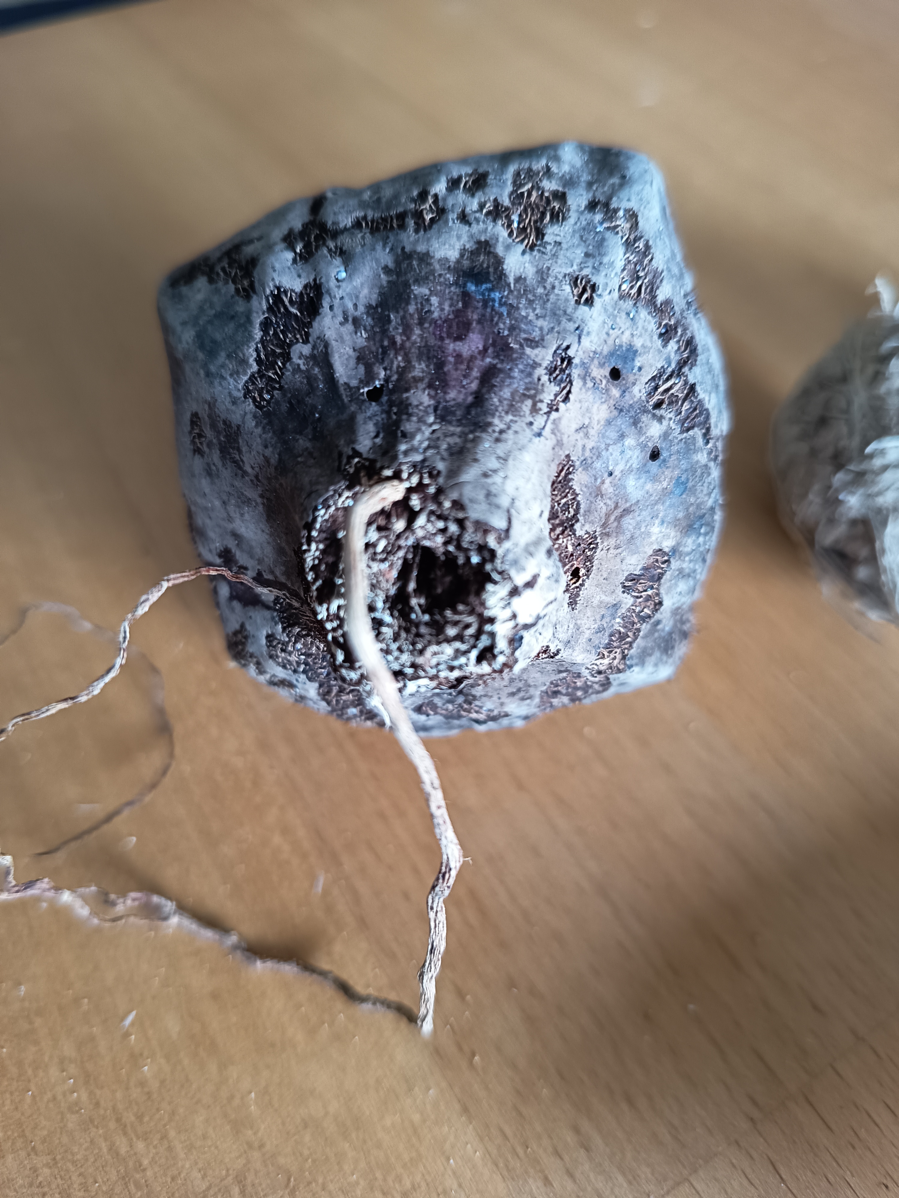 Auch hier ist innern ein Wattestopfen vorhanden, aber vermutlich sind sie hier zwischen den Kabeln raus. Anders kann ich es mir nicht erklären.