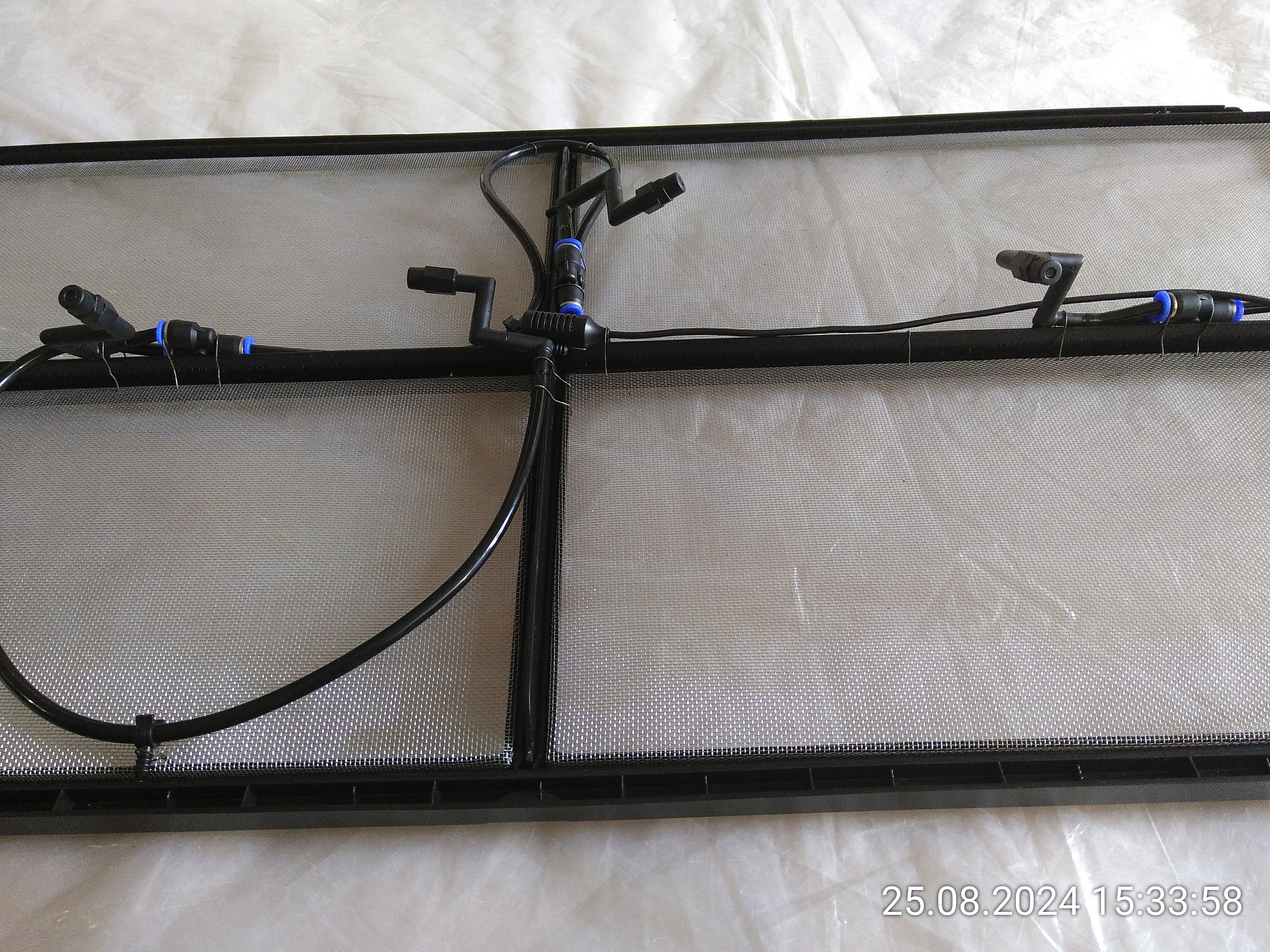 Ich habe die Aufgabe der Neuausrichtung der Düsen heute vor mir hergeschoben, bis es zu spät war. Vielleicht mache ich es morgen. Aber es ist absehbar, dass ich noch zwei Düsen nachkaufe. Und selbst mit sechs dürfte es schwierig werden, aber das muss reichen. Oder ich schaue mal, ob es welche mit einem größeren Sprühwinkel gibt.