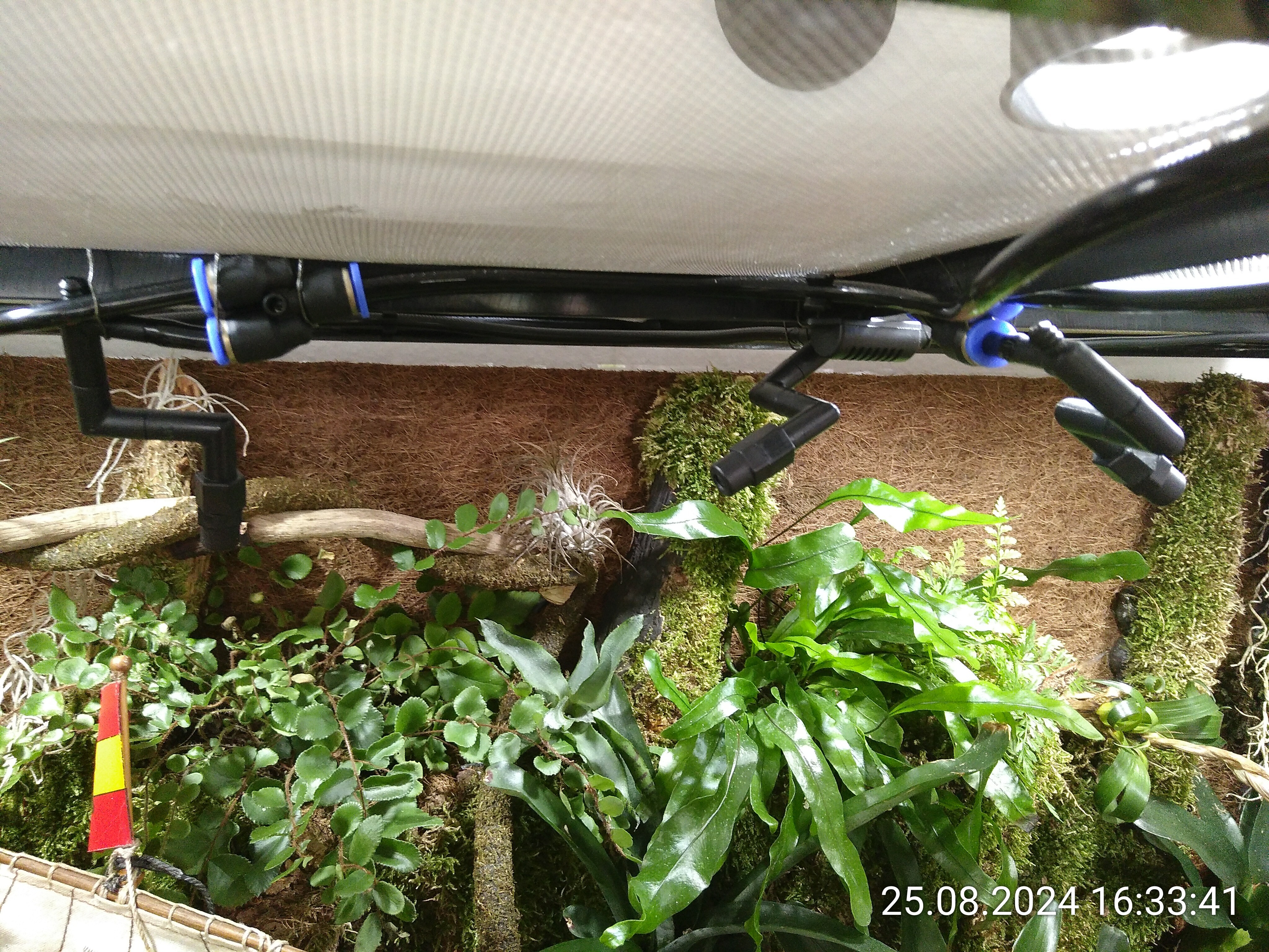 Dann habe ich zwei Düsen für die Regenanlage die links und rechts zerstäuben, das reicht vollkommen.