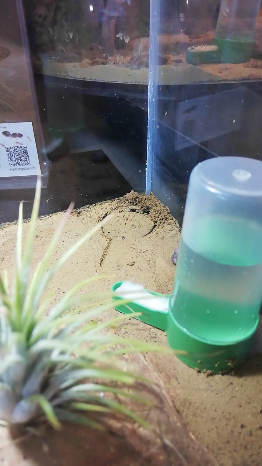 Wie dem auch sei, gestern konnte ich sehen wie eine fröhlich an der Scheibe lief und auch kopfĂŒber am Deckel. Da diese Art ja so Probleme haben soll an Glas zu laufen, verzichtete ich auf eine Parafinschicht unten am Glasrand. Diese wurde gestern aber nachgeholt.