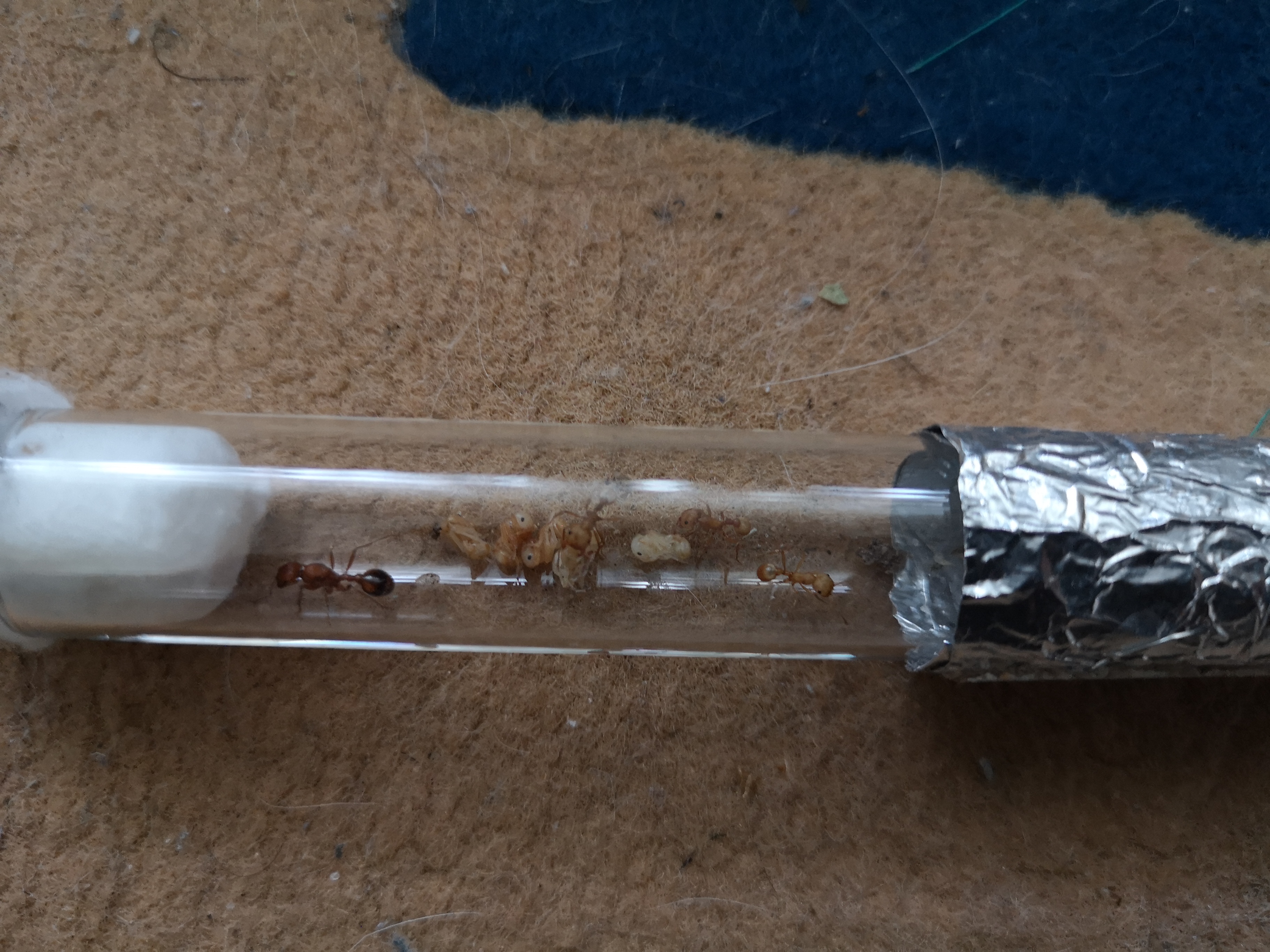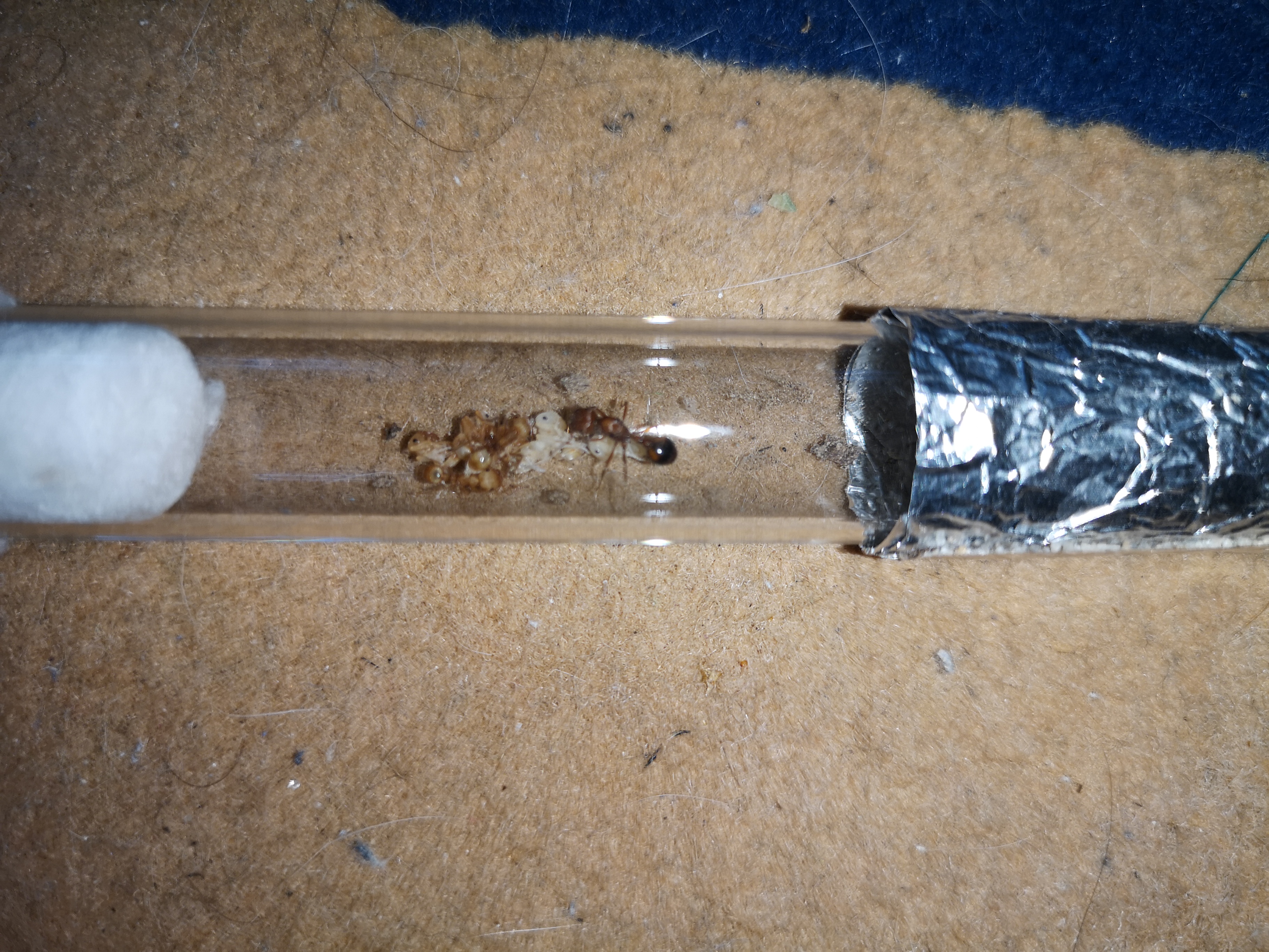 Ich kann in 1-2 Monaten sagen ob es tatsächlich ein Erfolg war. Die Frage ist halt: wie gut werden sich die adoptierten Arbeiterinnen um die Puppen der Pogonomyrmex californicus bicolor kümmern.