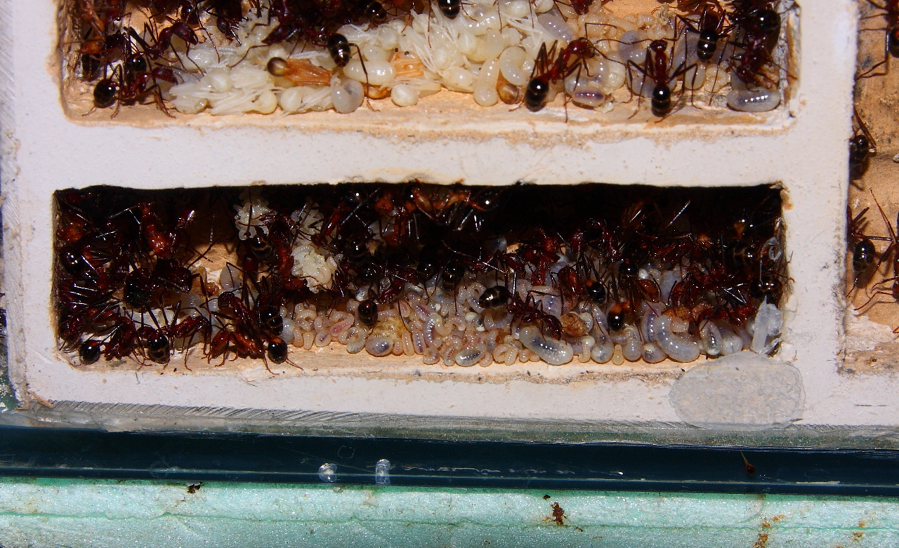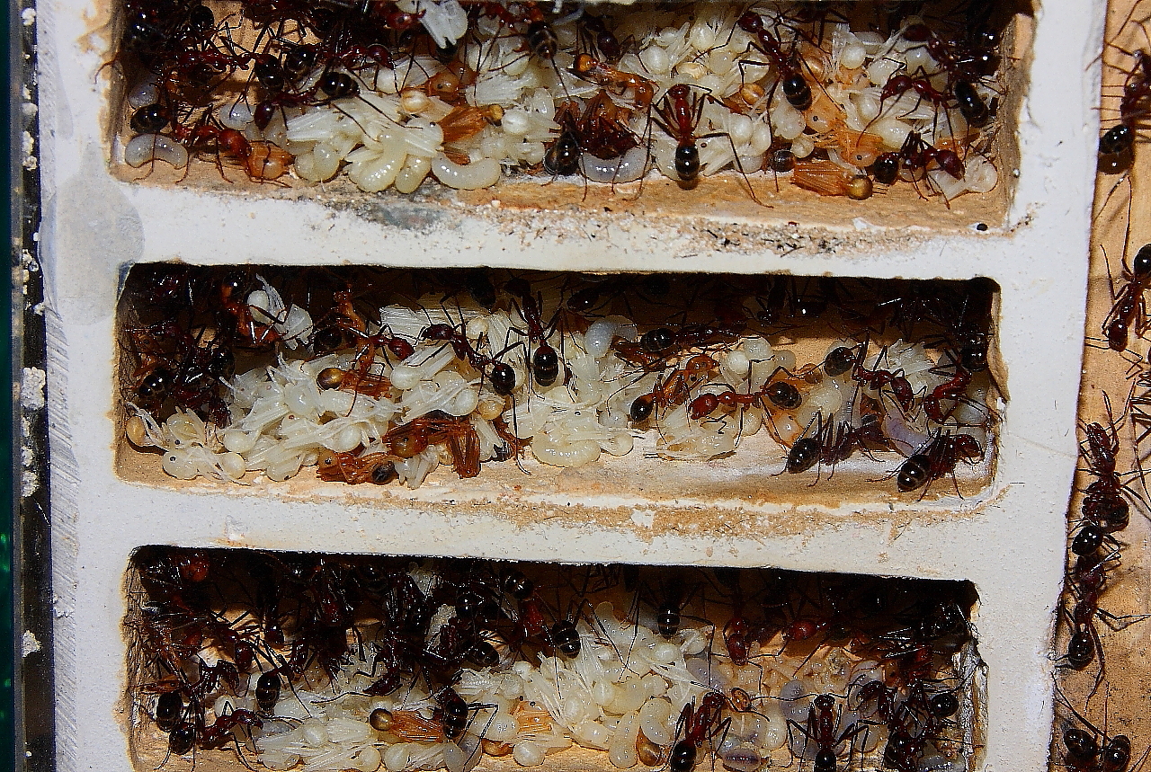 Umzugsfaul oder eifrig dabei, schaut Euch die letzten Nestbilder an, reichlich voll, Ameisen sind in der Lage, bei Platzmangel zu reagieren.