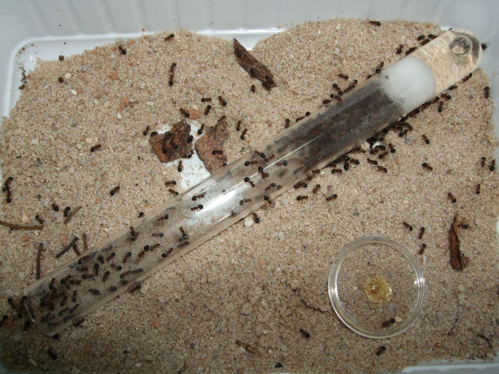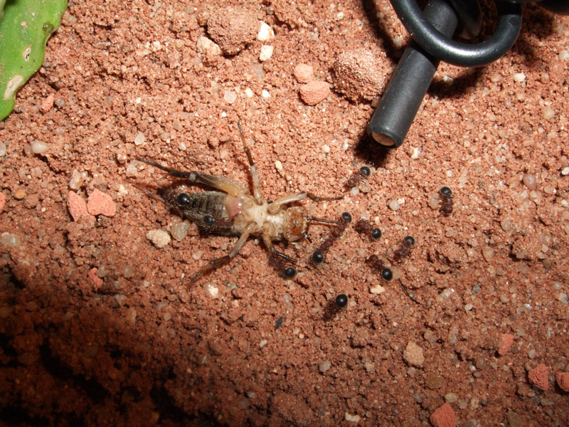 Sie nehmen noch immer sehr viel Nahrung auf(was ich so als viel erachte) alle 1-2 Tage ein Heimchen und reichlich an Honig/Zuckerwasser. Den ganzen Tag ĂŒber sind immer 5-13 Ameisen am Heimchen(Derzeit am Heimchen satte 25) zugange und 3-8 kann ich immer an den Honig/Zuckerwasserlösungen sehen.