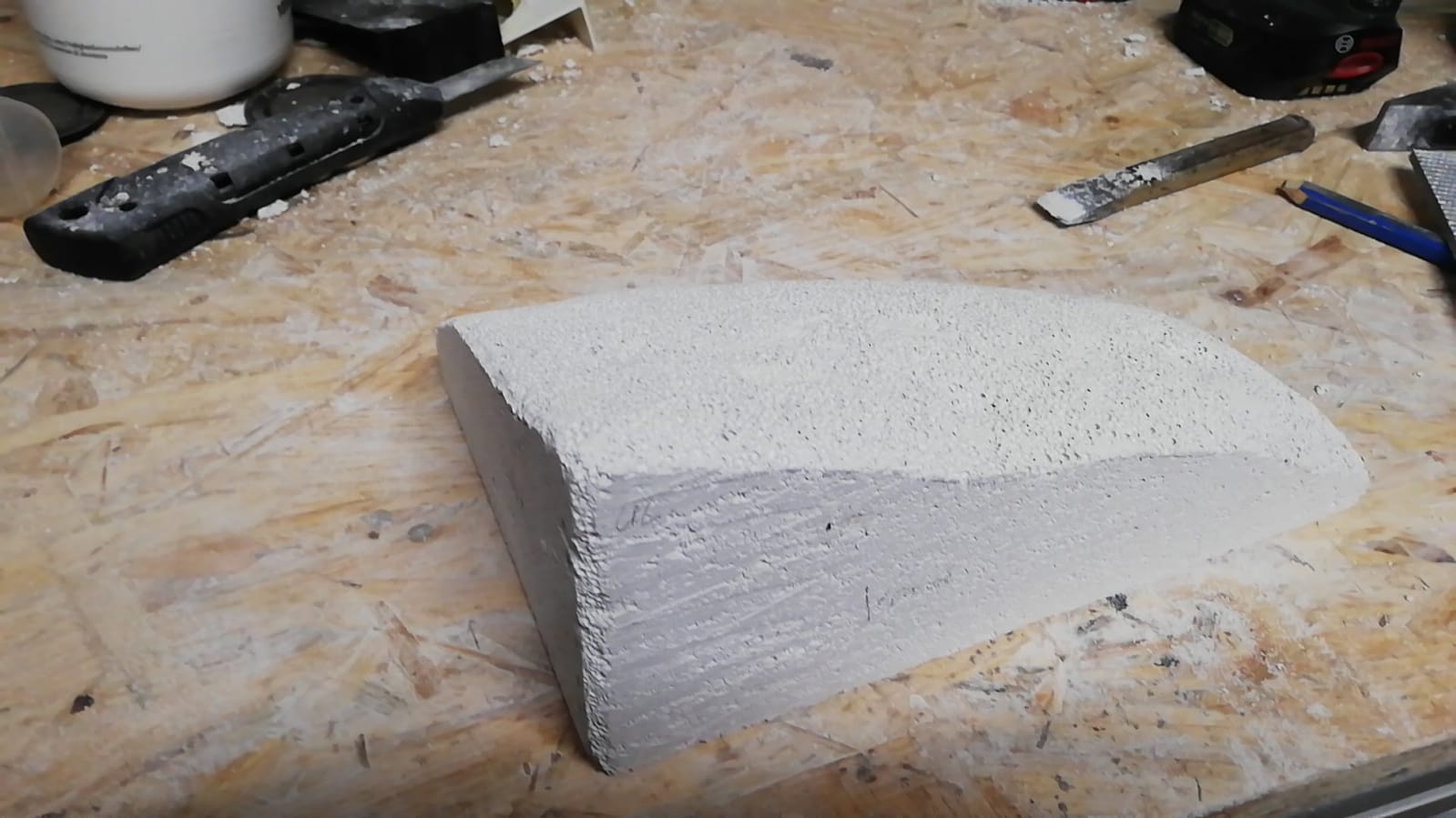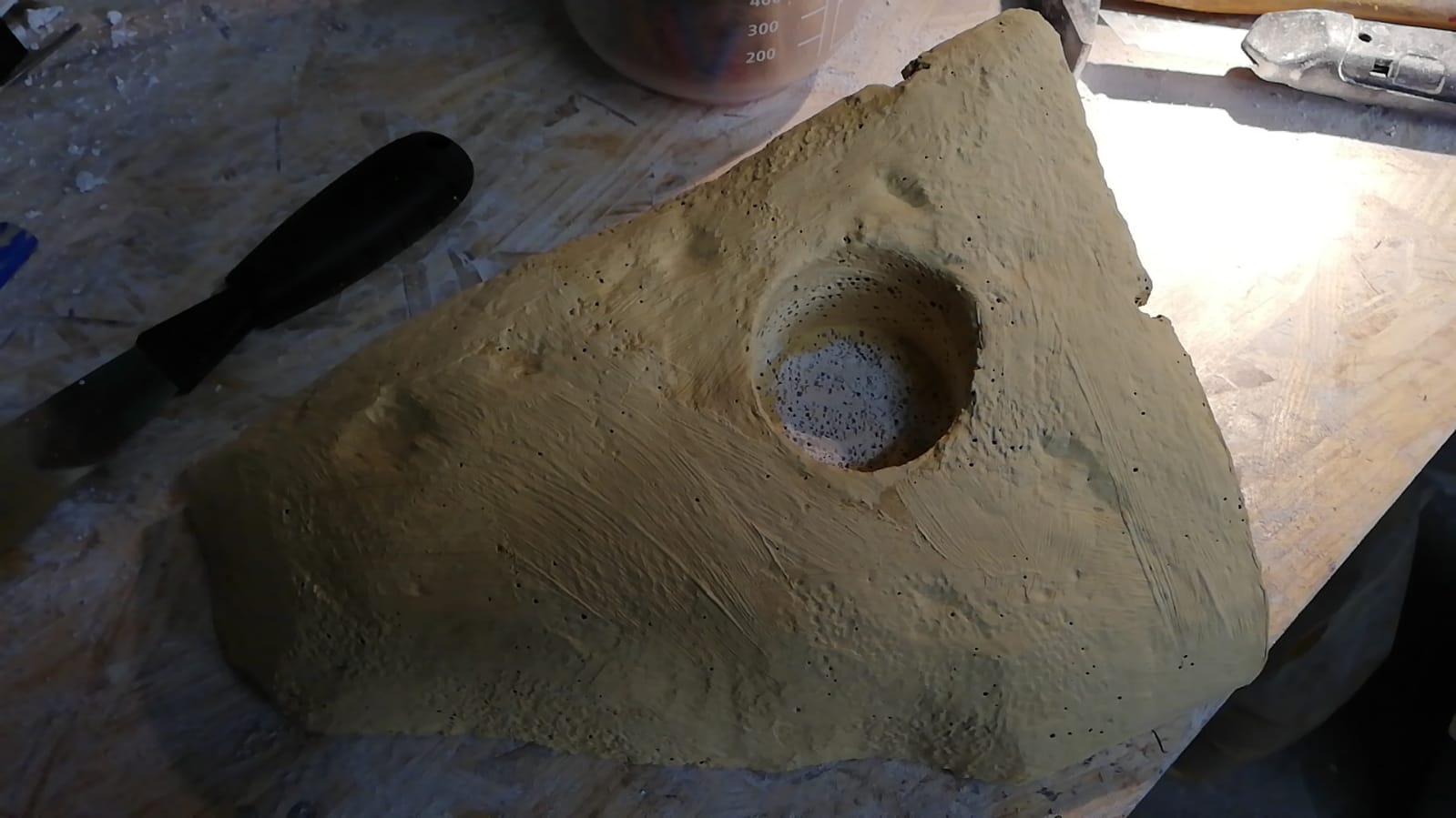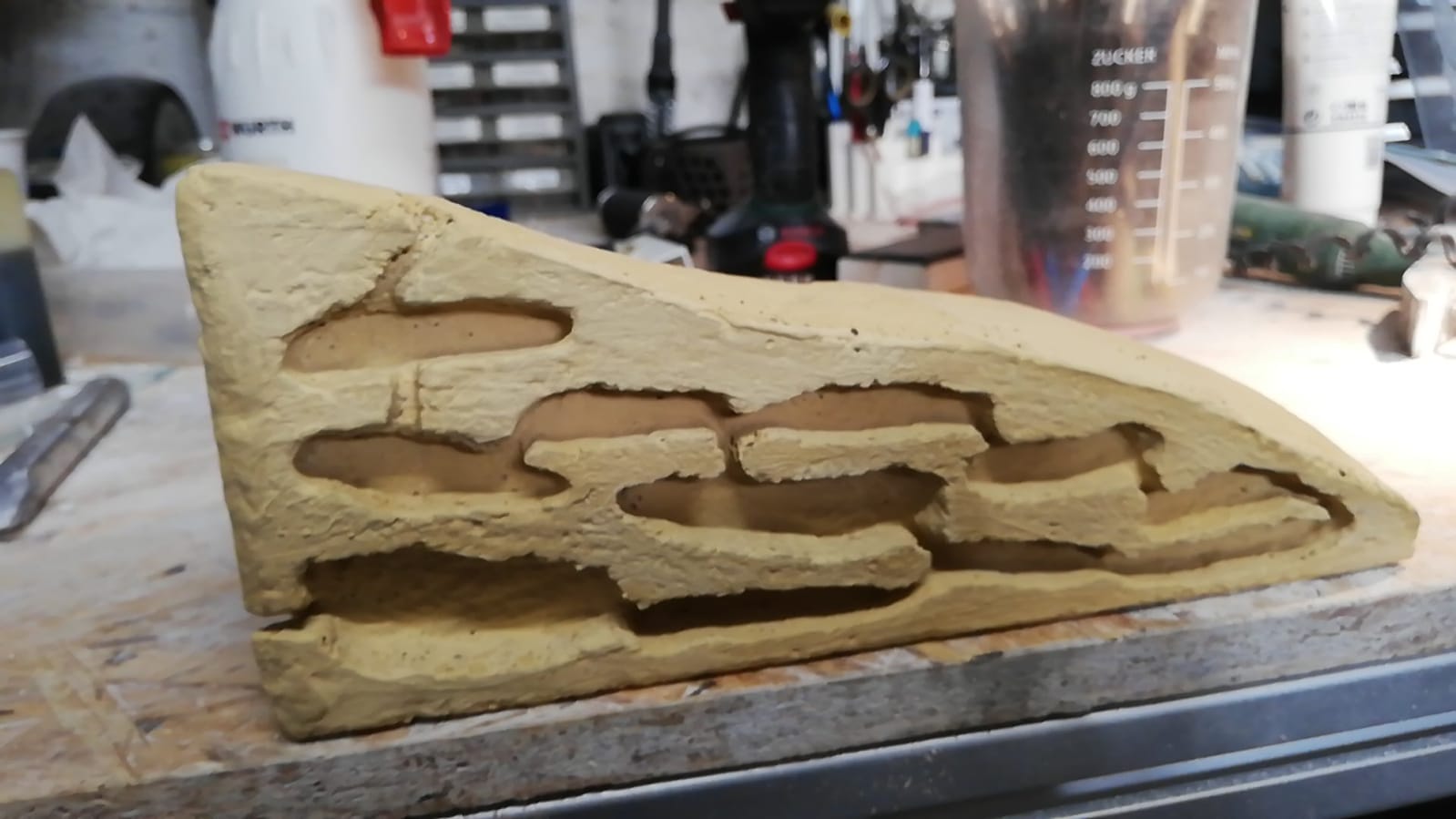 Das Ganze mit Hammer und Meißel sowie einer Raspelfeile in Form gebracht.