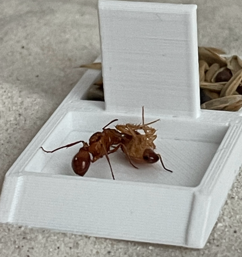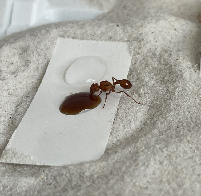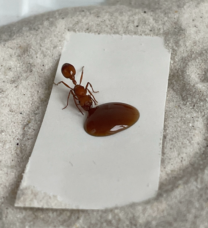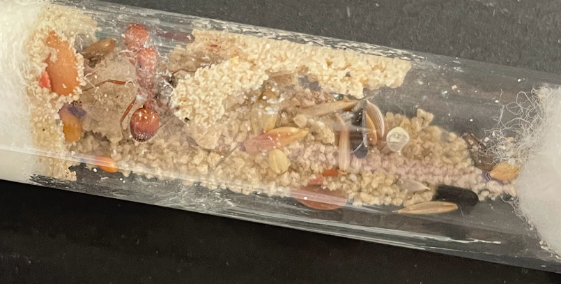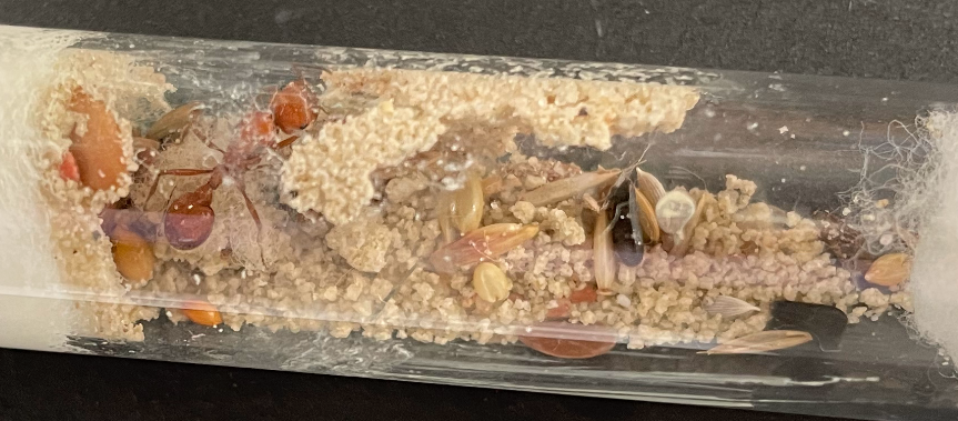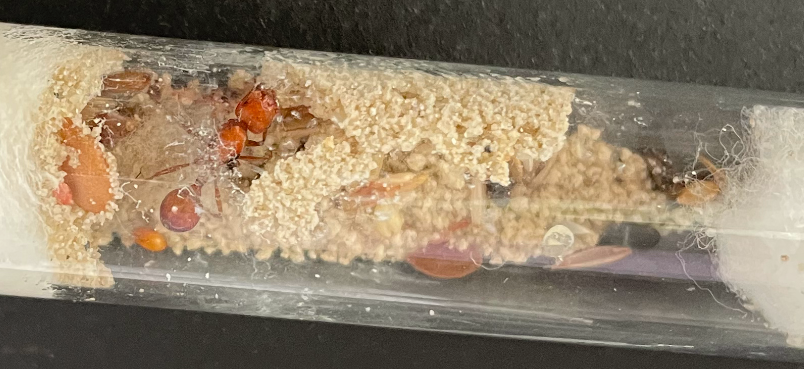Es ist verrückt!! Sie ist sehr aktiv und Sie geht auch gar nicht mehr in Ihr Reagenzglas. Sie bewegt sich nur zwischen dem Nest und der Arena. Ich vermute das Ihr das Reagenzglas tatsächlich nicht gefallen hat und sogar Ihre