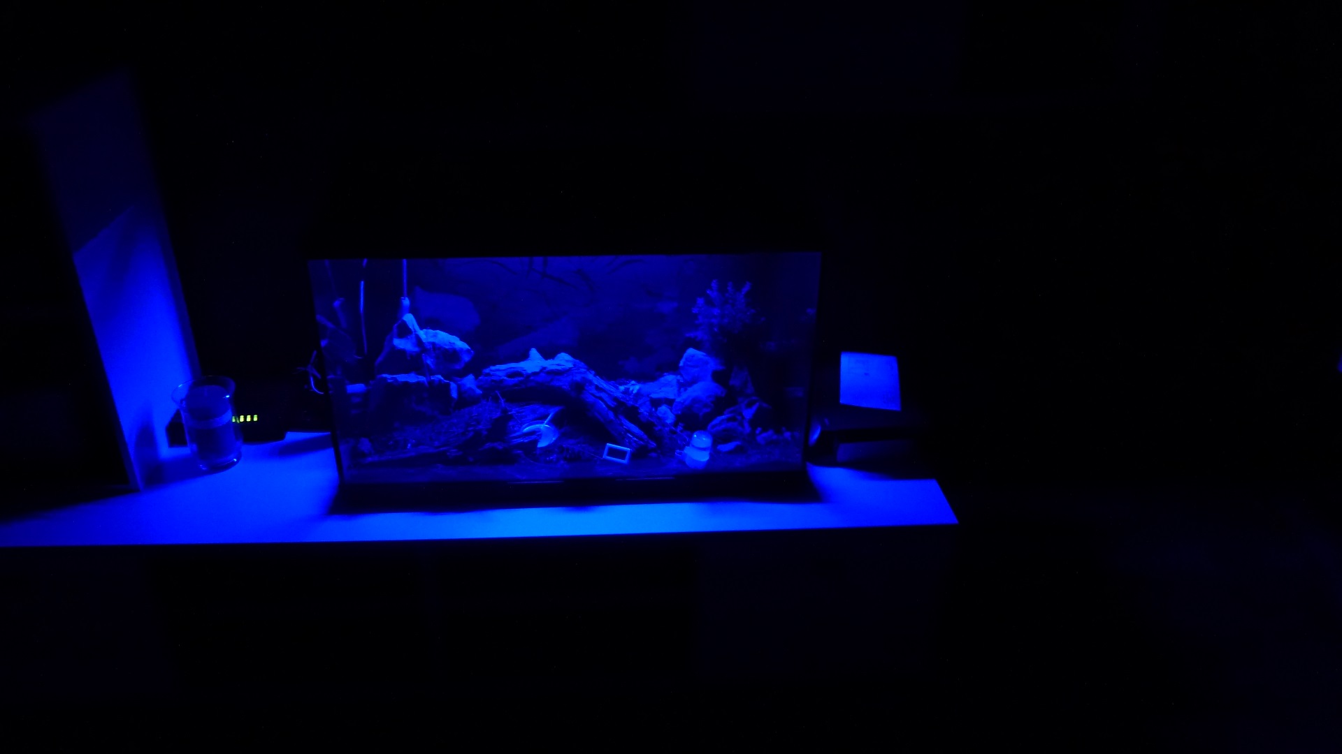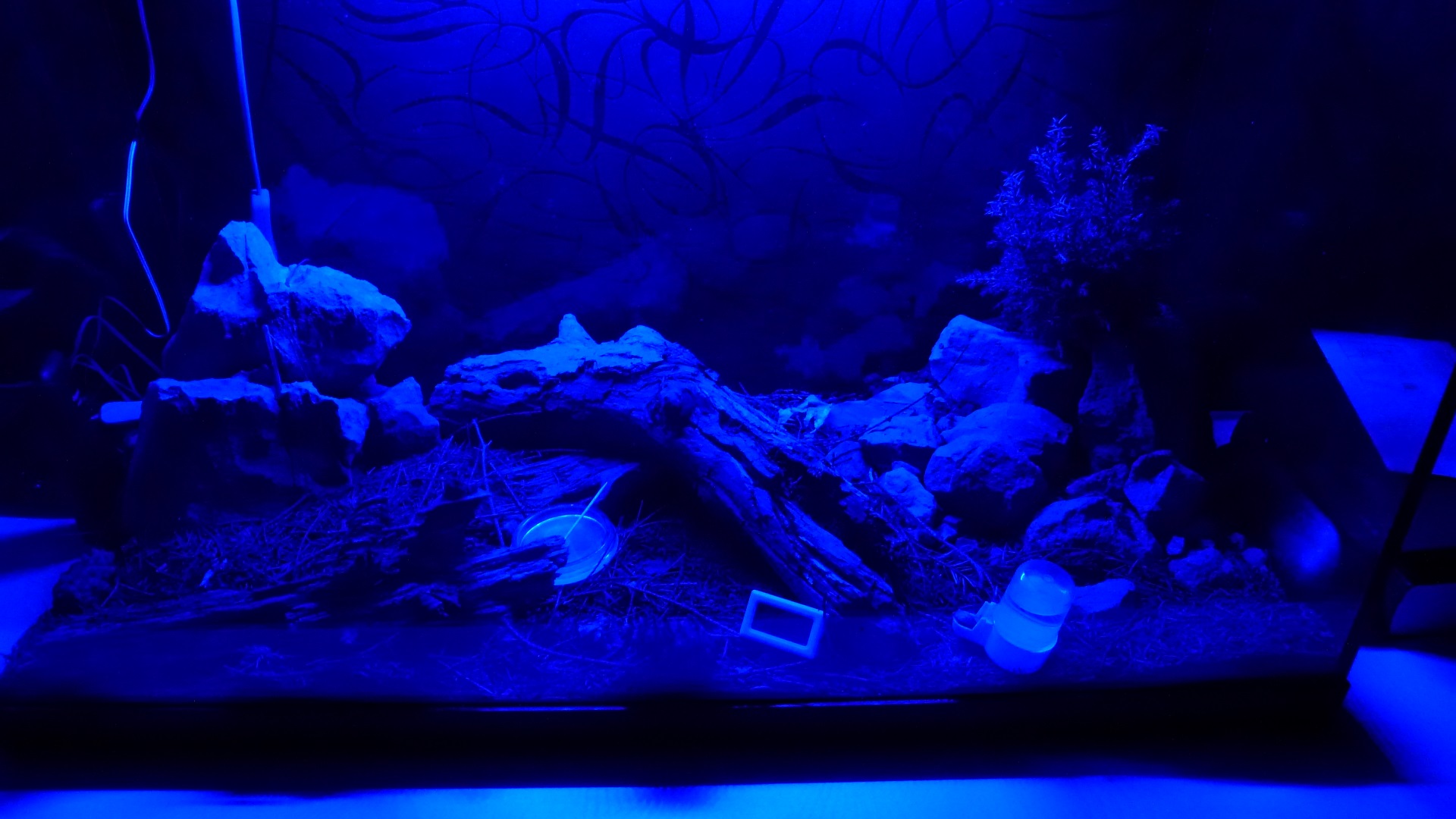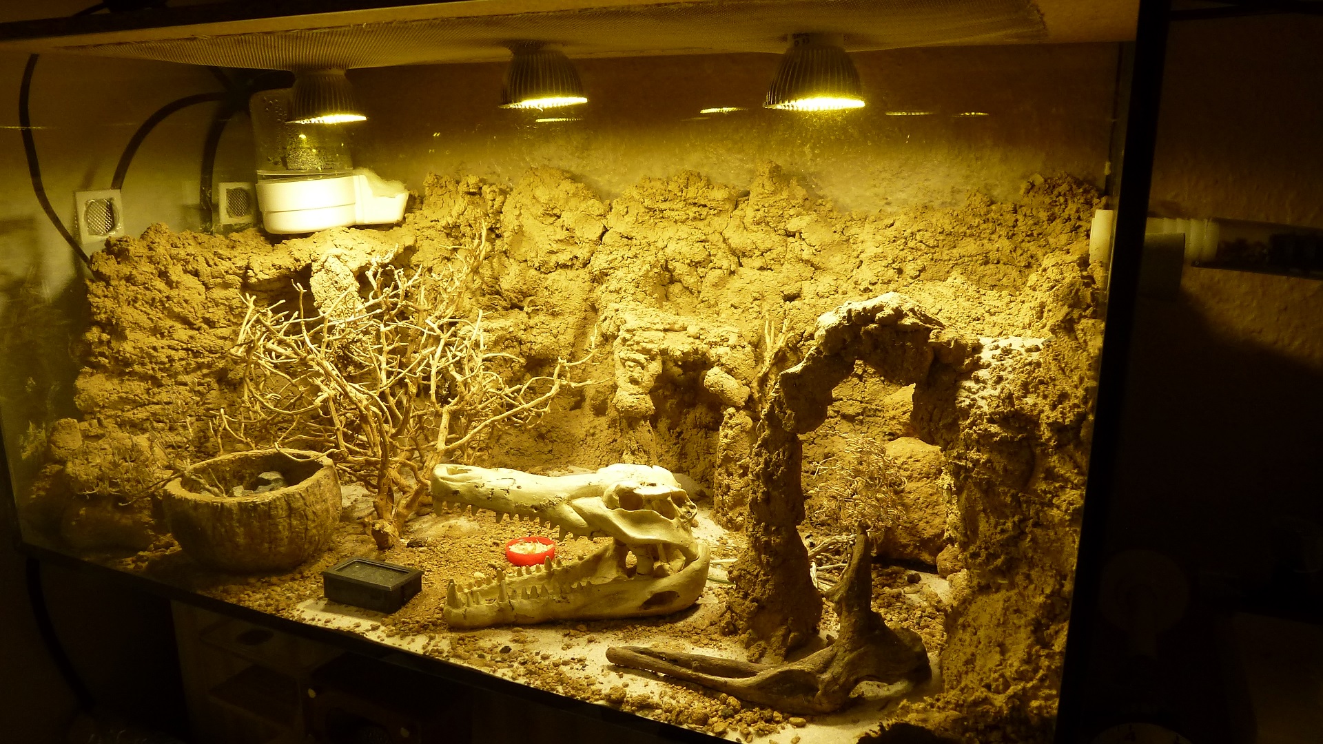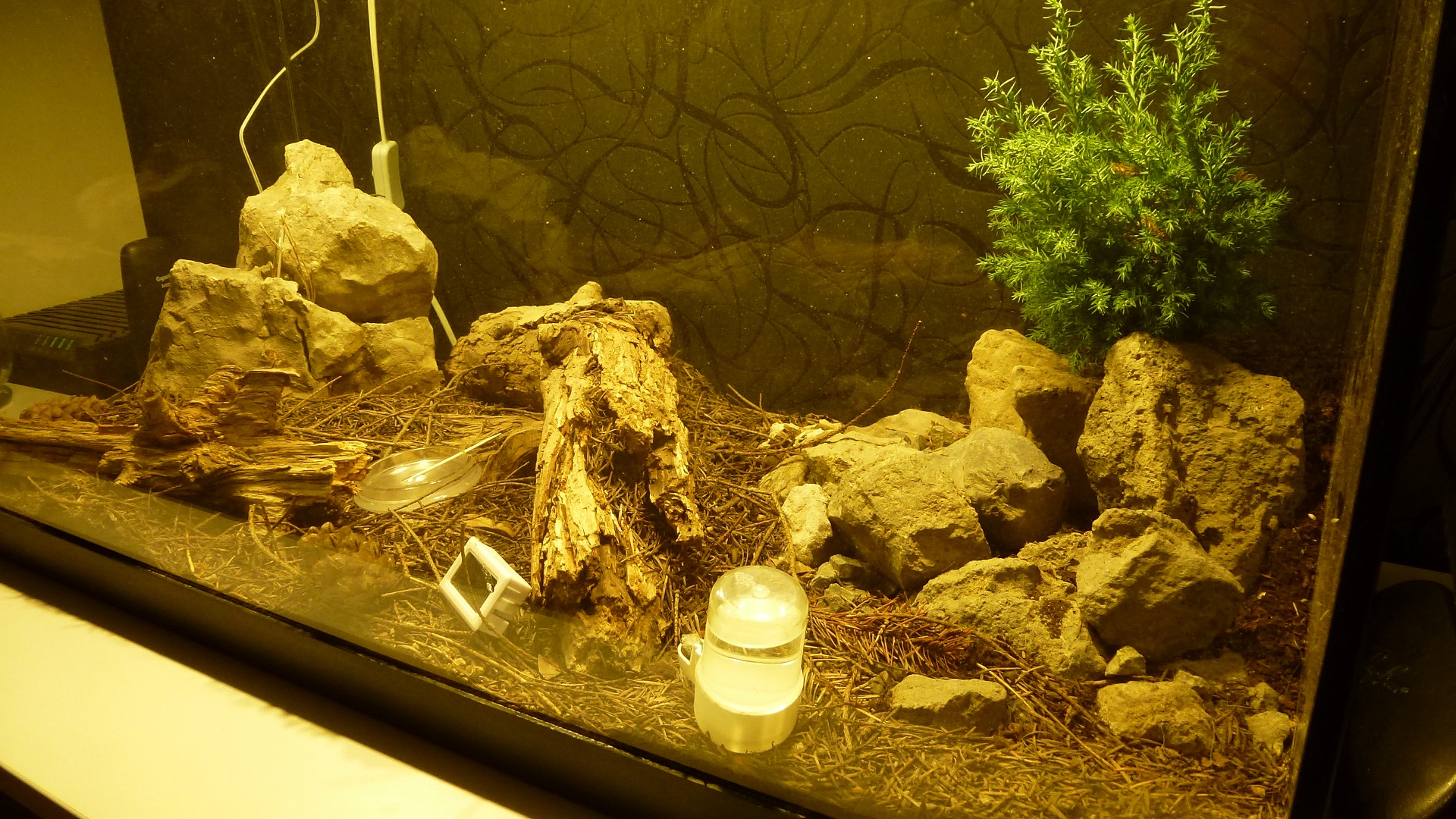 Die Ameisen wohnen in dem Ast in der Mitte, der einige Löcher hat, in die die Ameisen gerne eingezogen sind. Das Formicarium ist 80x45x50 cm groß.