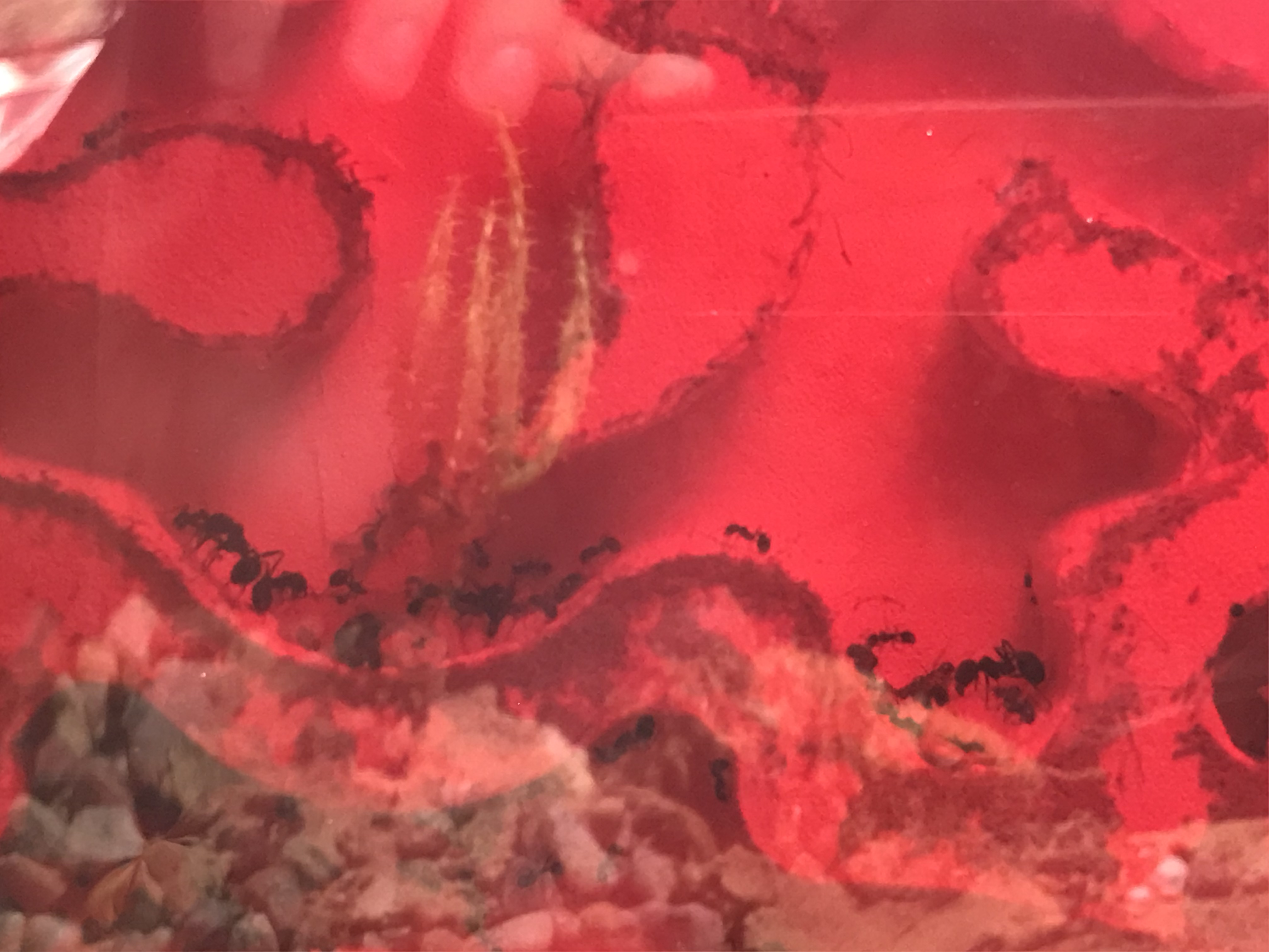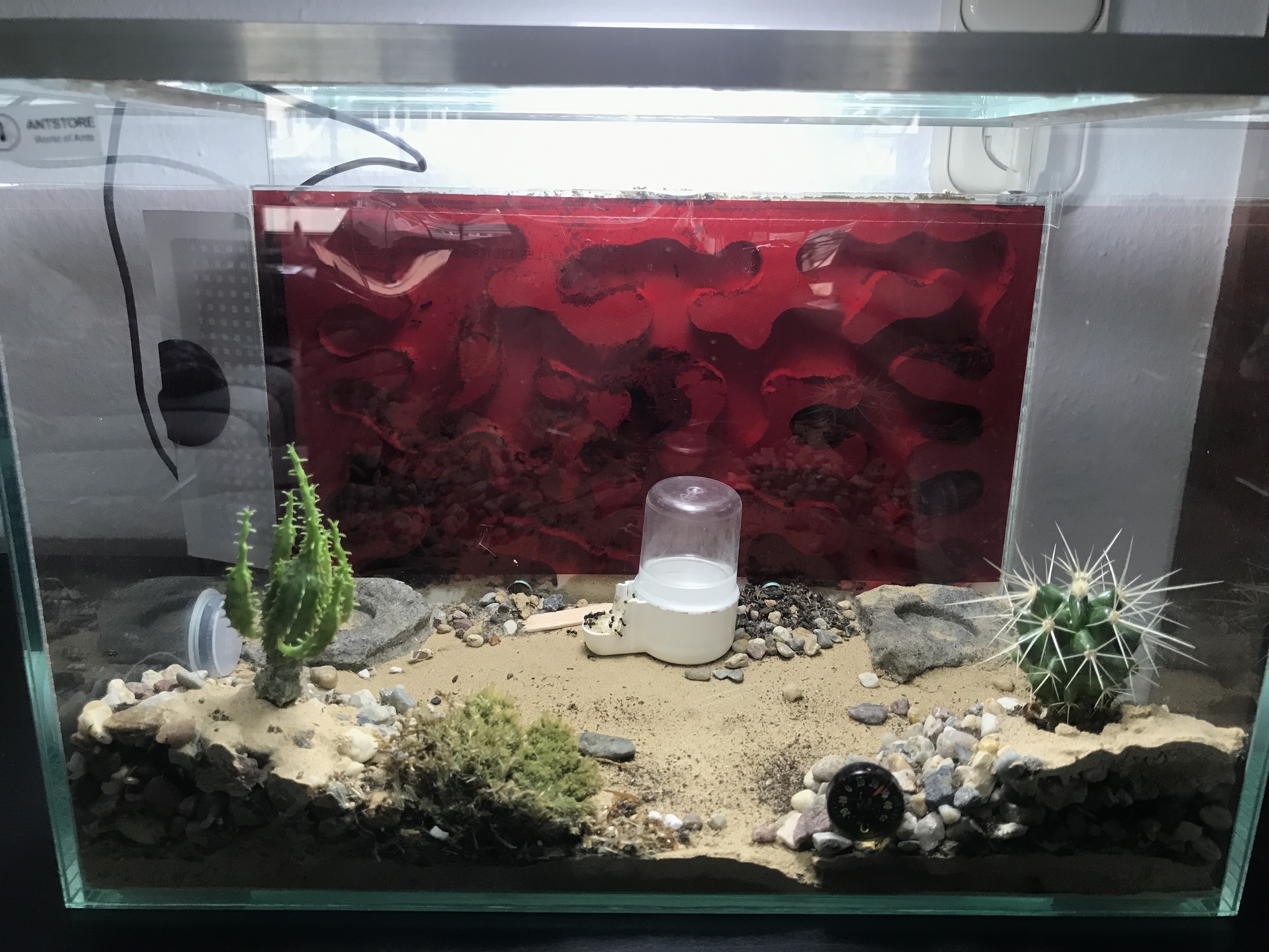 Als kleine Spielerei habe ich eine Lampe über denn Formicarium installiert, die durch Helligkeit- und Farbwechsel einen natürlichen Tagesablauf simuliert. (16:8 Stunden Tag/Nacht-Rhythmus).