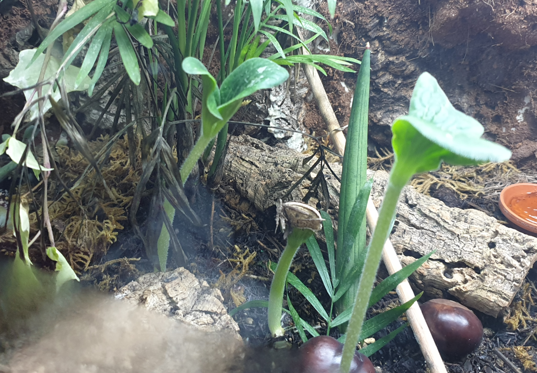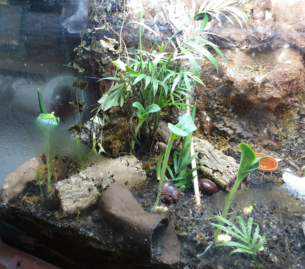 Ich habe einen kleinen Sohn der zwar nicht ganz so Verrückt wie ich nach dem Geschehen in Little Paradise is, jedoch auch immer auf der Suche nach nützlichem und unnötigen ist, was wir unserem Habitat zufügen können. Zu Halloween haben wir Kürbiskerne reingeworfen die bereits nach 1er Woche gekeimt haben und gut wachen.