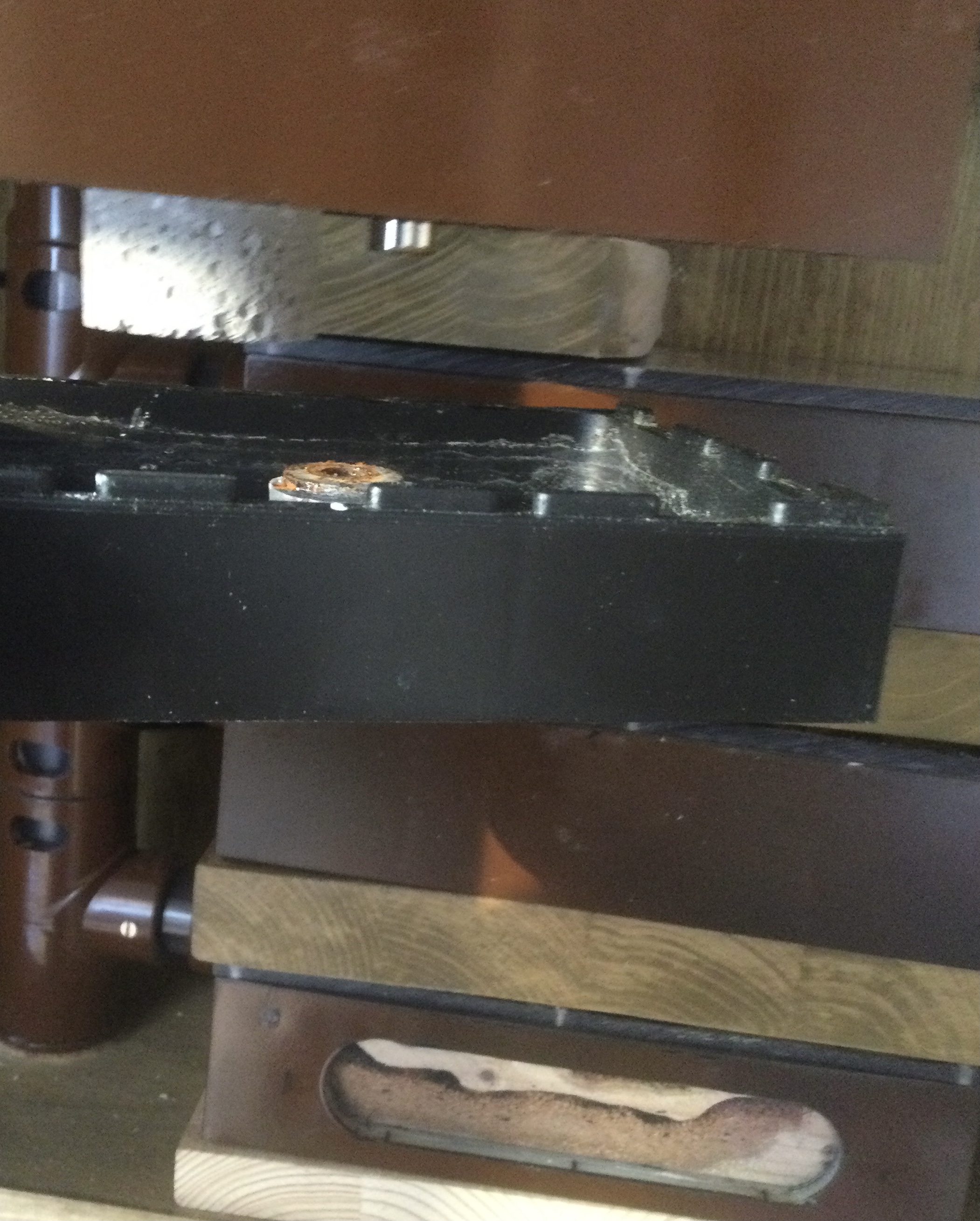 zu2. der Holzrahmen wurde mit Eisenschienen frontal fugenfrei abgeschlossen. Als Frontdeckel dient eine Acrylglasplatte mit Futterluke. Diese ist in einem Rahmen eingeklebt