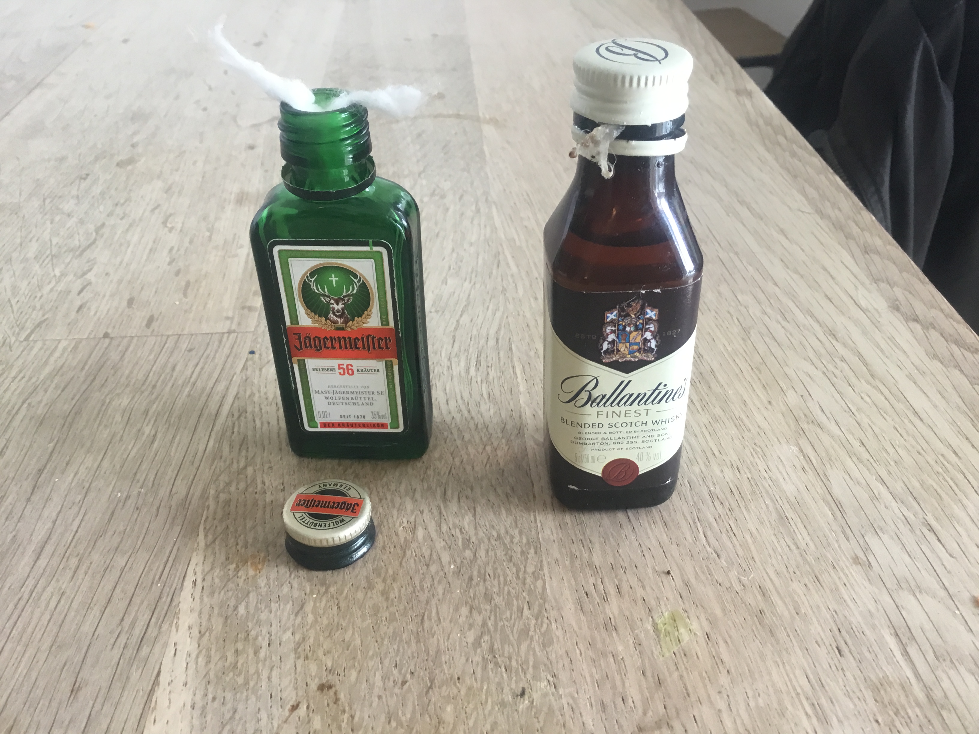 Besorgt euch eine dieser Kleinst-Alkflaschen, zb Kleiner Feigling. Leer machen und sehr gut ausspülen, mit der gewünschten Flüssigkeit füllen und die Öffnung mit Watte verschliessen, ein (oder je nach Koloniegrösse auch mehrere) Zipfel der Watte über das Gewinde rauszupfen. Nun den Deckel zu 80-90% verschliessen, so bleibt der überstehende Zipfel feucht, tropft aber nicht und die Ameisen geraten nicht in Ertrinkungsgefahr. Kostet keine 2 Euro und sieht gar nicht schlecht aus