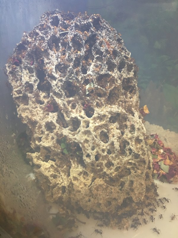 Die Ameisen zeigen unabhĂ€ngig vom Pilz erstaunliches architektonisches Talent und haben in mĂŒhevoller Kleinarbeit eine Art Berg mit höhlenartigem Durchgang aus BlĂ€ttern, BlĂŒten und Perlite errichtet - hoffe man kann den Durchrang unten mittig erkennen und das der Berg nicht irgendwann einbricht ^^