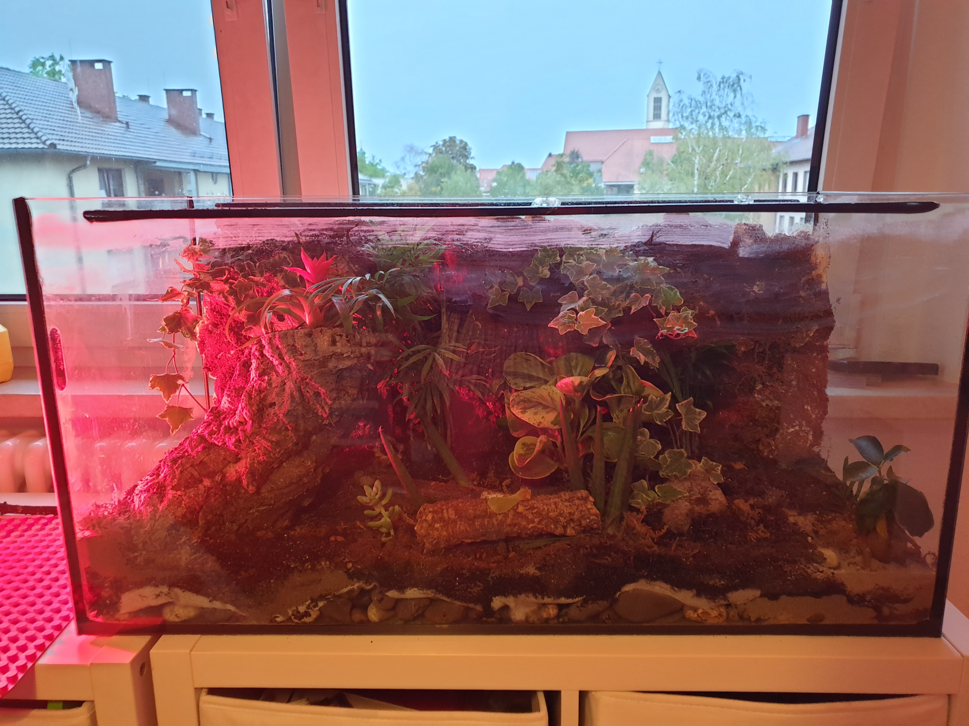 Erstmal entschuldige ich mich für die Fehler in meinem Beitrag von heute Nacht. Aber die Kombination aus Legasthenie der späten Stunde und der Tatsache das ich hin und wieder auch arbeiten musst haben über Rechtschreibung gesiegt. Aber nun seht ihr den Status Quo meines Projektes. Es fehlen noch rankenpflanzen und farbiger Quarzsand oder Kies. Beim Bodengrund habe ich viel wert auf Diversität gesetzt so wie Mutternatur es auch macht. Vom Handy aus sehe ich leider die Anhänge nicht genau deswegen habe ich mal alle Fotos genommen die ich gerade geschossen habe.