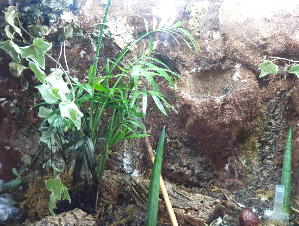 Auch sind die ersten Mieter heute eingezogen. Ich hab eine kleine Herde Springschwänze, weiße Asseln beides Gekauft eingesetzt. Dank dem Regen habe ich noch weitere Bewohner gefunden die ich eingesetzt habe, war alles dabei von Regenwürmern über andere Asseln. Ich habe auch einen kleinen 100 Füssler gefunden der wurde jedoch noch nicht eingesetzt, da ich nicht weiß ob meine noch sehr kleinen Kolonien bei streitigkeiten Wehrhaft genug sind. Meine Brunnea werde ich morgen einsetzten oder besser gesagt heute. Die Camponotus brauchen wie bereits erwähnt noch etwas mehr Einzelbehandlung. Da ich vor 2 Monaten selber nochmal Nachwuchs bekommen habe, und meine kleine manchmal schreit so wie Babys es eben machen, hatte ich angst das meine Camponotus sich das mit den Kinder bekommen nochmal überlegt. Aber gestern war es so weit 2 Wunderschöne Eierpackete haben das licht der Welt erblickt. Kaum zu besachreiben diese Gefühl. Von meinen Gefühlen überweltigt, habe ich leider vergessen Fotos zu machen. Ich habe vor die brunnea morgen bei der großen Rinde auzusetzten und hoffe sie werden die Löcher, die ich gemacht habe nutzen und sich da drinnen einnisten. Da oben ein eine große Öffnung ist, habe ich eine Pflanze eingetopft damit sie es schön dunkel im Nesthaben. Durch das Beregnen werden sie auch nicht Nass, sondern es dringt nur ein wenig feuchtigkeit ein also so wie sie es lieben. Leider Wirkt die kleine Kolonie nicht besonders Hungrig die Schokoschaben die ich Ihnen heute angeboten habe wurden einfach verschmäht auch mein Sushi haben sie nicht genommen. Aber ich bin mir sicher ich werde ihre Vorlieben kennenlernen.