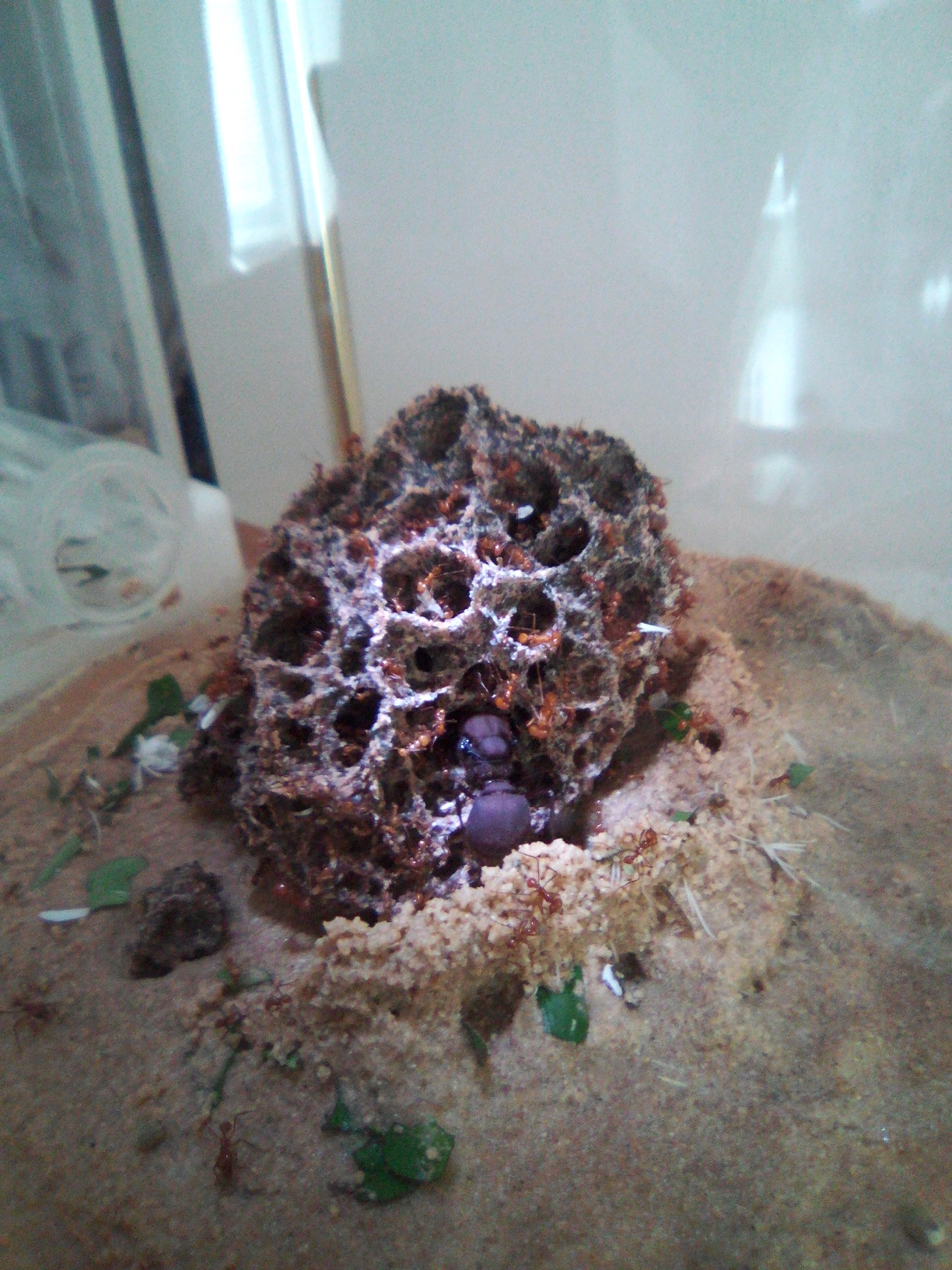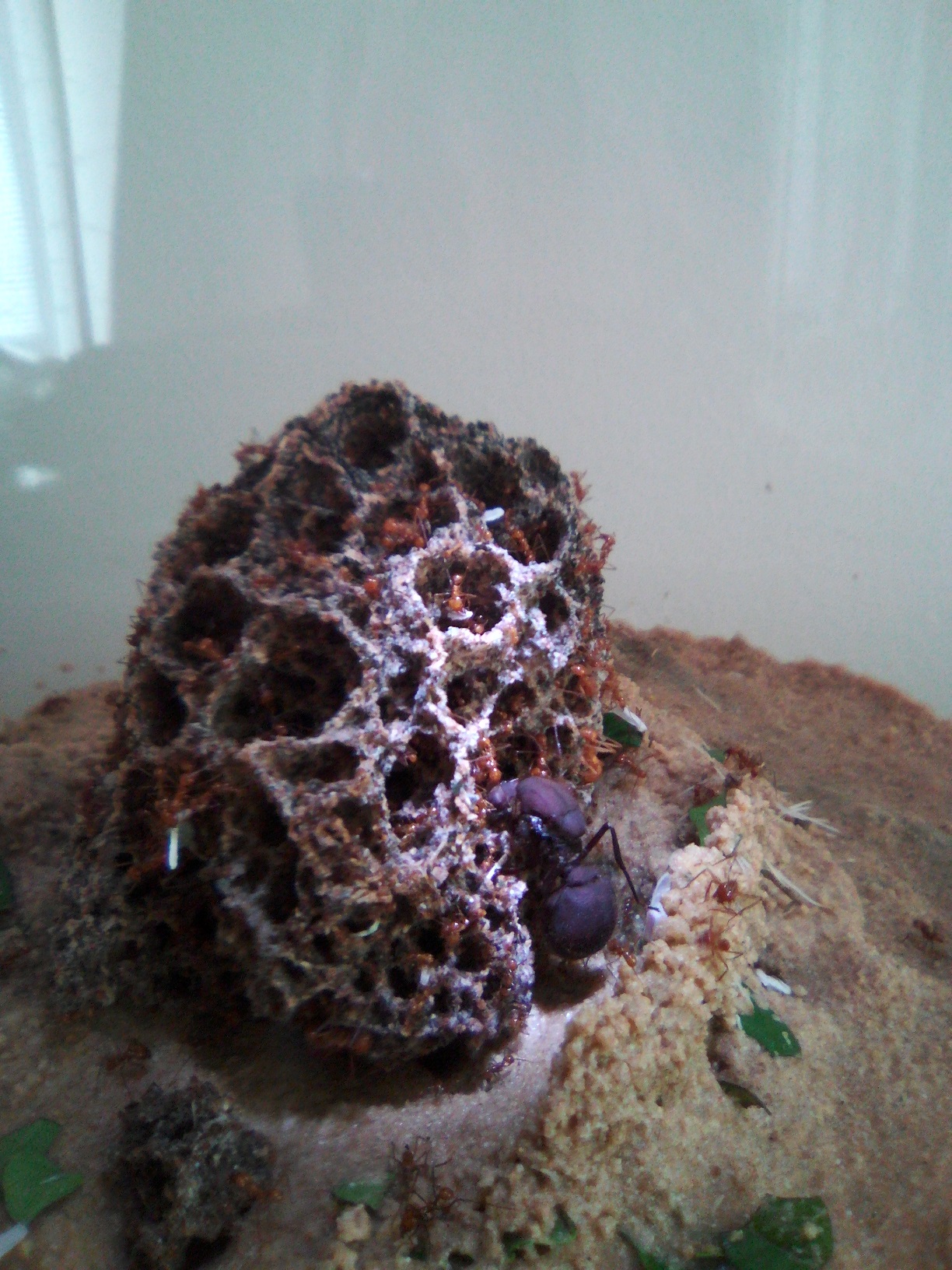 Wie die wenigsten wissen, bevorzugen Atta Kolonien, trotz der durchaus hohen Lichttoleranz, abgedunkelte Pilzkammern. Das ist nicht zwingend notwendig, aber das könnte mit ein Grund fĂŒr das Zubauen sein.