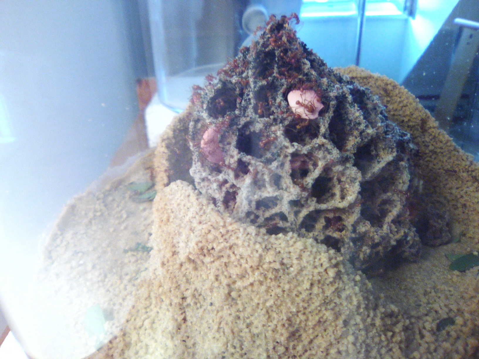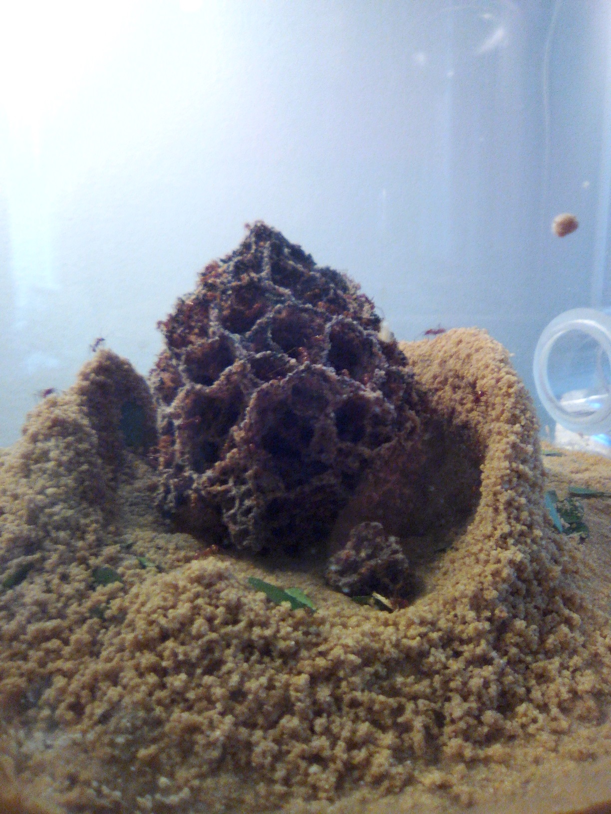 Hallo, also ich hab wieder Wasser in den Sand gegeben und die WĂ€nde sind eingestĂŒrzt. Ăber die Nacht haben sie wieder mit dem Aufbau begonnen. Ich werde jetzt wieder einen Deckel drauf machen ( 2l Flasche) eigentlich sollte das Klima passen, pitschnass der Sand und 30 grad!