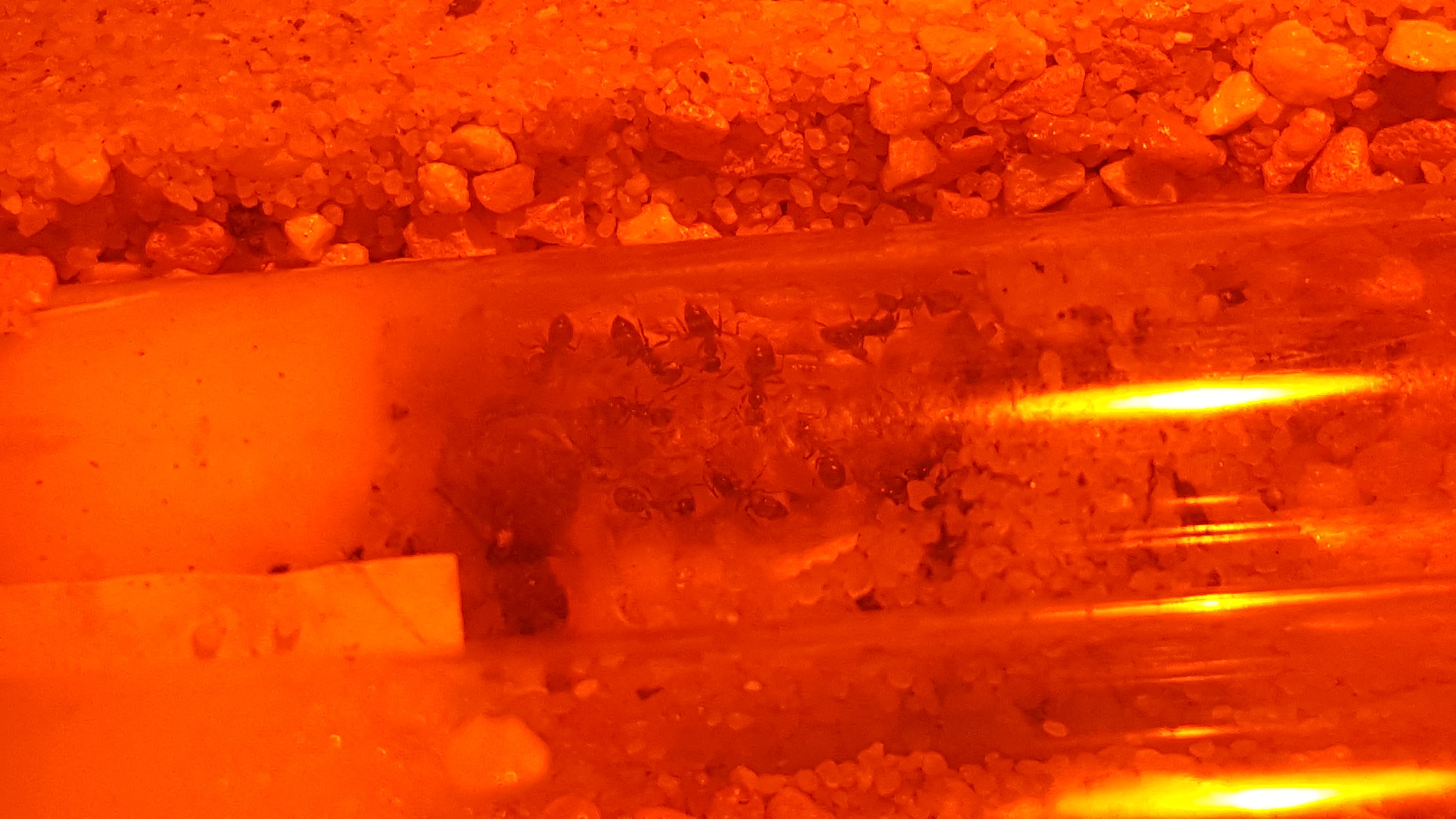 Auch habe ich beobachtet, dass sich die Ln gegeseitig füttern. Tun das Eure auch? Immer wenn eine Arbeiterin den Tropfen Honigwasser entdeckt, saugt sie sich so voll, dass das Hinterteil richtig hell wird und wenn sie dann im Nest ist, dann füttert sie ihre Artgenossen einschl. der Königin. Das ist wirklich interessant zu beobachten. Auch wie schnell sie sich den Eingang ins Nest verkleinert haben, war total spannend. Quasi über Nacht, haben die den kompletten Umfang des RG bis auf einen kleinen Spalt verschlossen. Wahnsinn!!!![]()