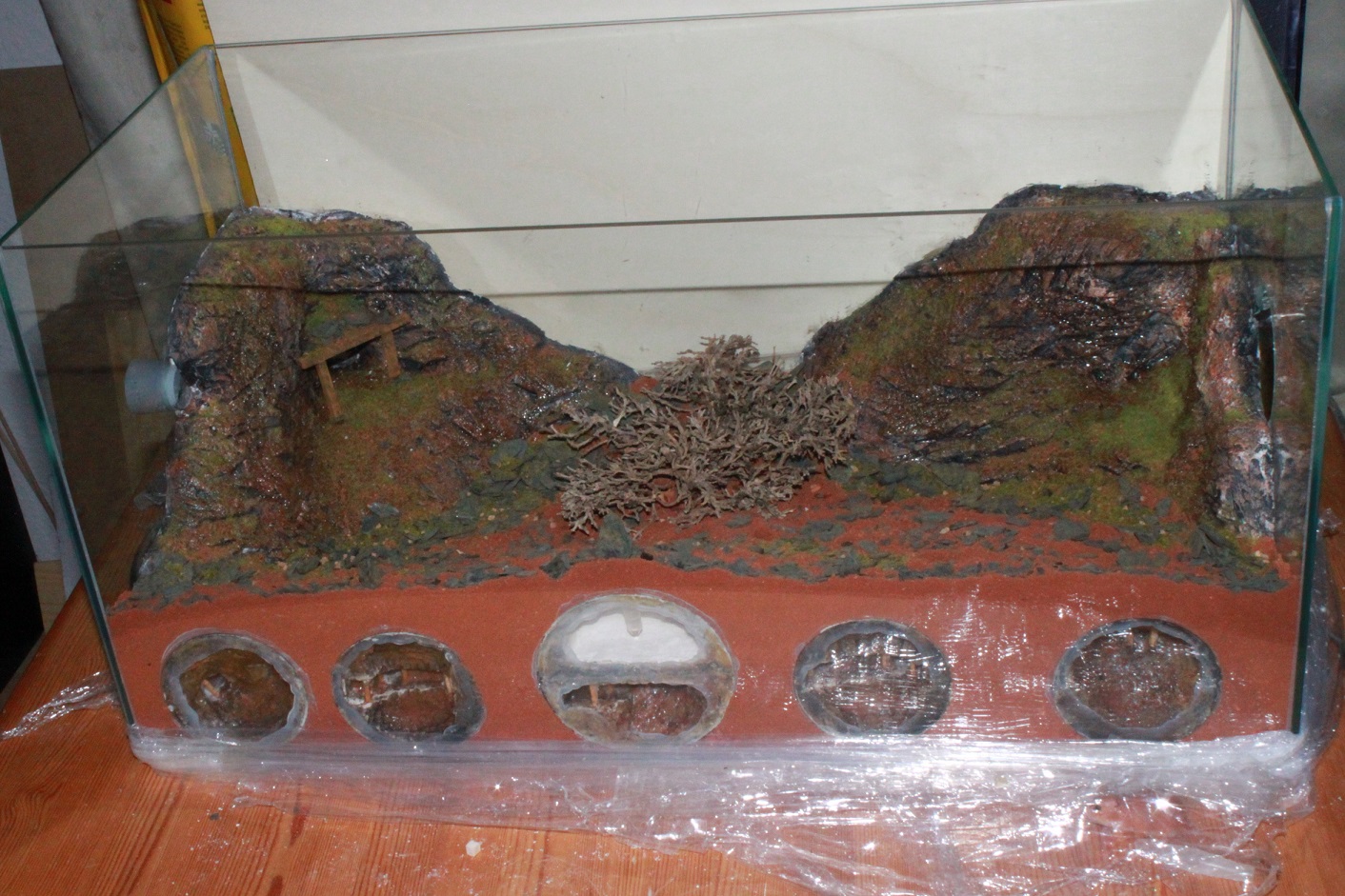 Mittlerweile ist die Mine auch in Betrieb bei einem Freund. Angeschlossen ist ein weiteres Terrarium und ich habe die Silikonwulste in den Kammern entfernt, damit es schöner ist. Ich hoffe ich bekomme noch nachträglich ein aktuelles Bild.