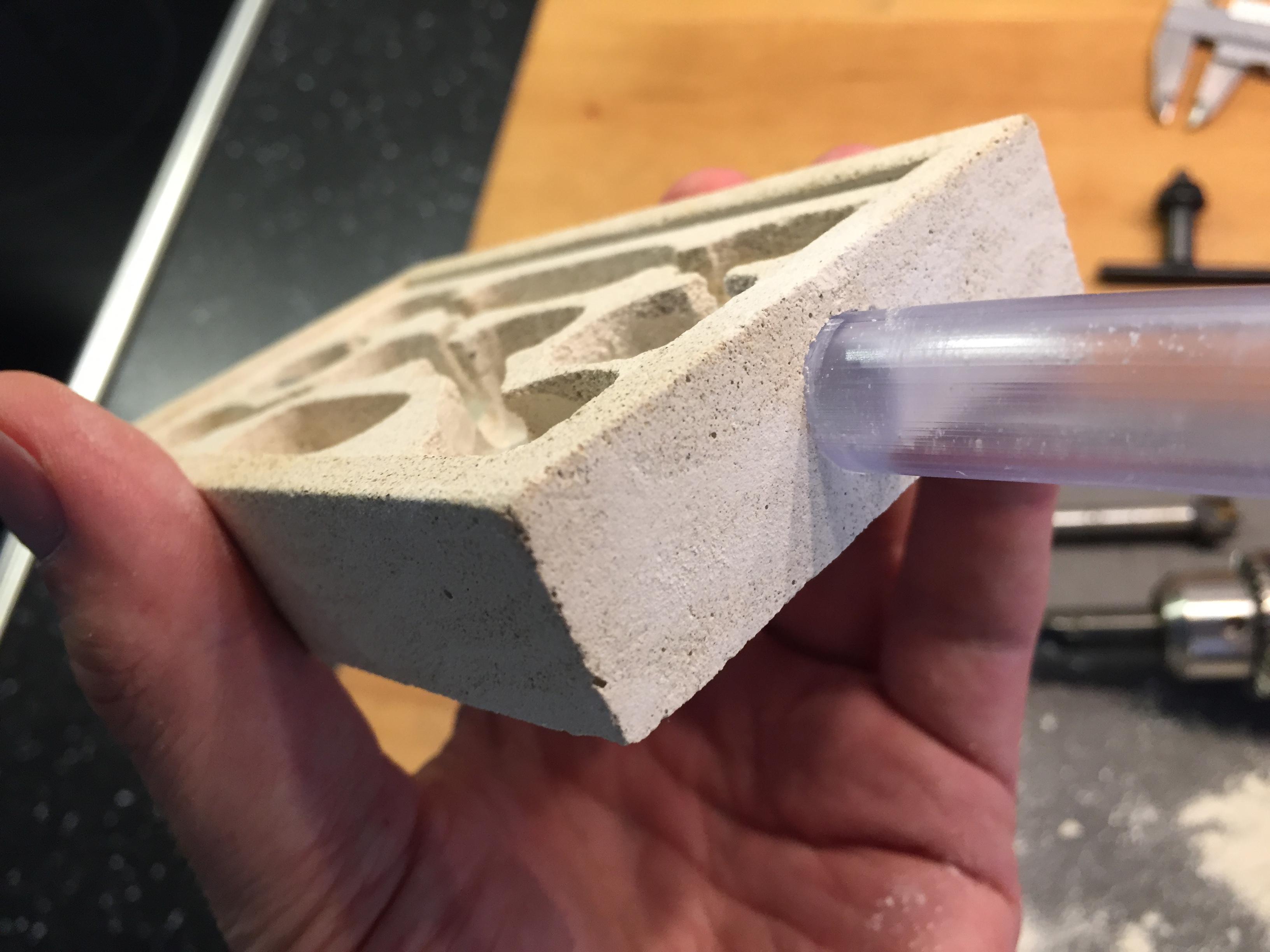 Knete-VorbereitungSchalungRohlingHalbfertiges AusformenFertiges AusformenZwischenhĂ€rtungSchlauchmontageScheibe passt auf den Millimeter!Fertig 1Fertig 2 (Bestes Bild zum VergröĂern)Detail NestEingezogen und Arena akzeptiert!