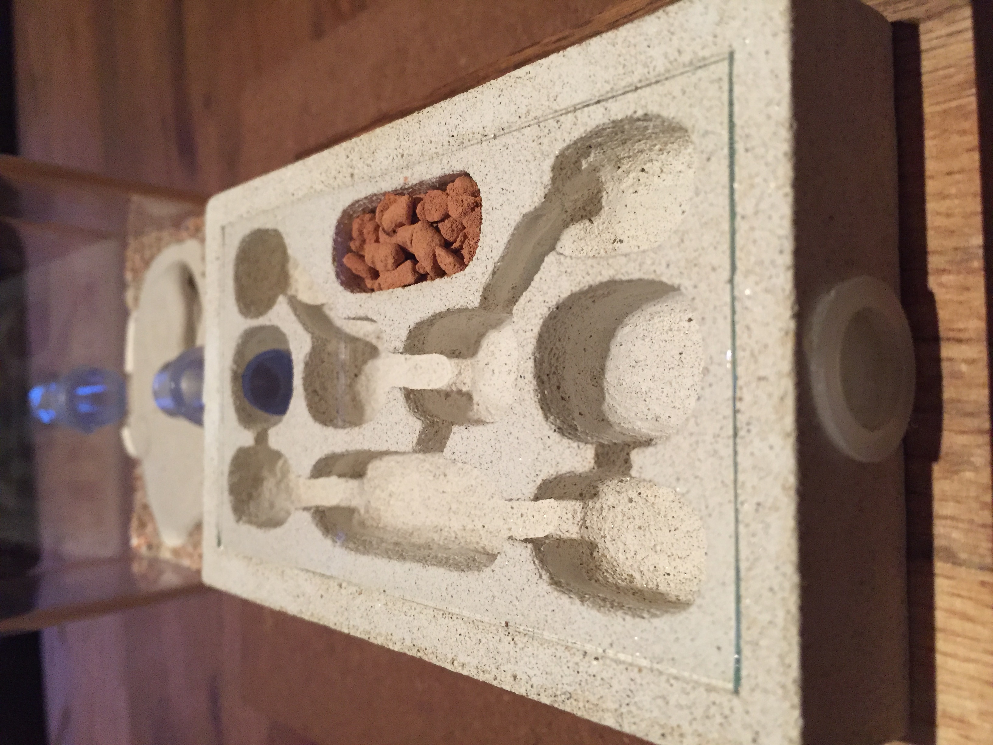 Das Nest besteht aus der schon hÀufiger von mir verwendeten Mineralien-Mischung; nur dass ich dieses Mal die Methode mit Knete zum Formen der Kammern angewendet habe um das auch selbst erlebt zu haben und mitreden zu können.