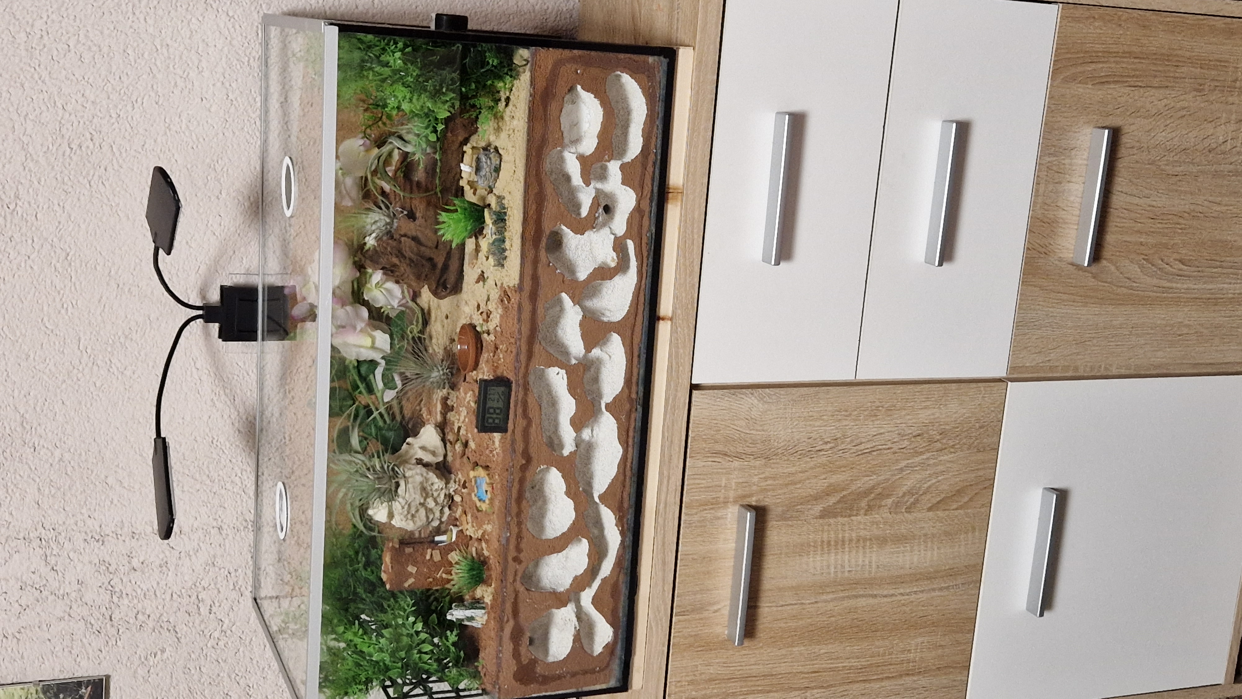 Nachdem ich angefangen habe den Haltungsbericht von Rapunzula zu lesen, hab ich erkannt, dass eine 300x200x200 Arena mit integriertem 3D Druck Nest vieleicht nicht ganz so sinnvoll ist. Da muss gleich grösser geplant werden. Ein altes undichtes 60cm Aquarium und Basteltrieb waren vorhanden.