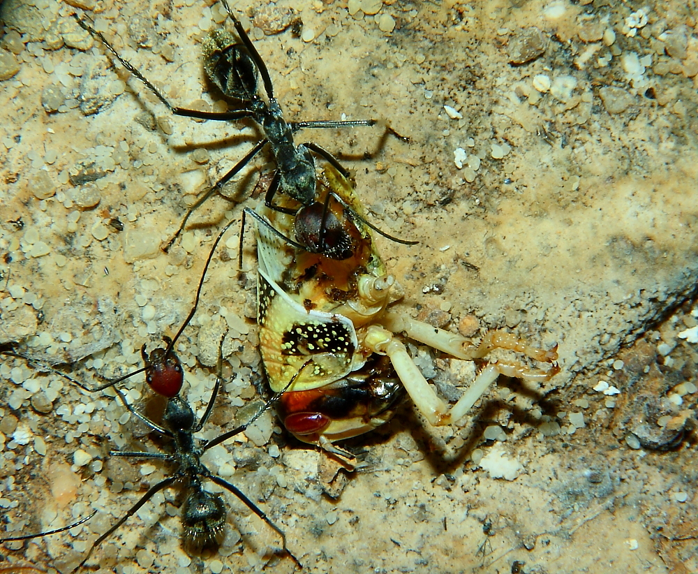 Auch größere Ameisen finden lange Interesse an Futtertieren, wo es auch nach Tagen noch was zu holen gibt.