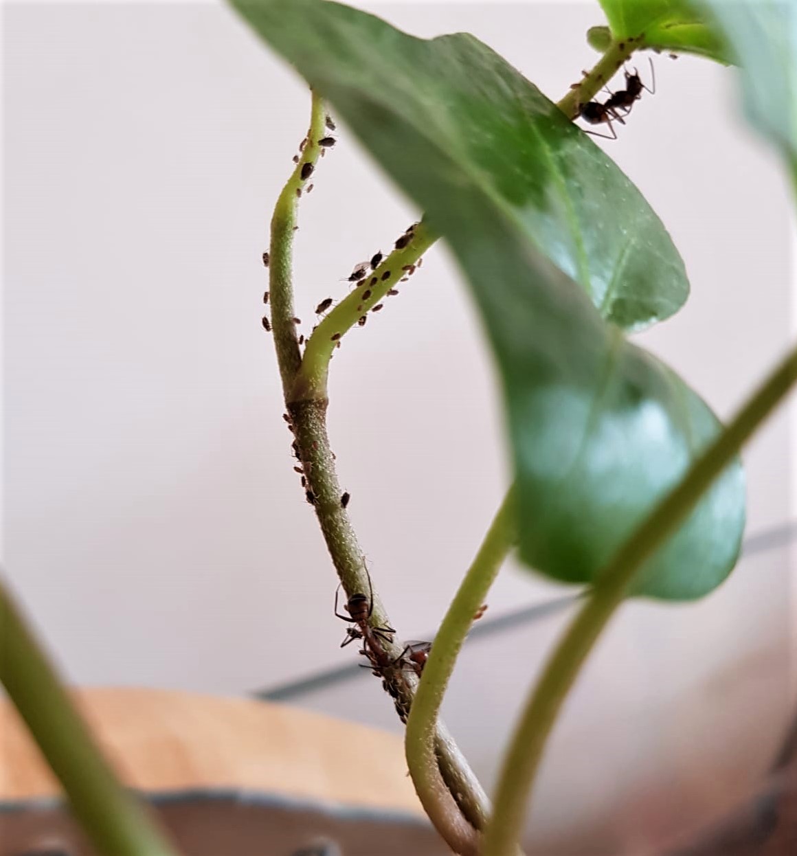 Ergebnis: Die nicobarensis haben ĂŒber Nacht alle drei Pflanzen fein gesĂ€ubert. Von Honig, und auch von LĂ€usen. Mit Woll-LĂ€usen klappt das Ganze also leider nicht.