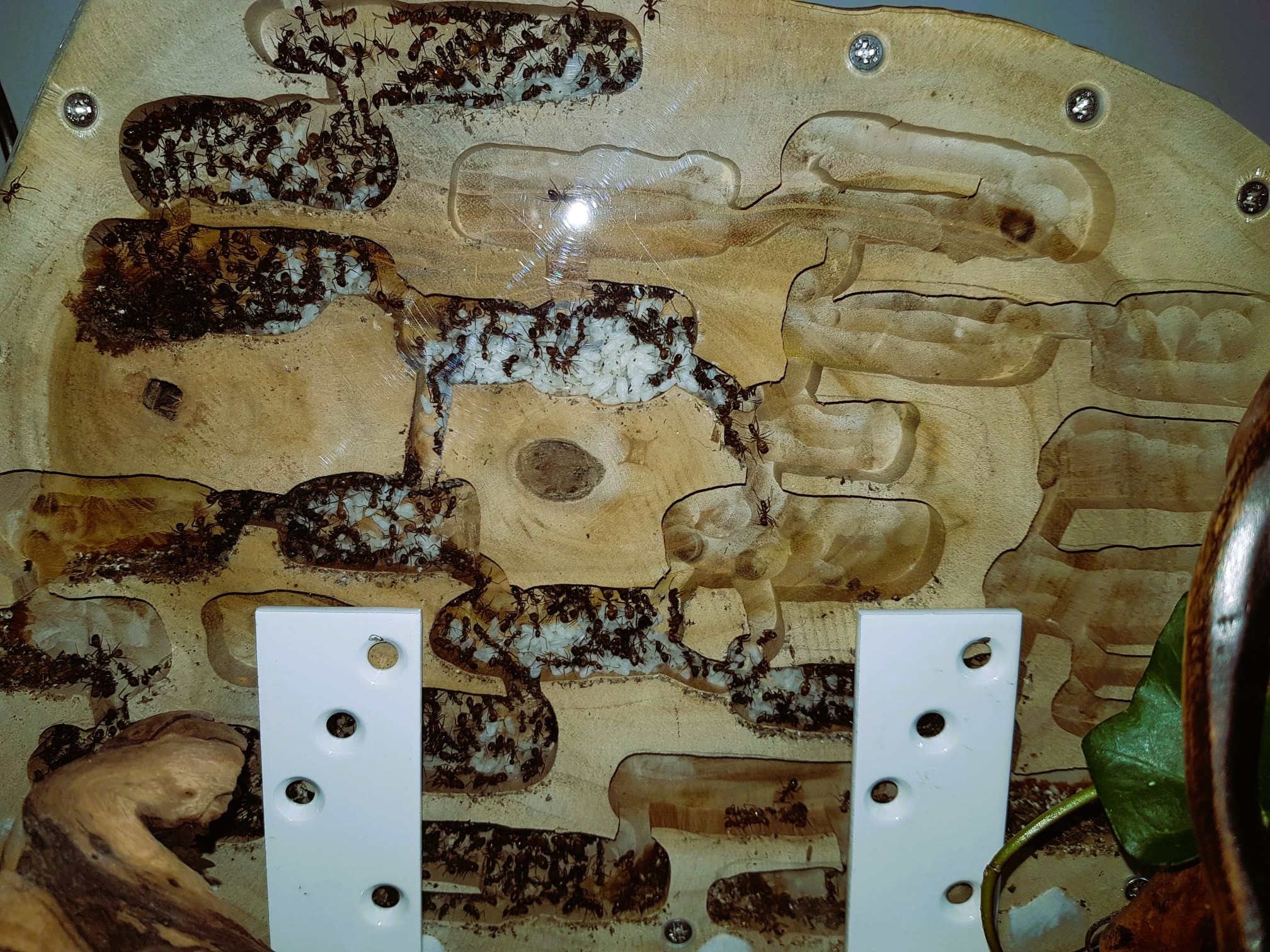 Blick ins Nest. Ein guter Teil der Arbeiterinnen sitzt allerdings auĂerhalb des Nestes in "AuĂenposten", wie es viele Camponotus gerne tun, auch fedtschenkoi.