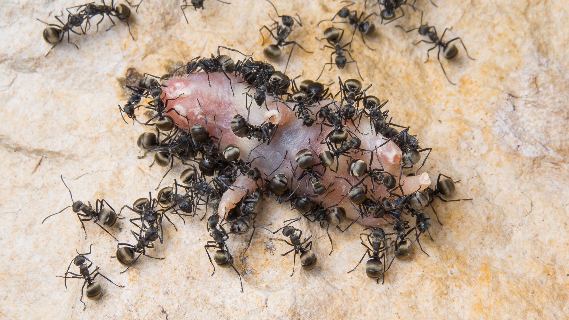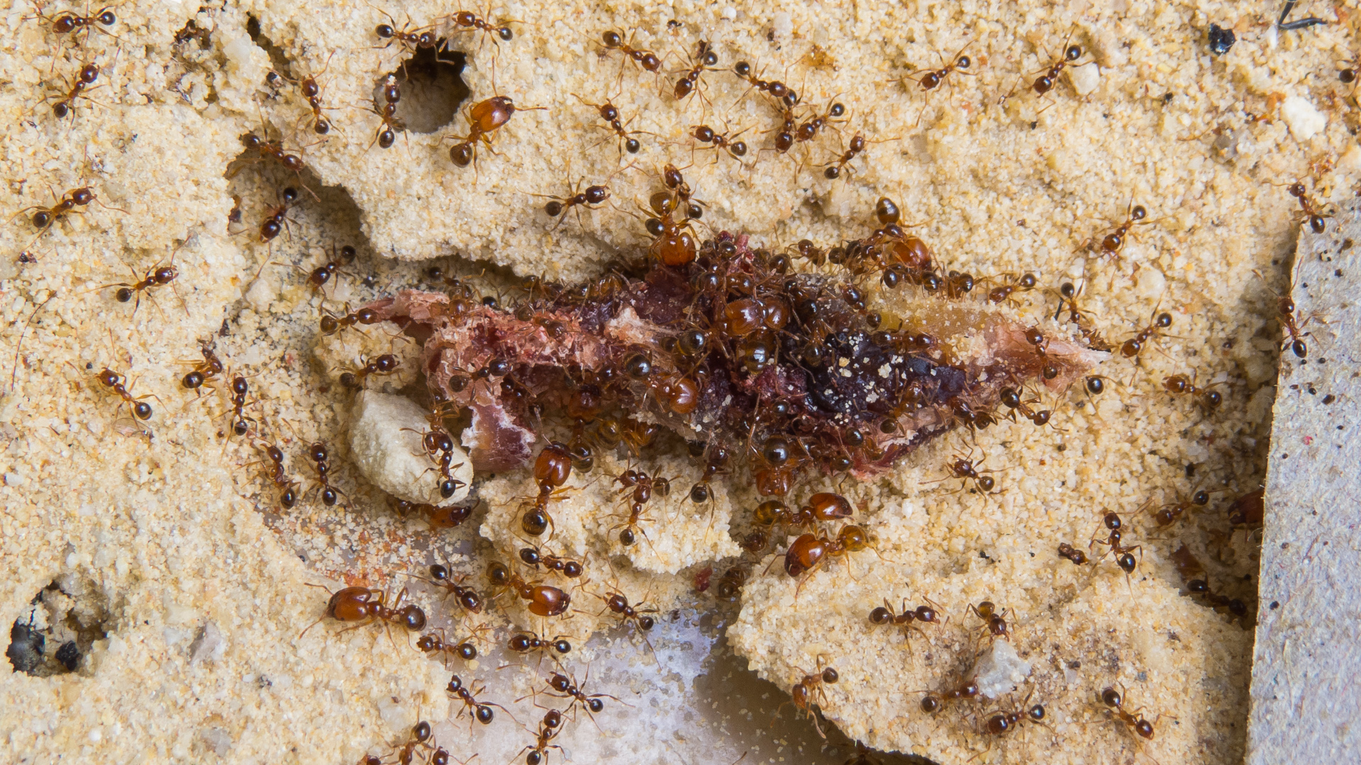 Ameisen lecken gerne Flüssigkeiten auf, die sie auch auf Fleisch finden, möglicherweise wegen Mineralien.