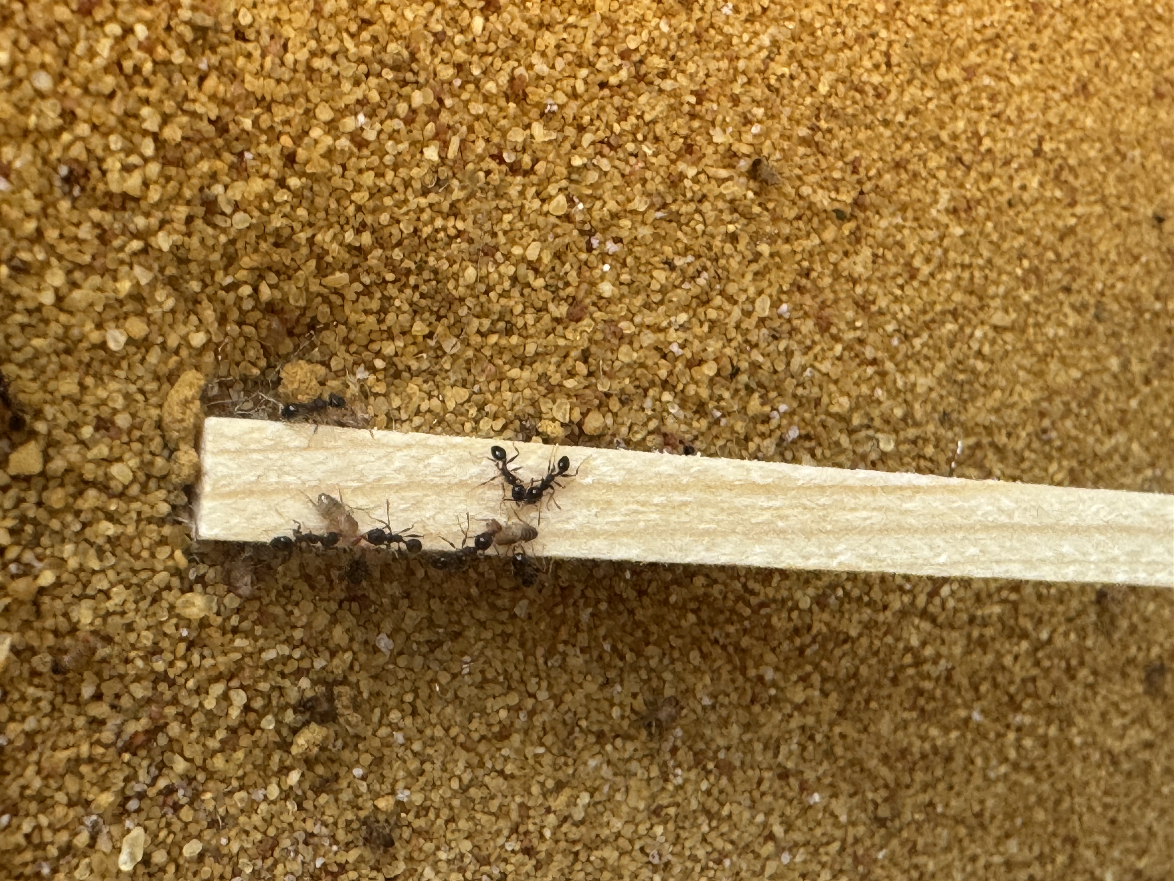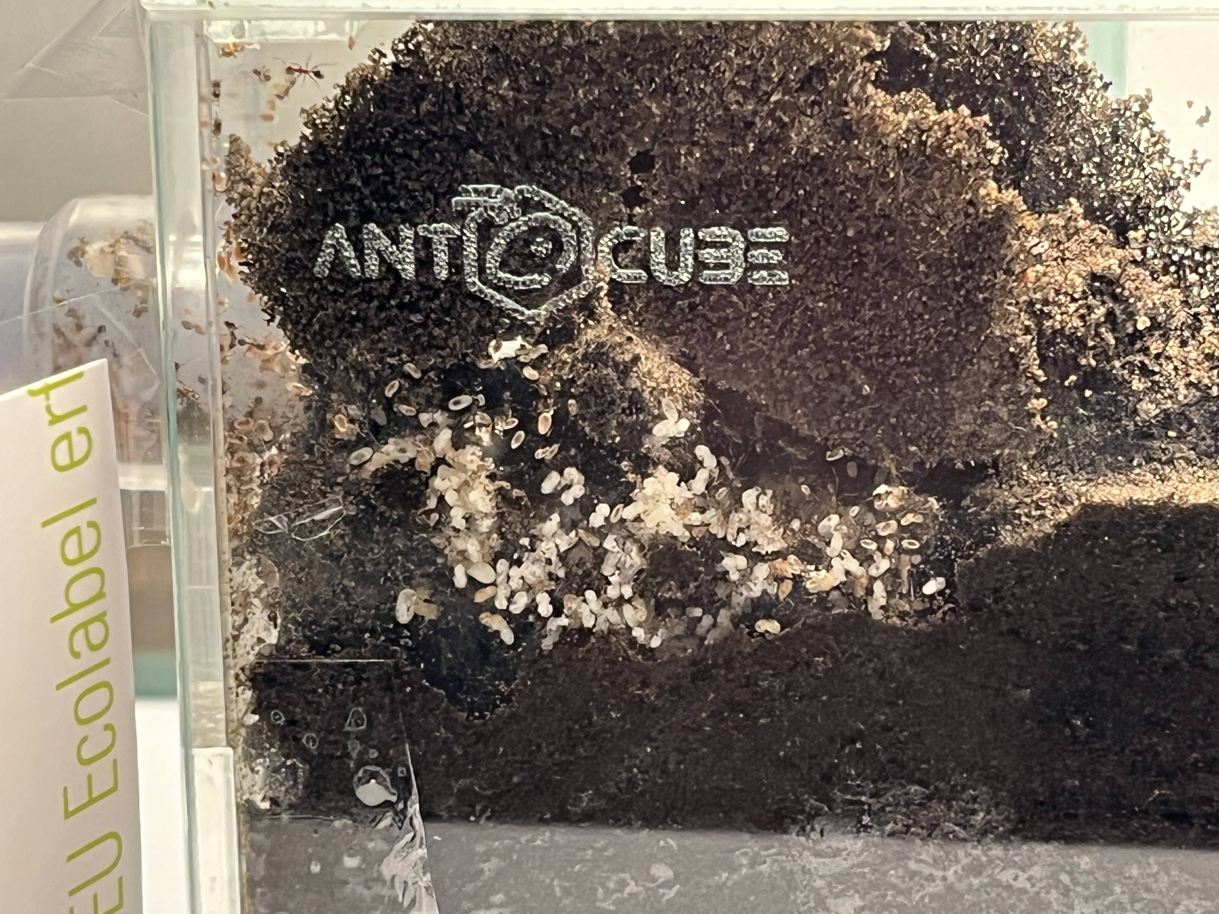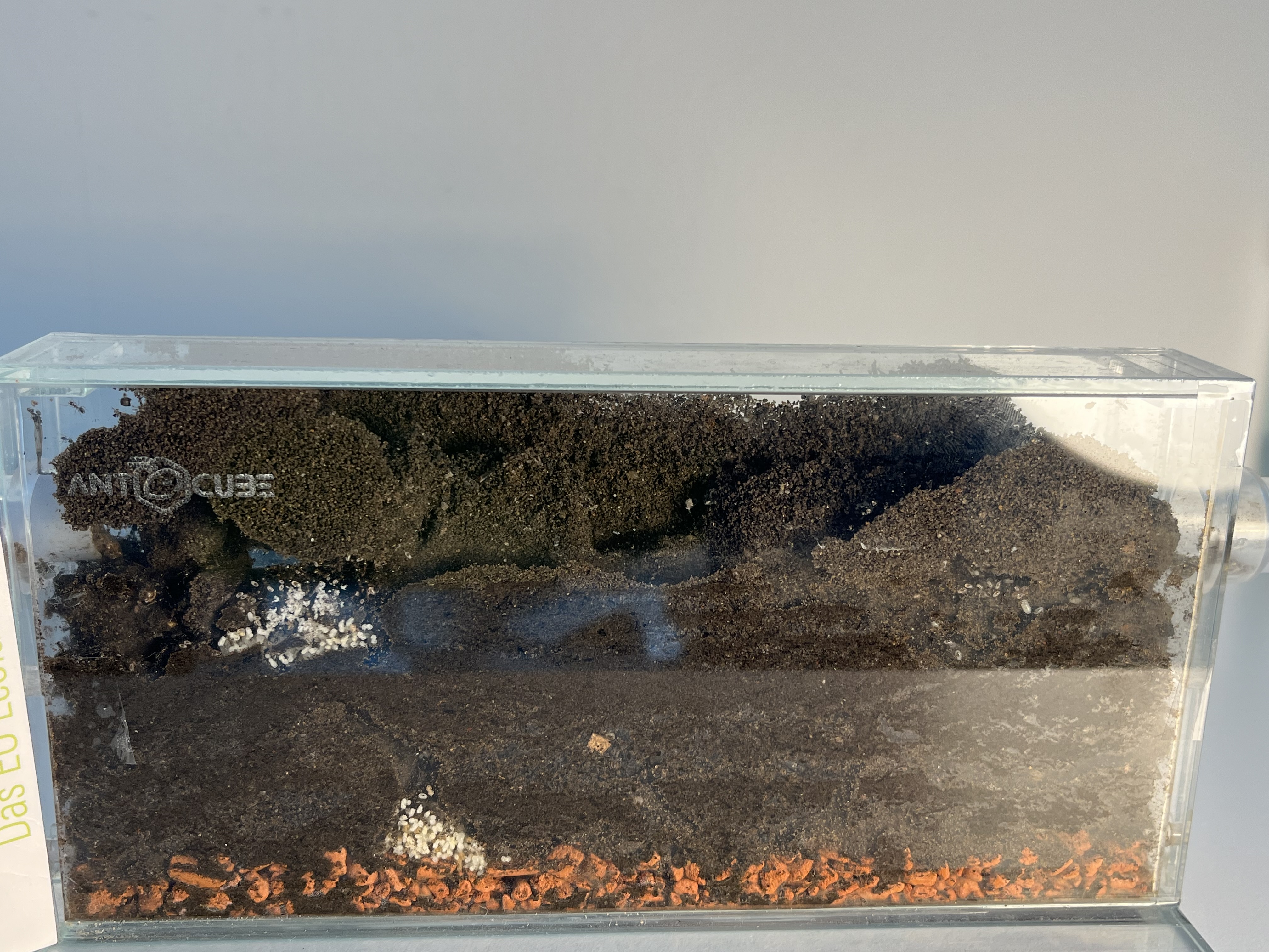 Vor etwa einer Woche habe ich das Gipsnest vorerst wieder entfernt, da es aus meiner Sicht nicht wirklich angenommen wurde. Sie haben dort kaum Aktivitäten gezeigt, vermutlich weil das Reagenzglas recht groß ist und ihnen noch ausreichend Platz bietet.