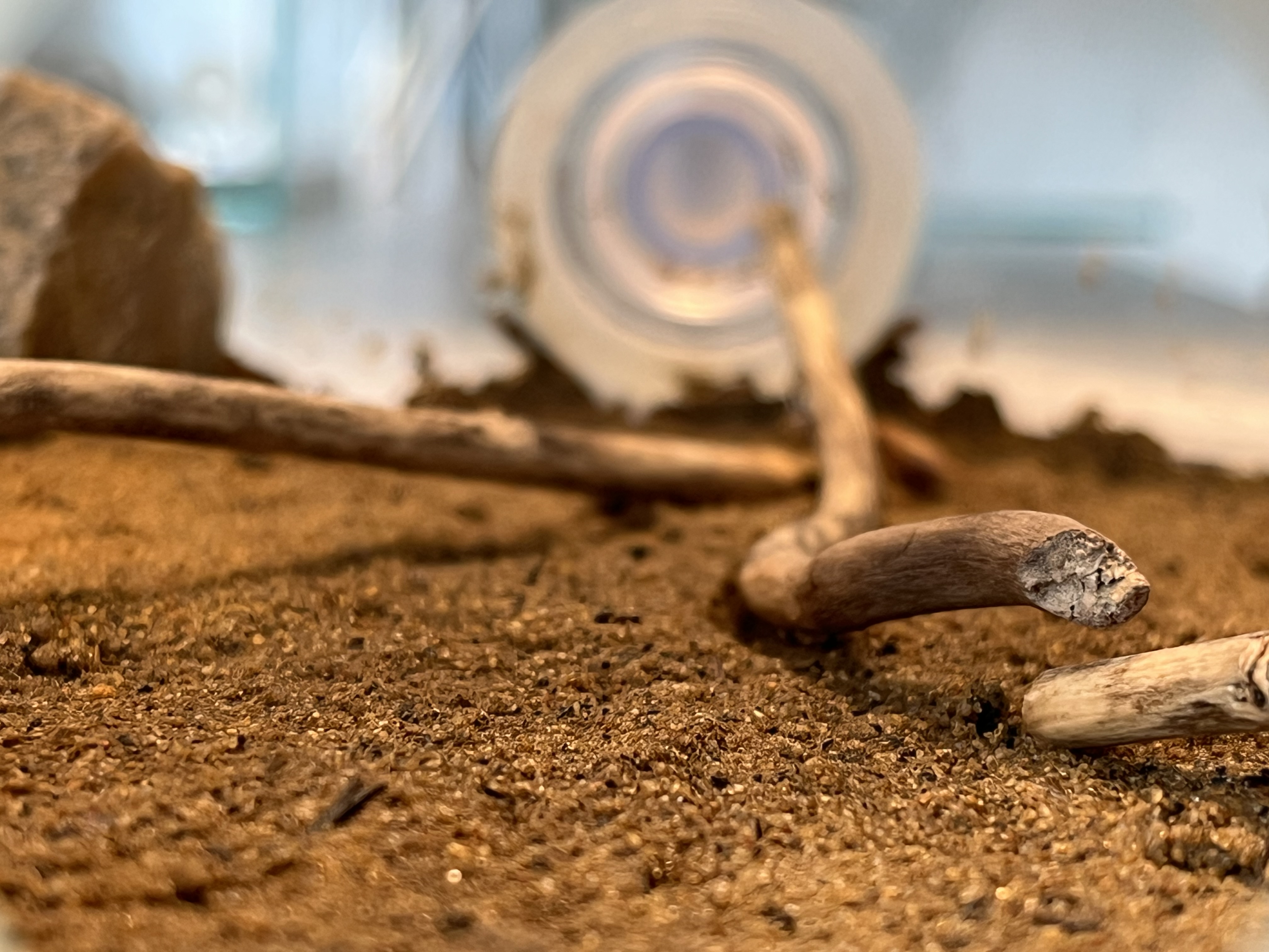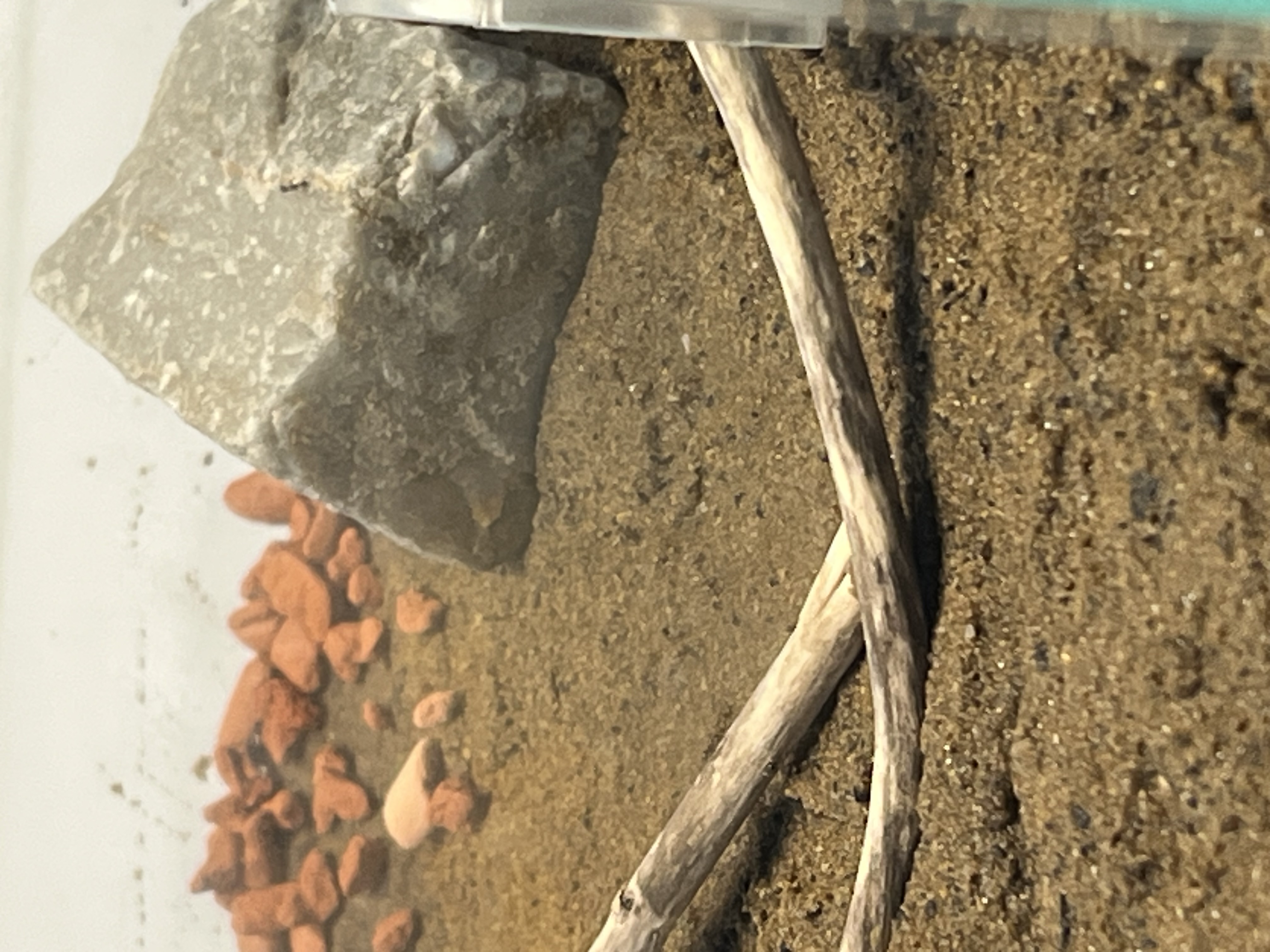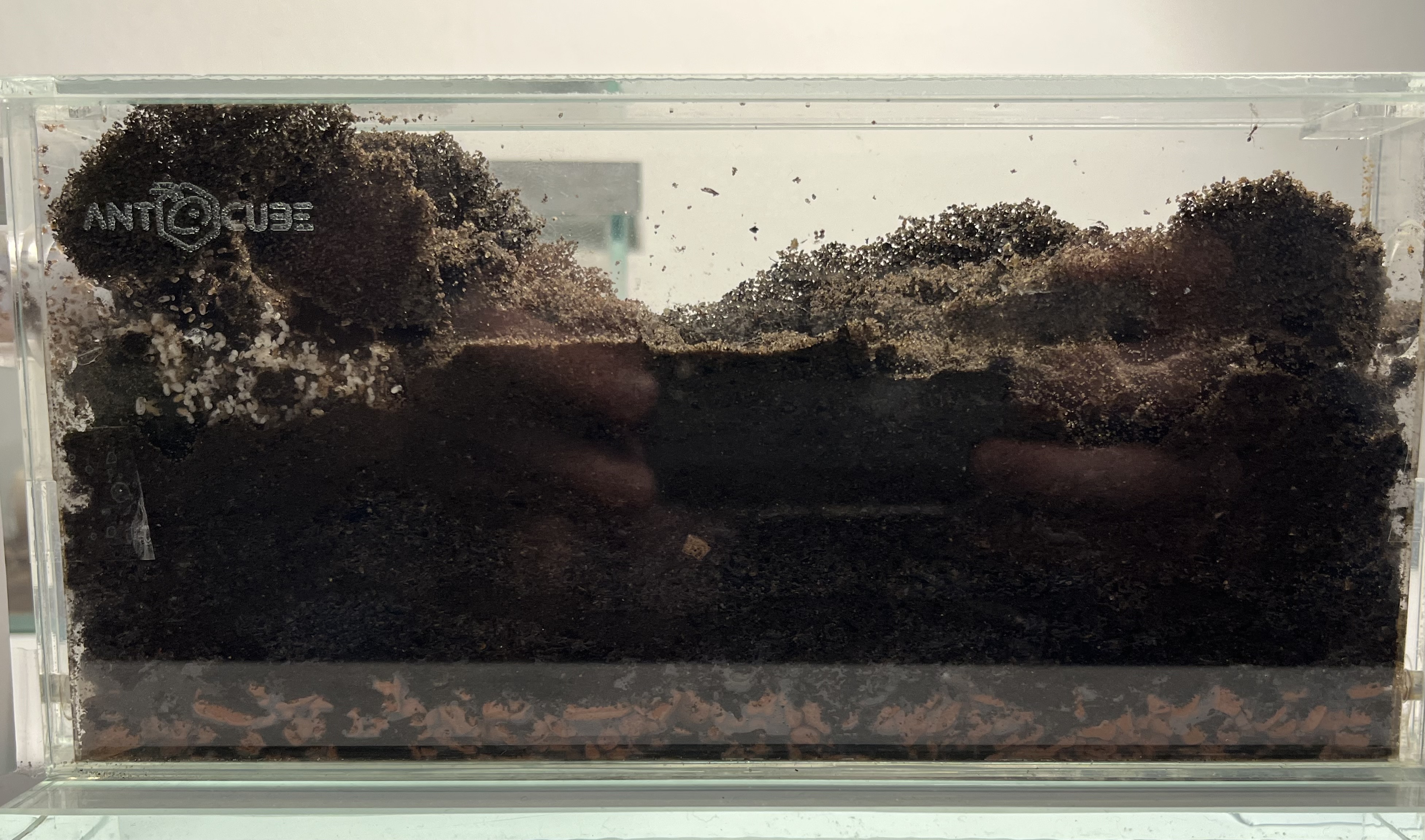 Vor etwa einer Woche habe ich das Gipsnest vorerst wieder entfernt, da es aus meiner Sicht nicht wirklich angenommen wurde. Sie haben dort kaum Aktivitäten gezeigt, vermutlich weil das Reagenzglas recht groß ist und ihnen noch ausreichend Platz bietet.