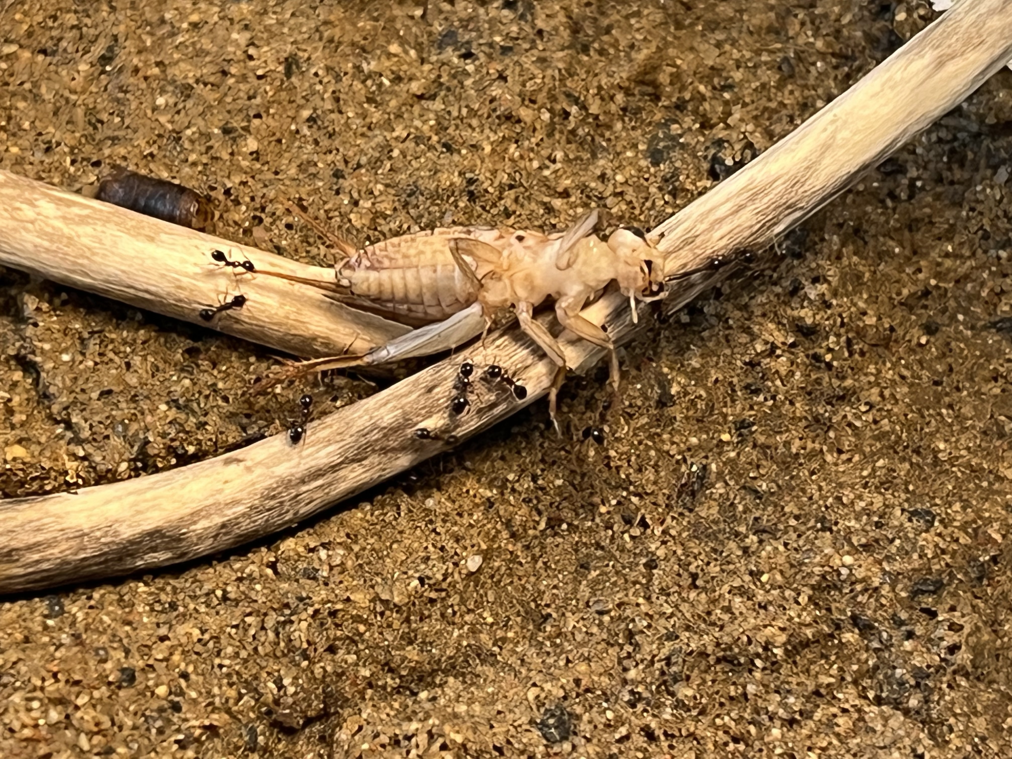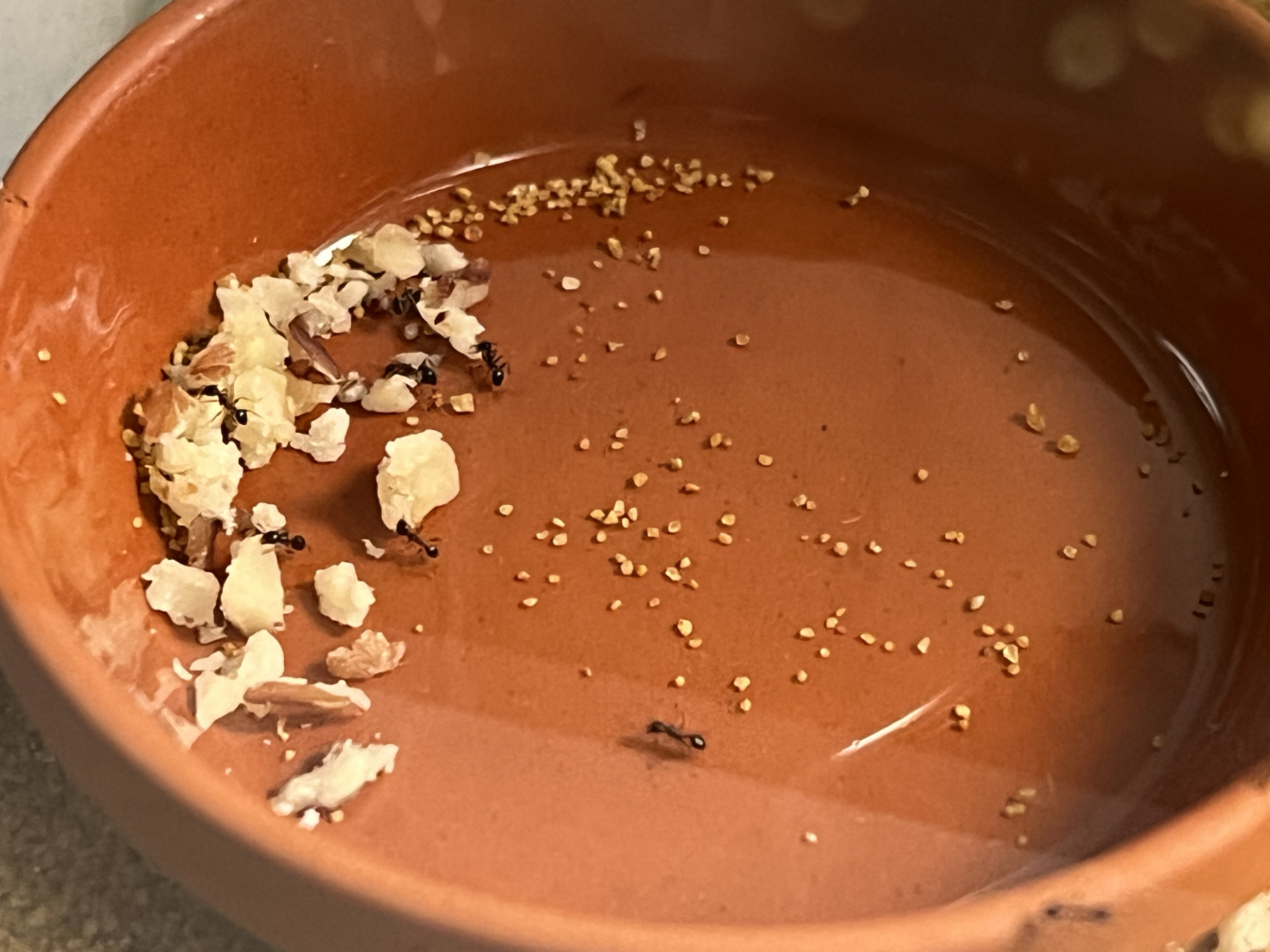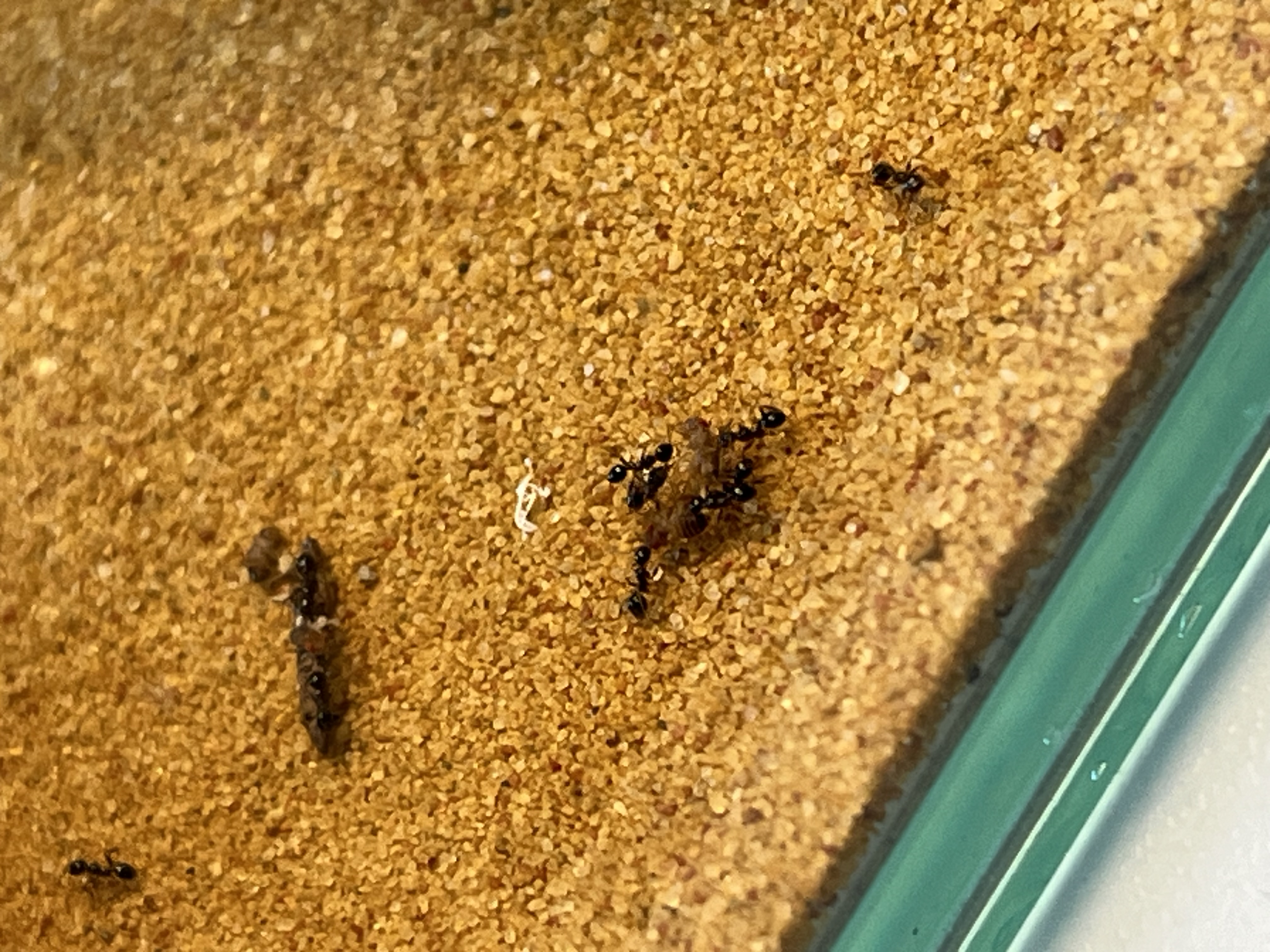 Da ich die Kolonie gerne mit Heimchen füttere, bin ich dann auch gestern mal zum Dehner in meiner Nähe gefahren und habe mich bei den Futtertieren umgeschaut. Ich hatte zuvor gelesen, dass besonders kleine Drosophila-Fliegen gerne genommen werden, also habe ich direkt eine Dose mitgenommen und ihnen ein paar angeboten. Was soll ich sagen: Sie haben sich regelrecht darauf gestürzt! Es war wirklich beeindruckend zu beobachten.