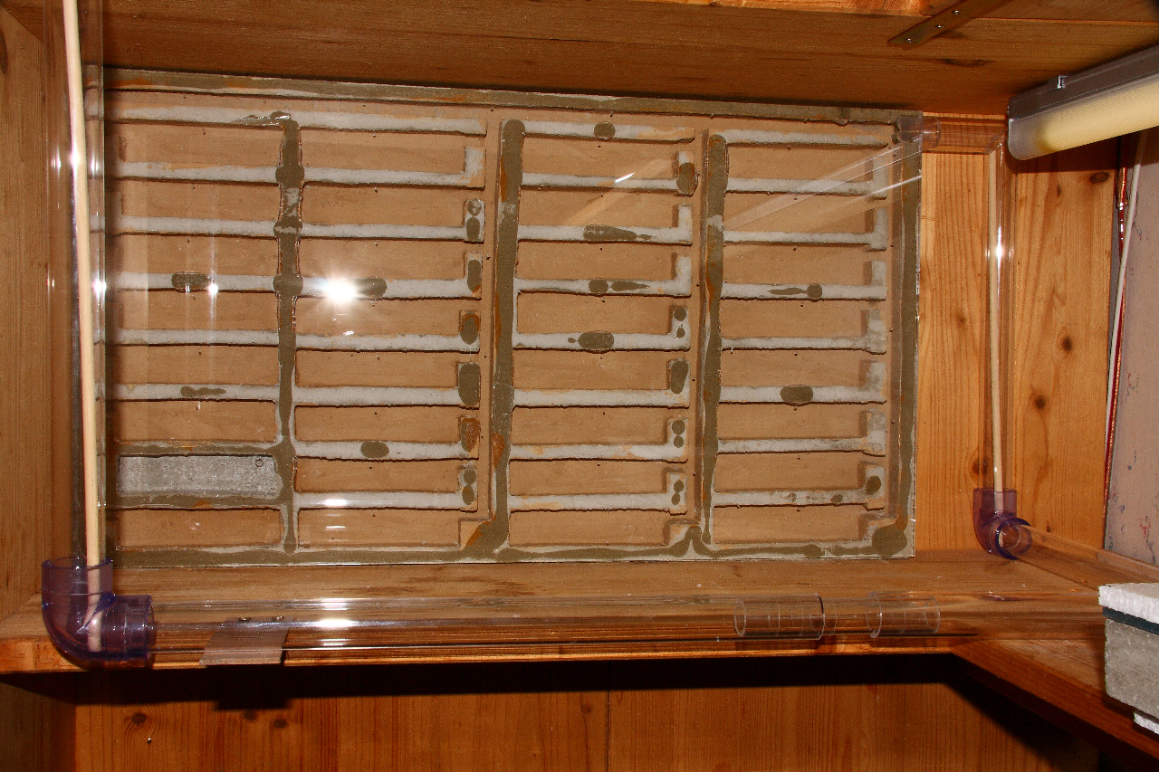 Verbunden sind beide Nester mit einem Kunststoffrohr, 22 mm Innendurchmesser, das vertikale und horizontale Abschnitte beinhaltet.