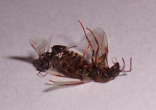 Wir haben auf dem Tisch unserer Pizza-Terrasse am 02.08.2011, 20.30 Uhr dieses dubiose, tote Pärchen gefunden. Kann jemand über Art und/oder Todesursache spekulieren? Die beiden hängen untrennbar aneinander.