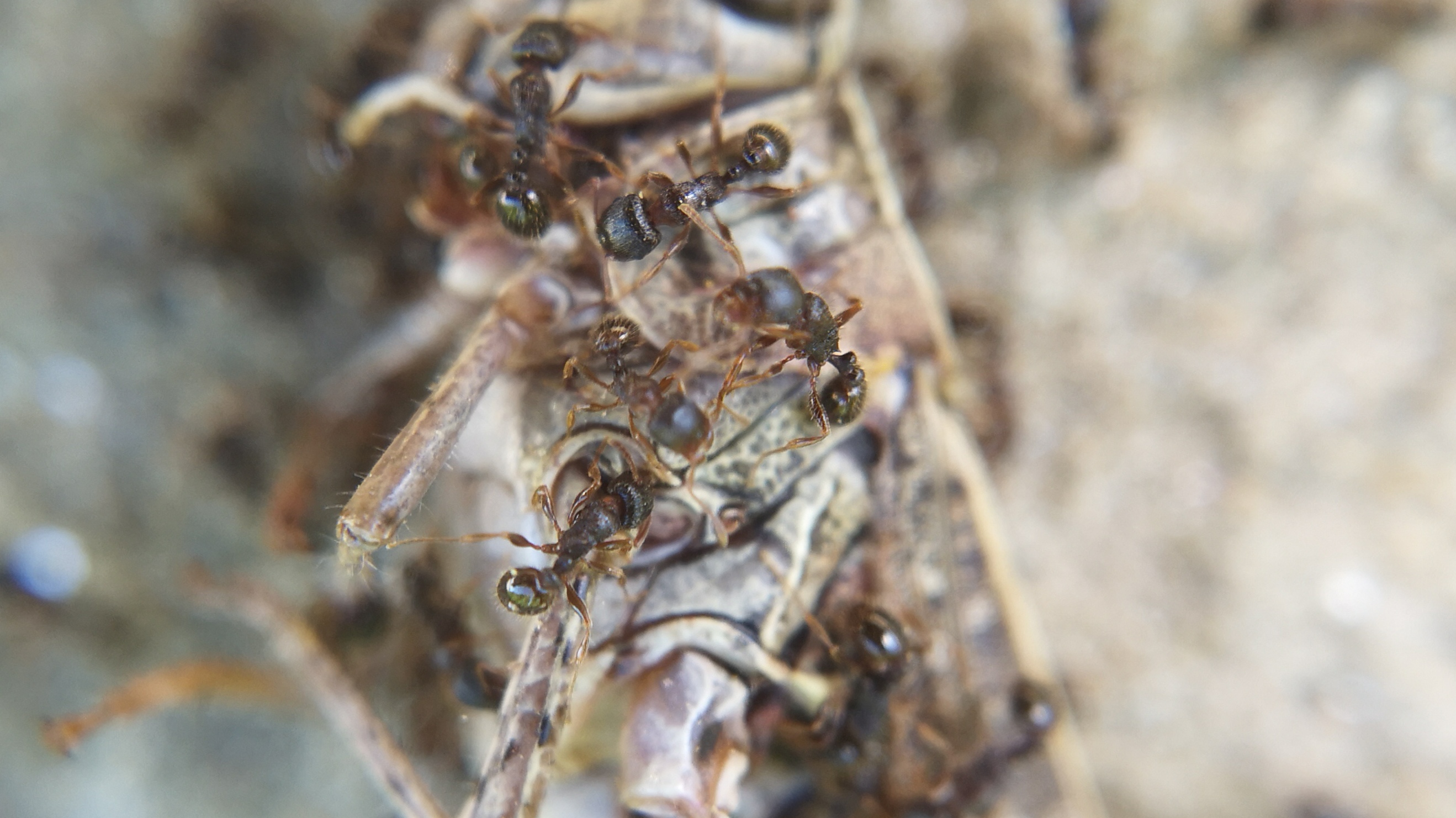 Generell waren viele Grashüpfer und ähnliche Insekten unterwegs und so hat man immer mal wieder Ameisen beobachten können, die eben solche ins Nest schleppen wollten.