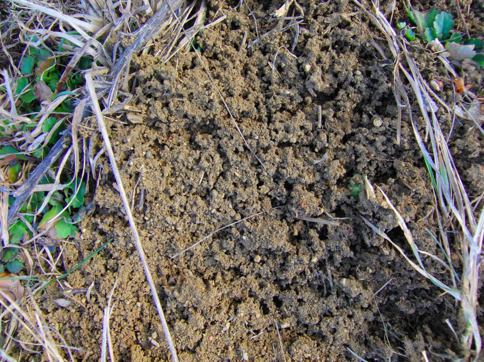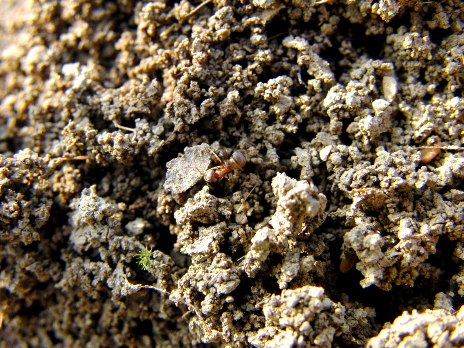 Die ersten Spuren waren nicht zu ĂŒbersehen. Diese Erde wurde 100%ig von Ameisen bewegt. Die Struktur ist unverkennbar.
