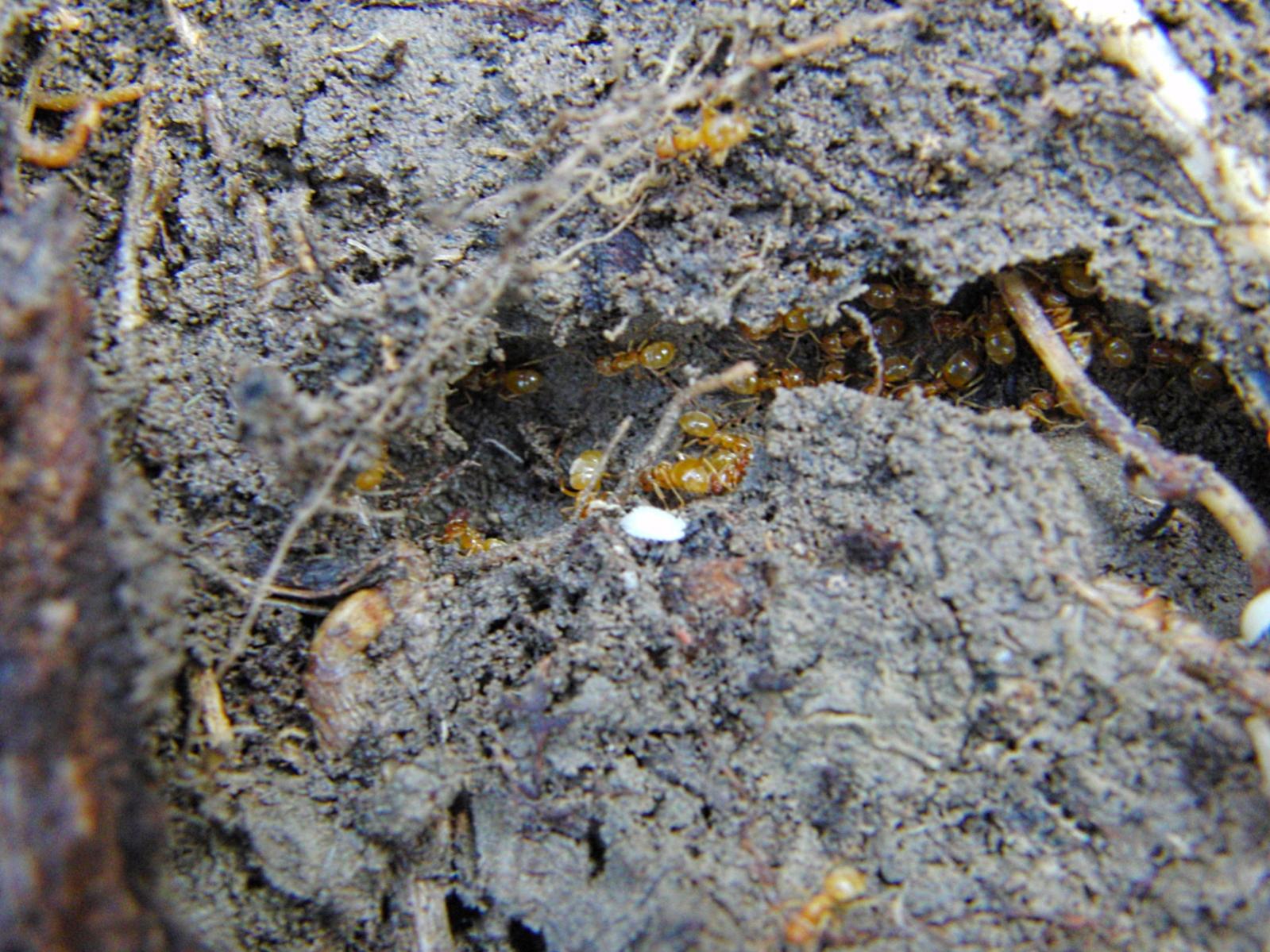 Hier nistet eine Kolonie noch trÀger gelber Lasius.