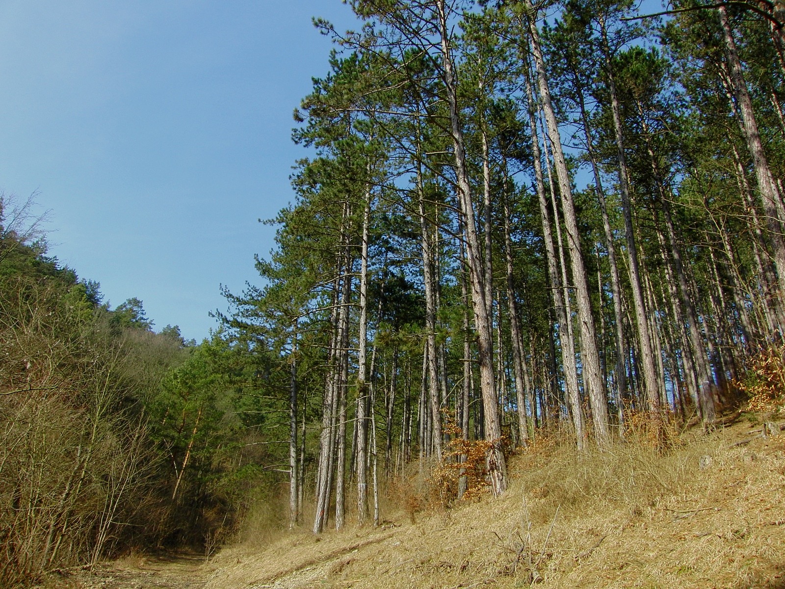 Das schöne Wetter reiĂt nicht ab und die Gegend ist wirklich schön! Links ĂŒberwiegend LaubbĂ€ume rechts Nadelgehölz. Links, rechts...? Los ab zu den Formica sp.