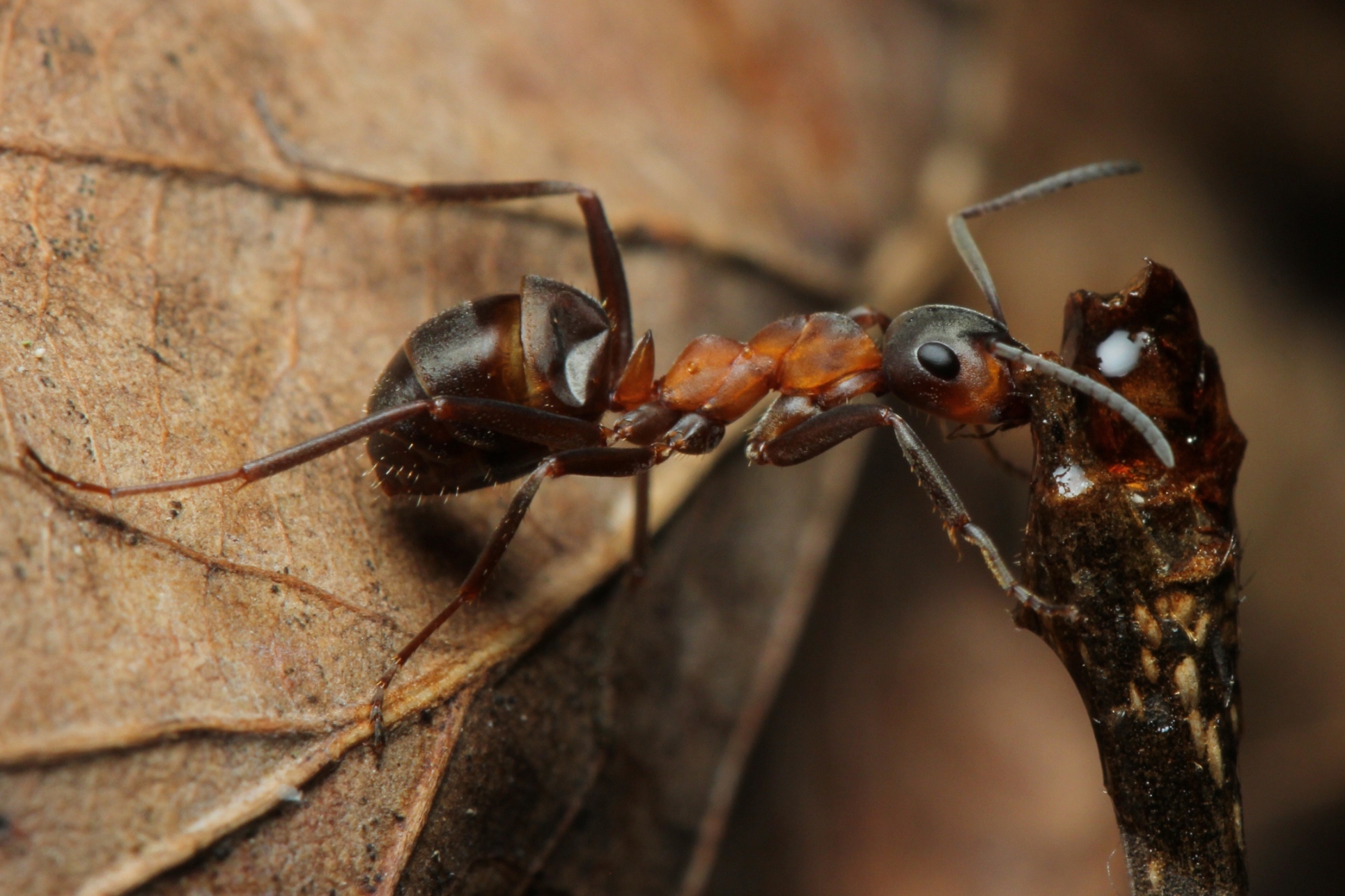 Formica spp. sind nicht nur "Frühaufsteher" im Sinne früher jahreszeitlicher Aktivität, sondern sie bleiben auch im Herbst länger aktiv als die meisten anderen Arten. Das mag mit der meist hohen Anzahl der Nestbewohner zusammenhängen, die sich noch die für die Überwinterung notwendigen Fettreserven zulegen. Die Bilder stammen vom