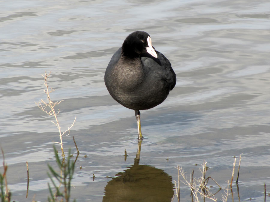 [font=Times New Roman]Antic hat Recht. Der Federball am Stiel ist eine schlafende Blässralle, gewöhnlich auch Blässhuhn genannt, Fulica atra. Das folgende Bild zeigt das Tier beim Aufwachen, wobei es seine auffallende weiße „Blesse“ zeigt.[/font]