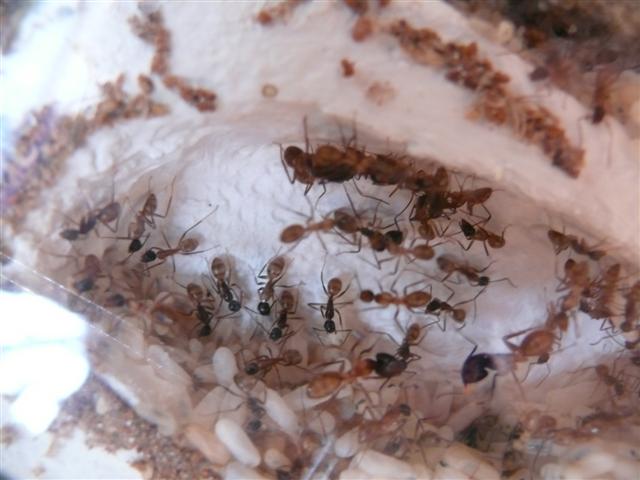 aber auch wenn die Folie nicht da ist, scheint es sie nicht zu stören. Das GefĂŒhl habe ich auch bei Diacamma rugosum, welche sich ebenfalls nicht gestört fĂŒhlen,wenn man die Abdeckung wegnimmt.
