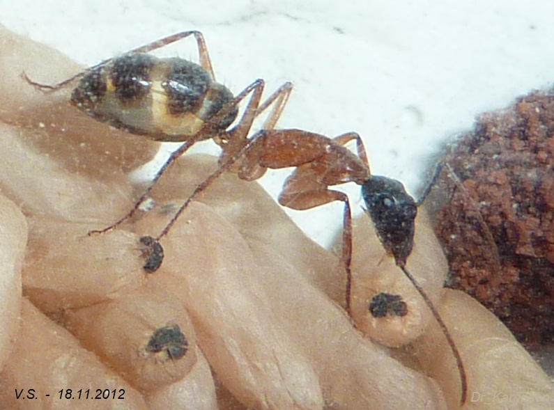 Bei diesen drei Ameisen handelt es sich wieder um Camponotus nigriceps Arbeiterinnen -